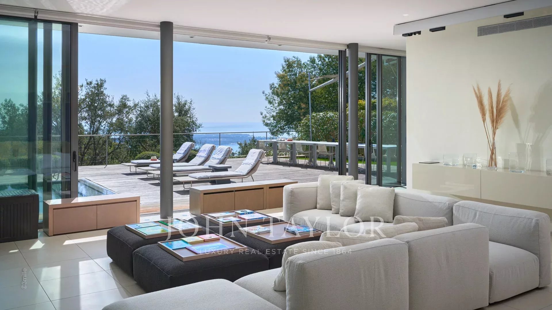 Добро пожаловать на эту великолепную современную виллу, современный оазис площадью 800 м2, расположенный на 4 уровнях, с лифтом, в самом сердце обширного участка площадью 6 000 м2. Эта резиденция с кондиционером предлагает роскошный отдых с захватывающим панорамным видом на море, простирающимся от Леринских островов до величественного Кап д'Антиб.