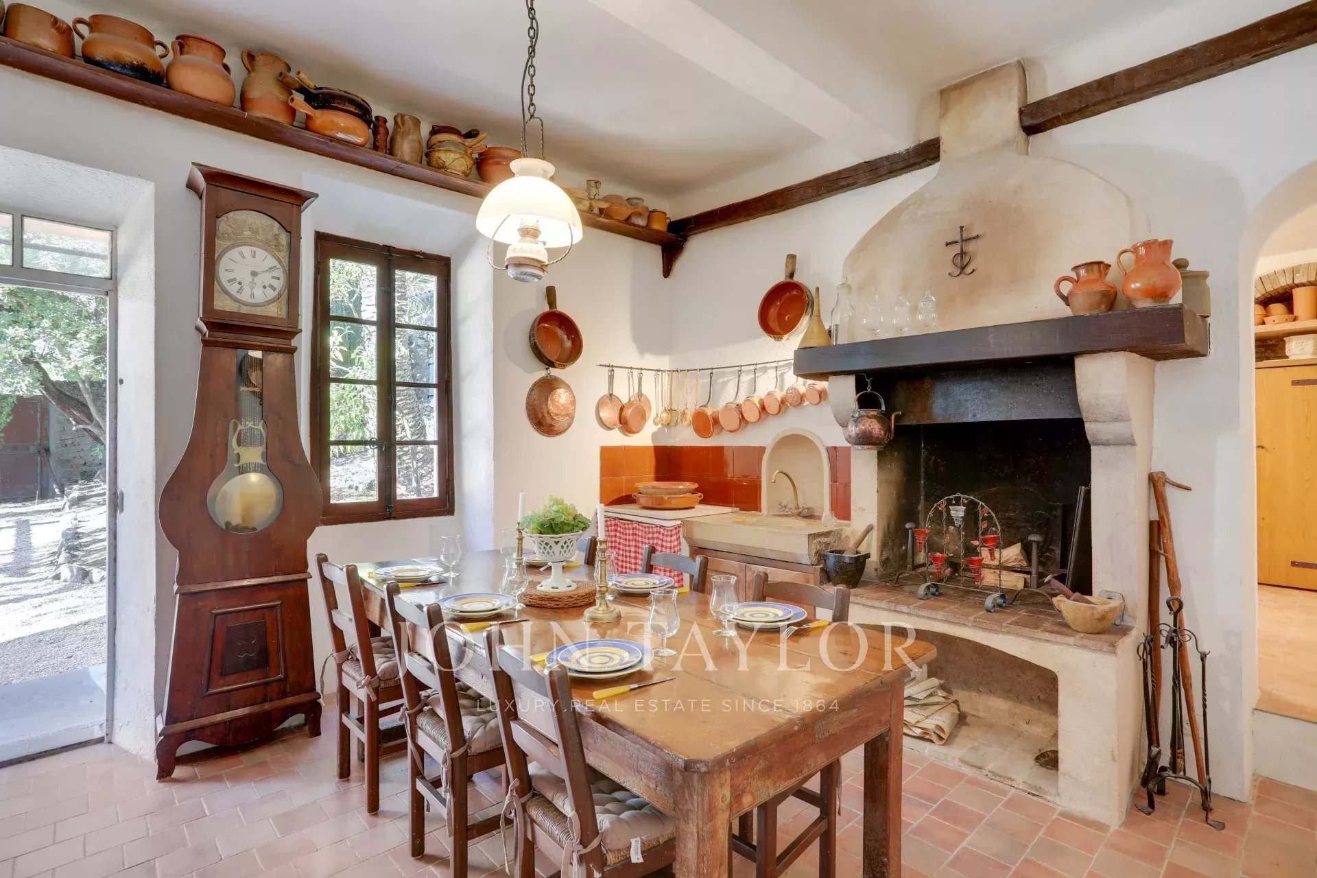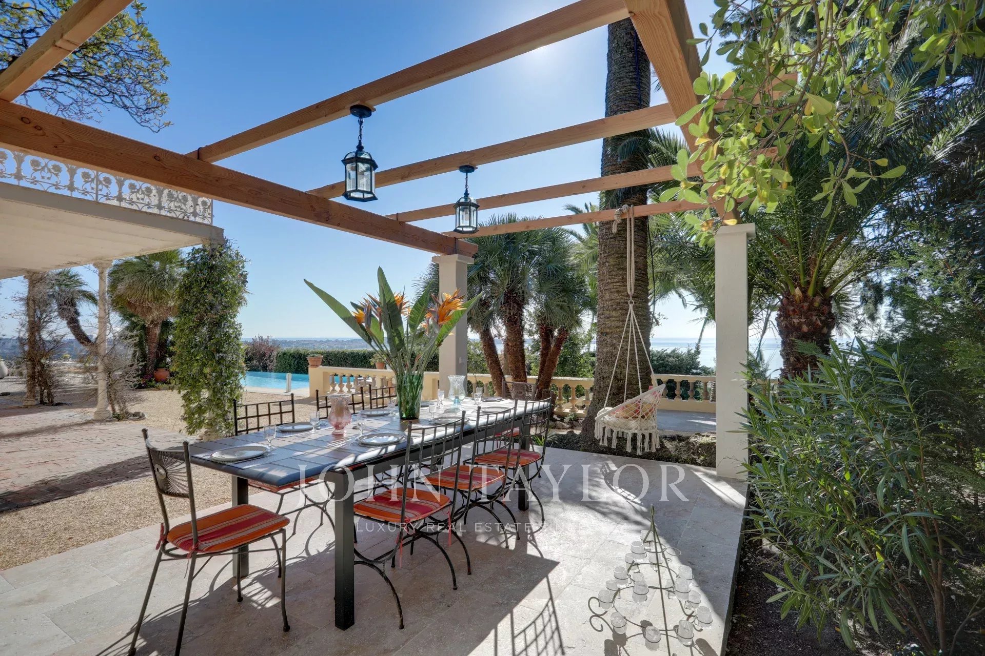 Полностью отреставрированная бастида XVIII века площадью 350 м2, расположенная на территории площадью 5 000 м2 с великолепным видом на залив Кап д'Антиб и Гольф-Жуан.