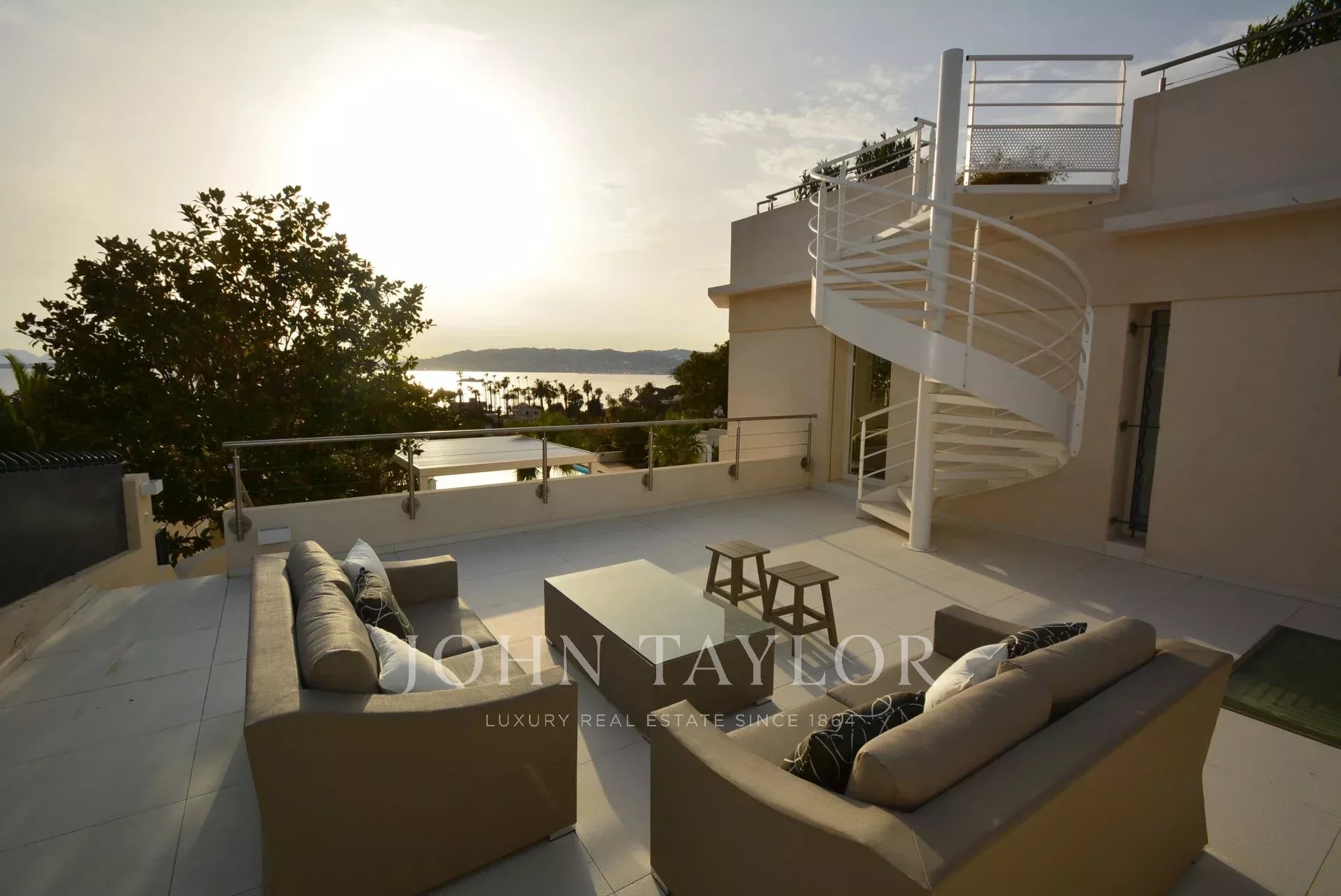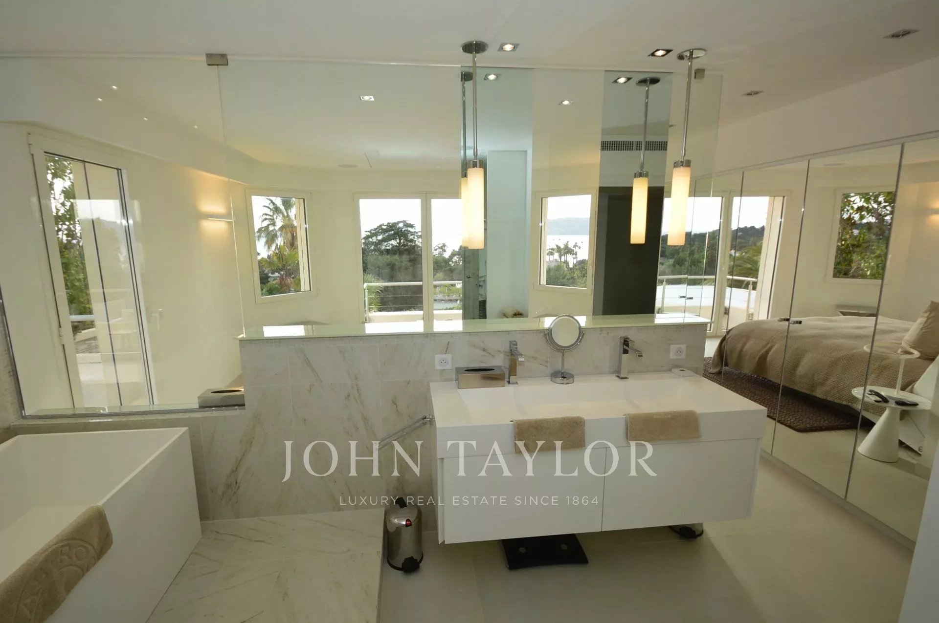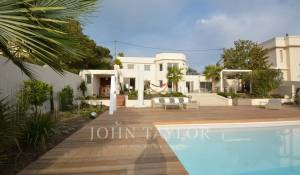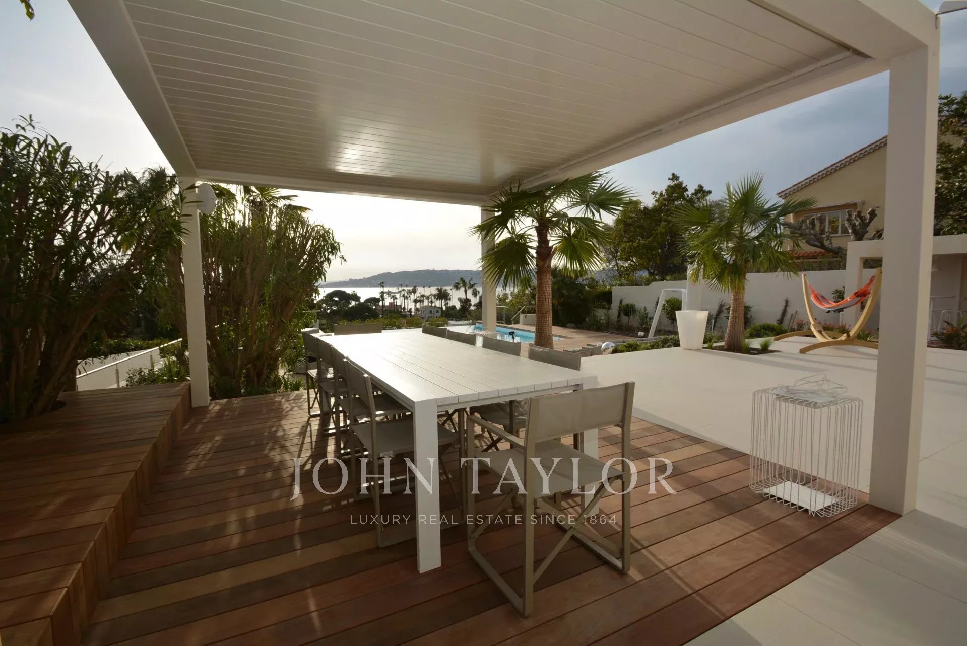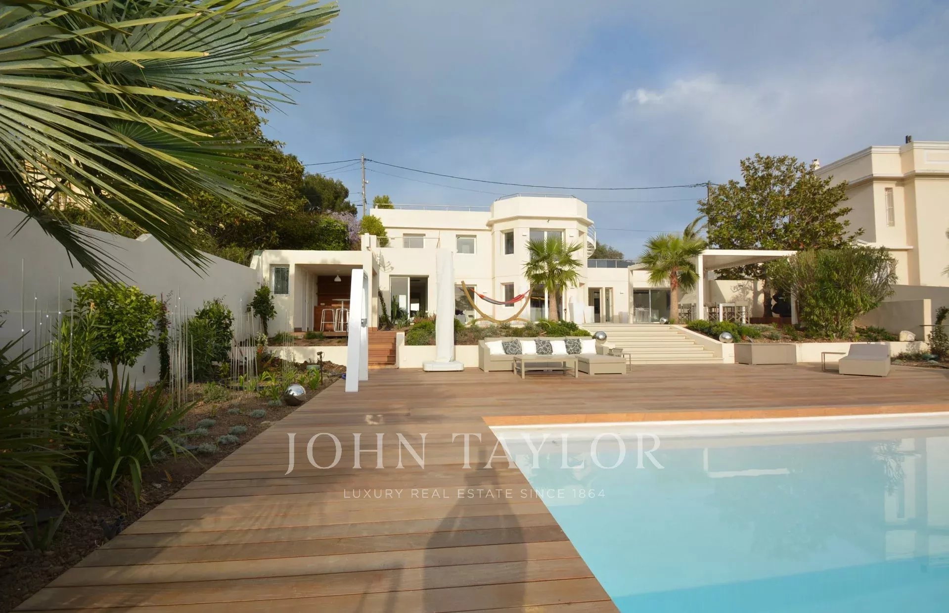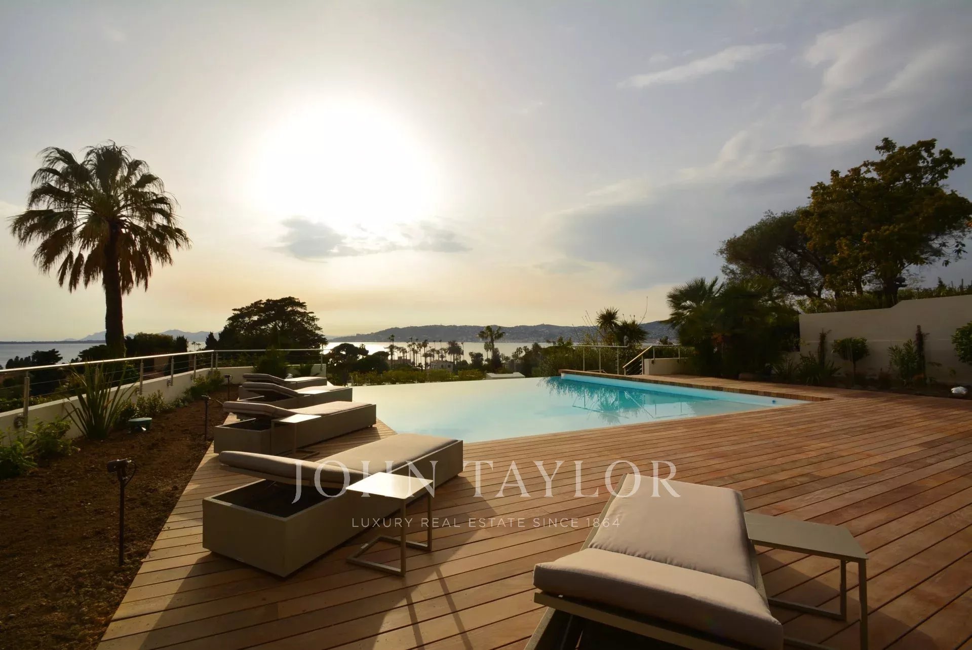 Полностью отремонтированный особняк с кондиционером и террасами площадью 375 м2 расположен на западном склоне Кап д'Антиб, в самом центре участка площадью 1000 м2.