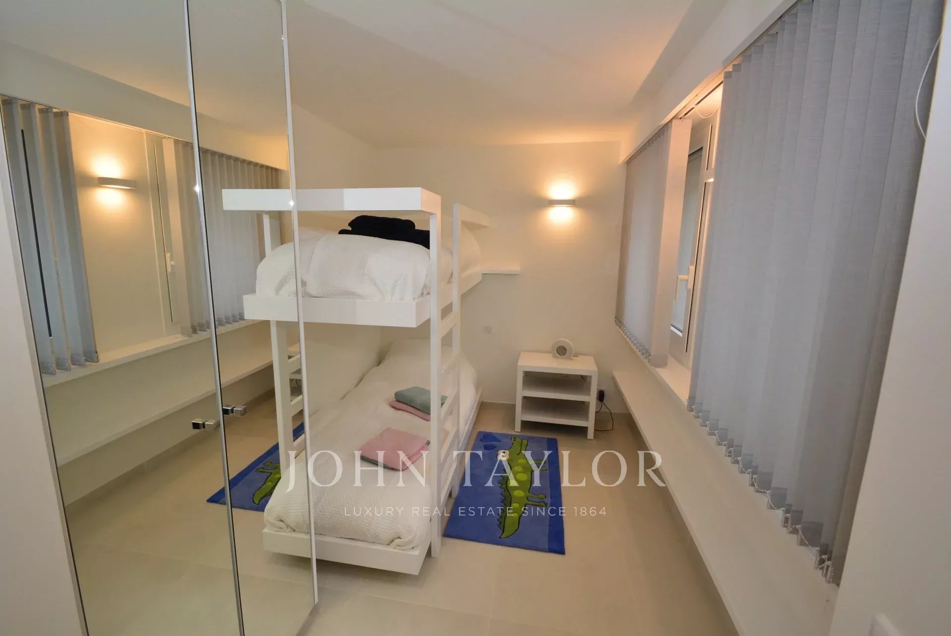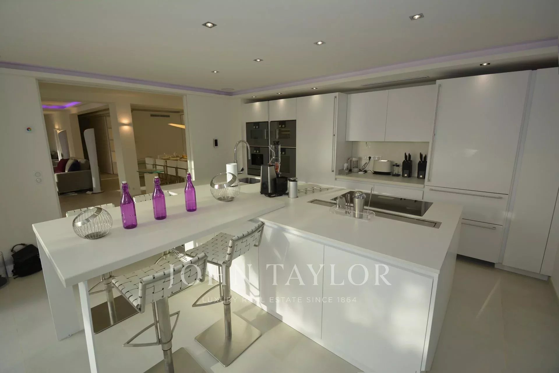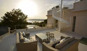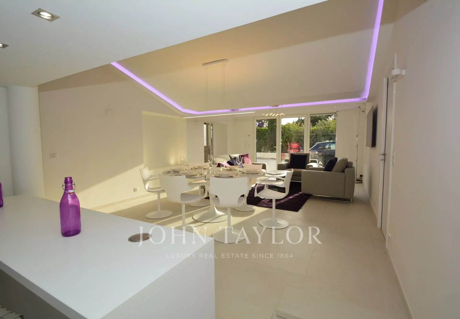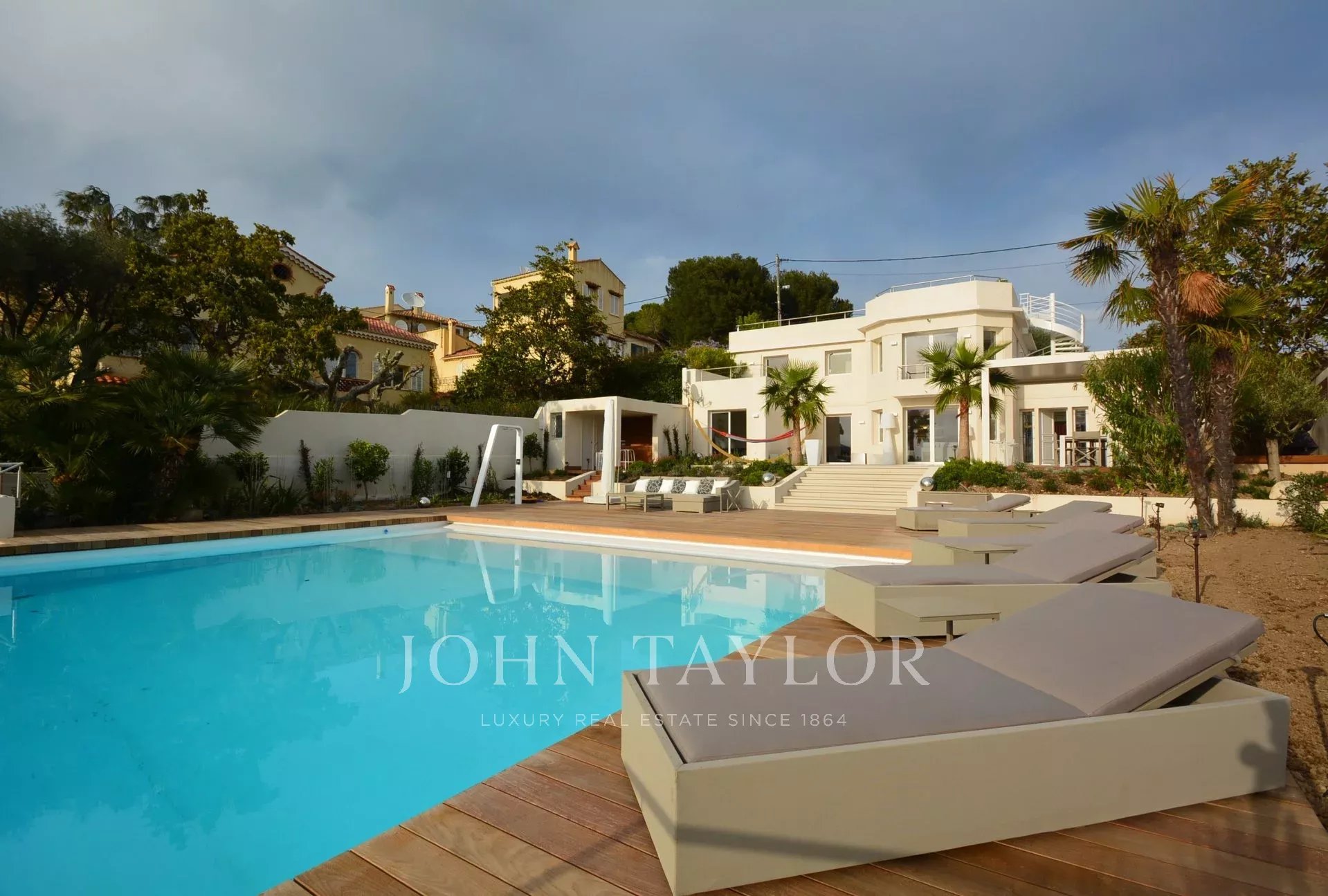 Полностью отремонтированный особняк с кондиционером и террасами площадью 375 м2 расположен на западном склоне Кап д'Антиб, в самом центре участка площадью 1000 м2.