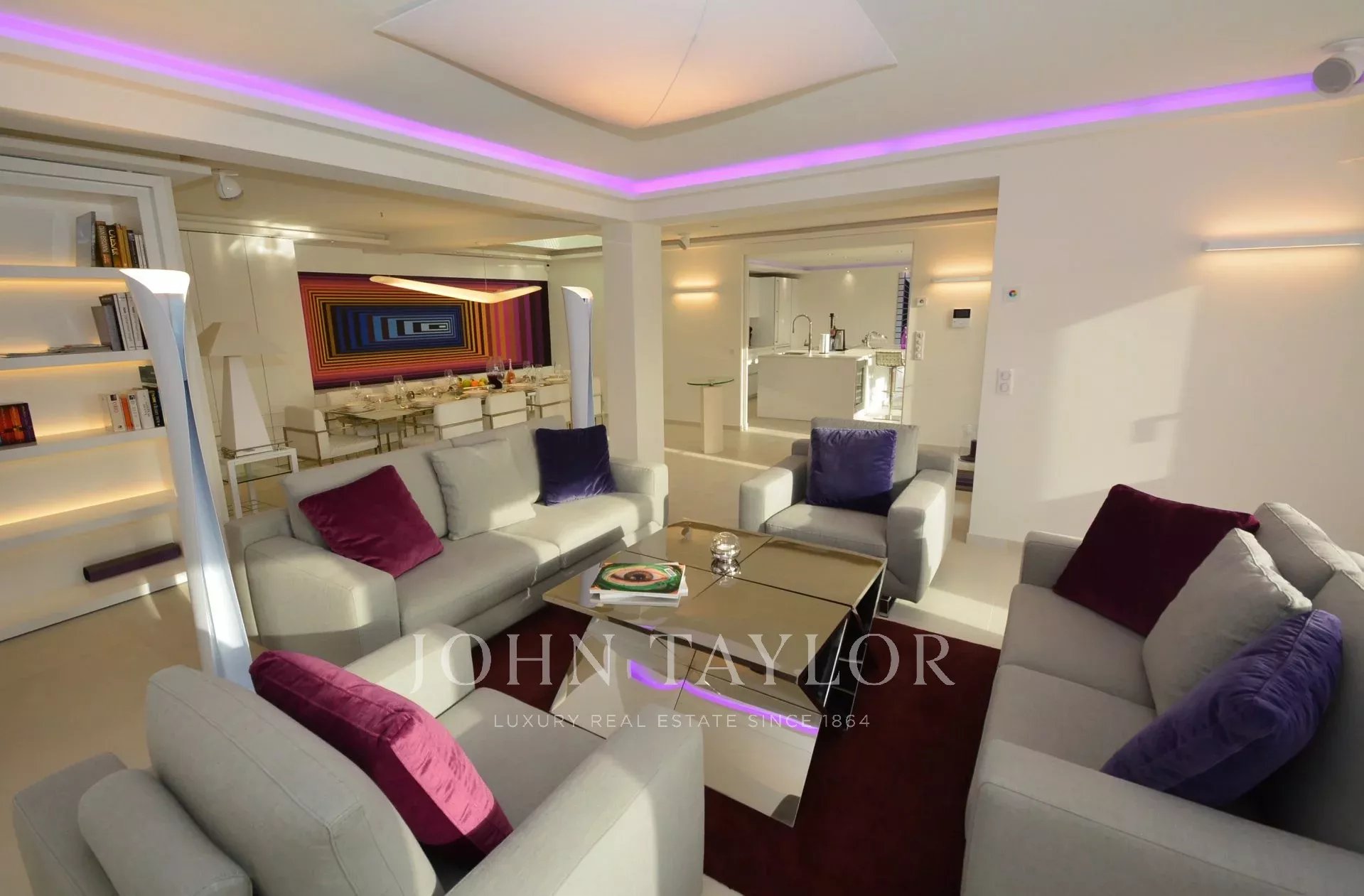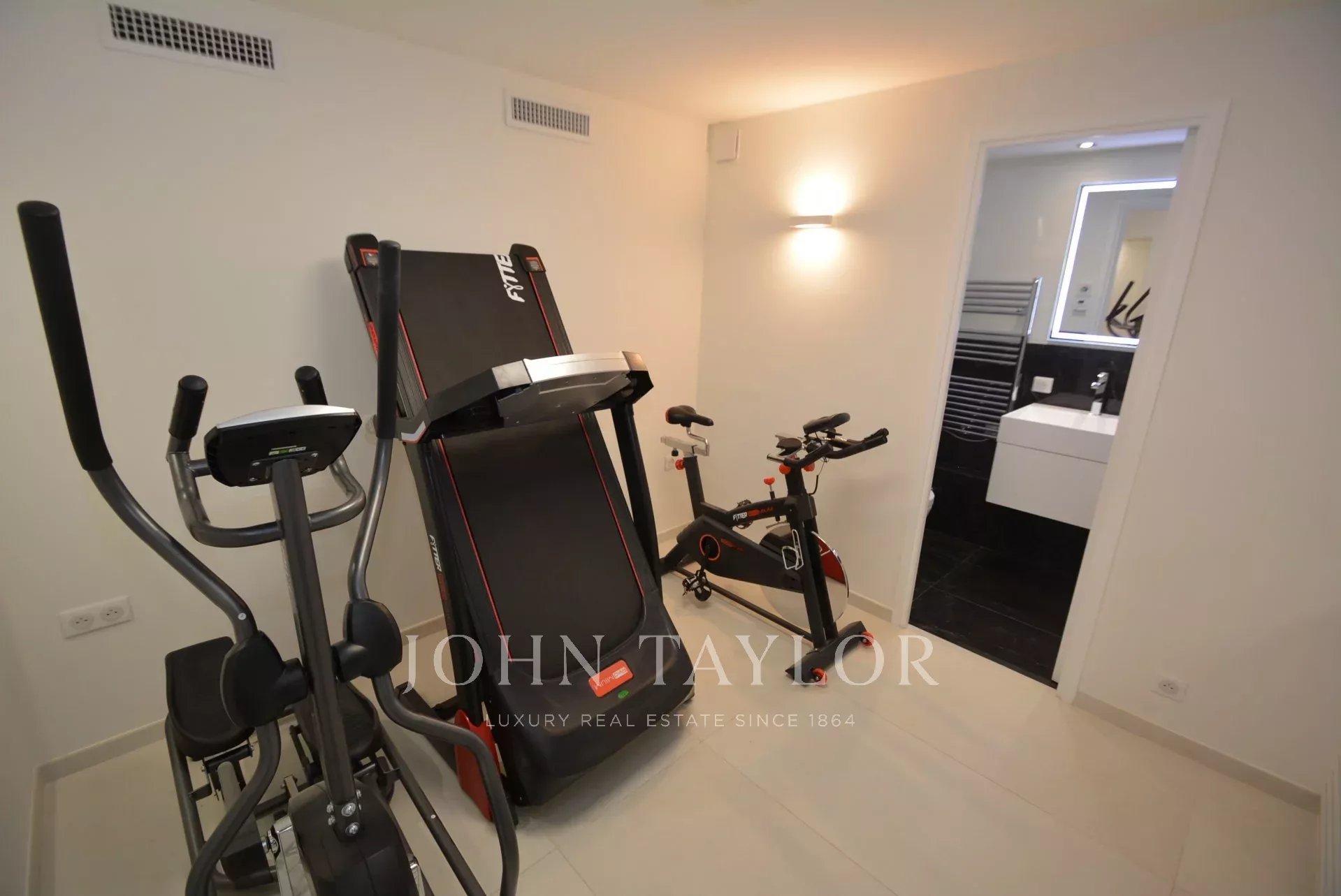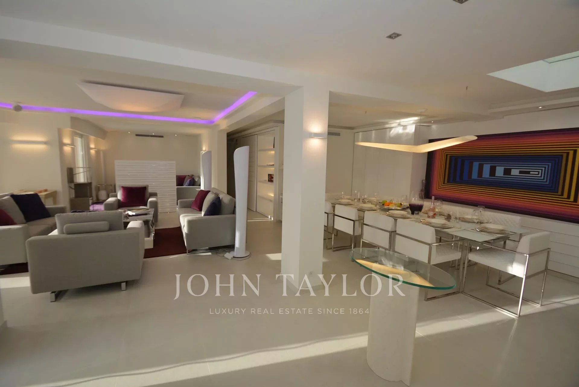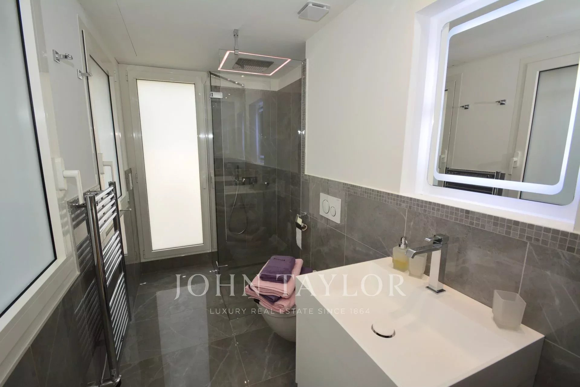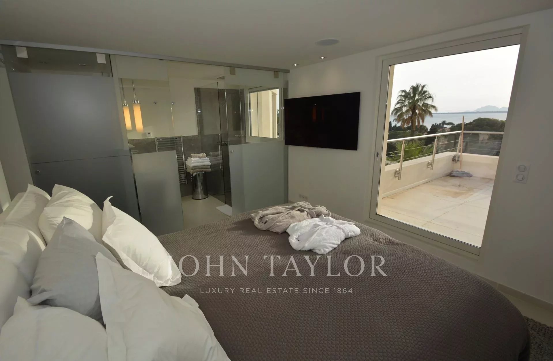 Полностью отремонтированный особняк с кондиционером и террасами площадью 375 м2 расположен на западном склоне Кап д'Антиб, в самом центре участка площадью 1000 м2.