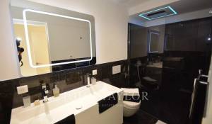 Главная спальня (двуспальная кровать - сейф), телевизор, выход на террасу с летней гостиной, барной зоной, джакузи и выходом в солярий, вид на море - Полная ванная комната / WC