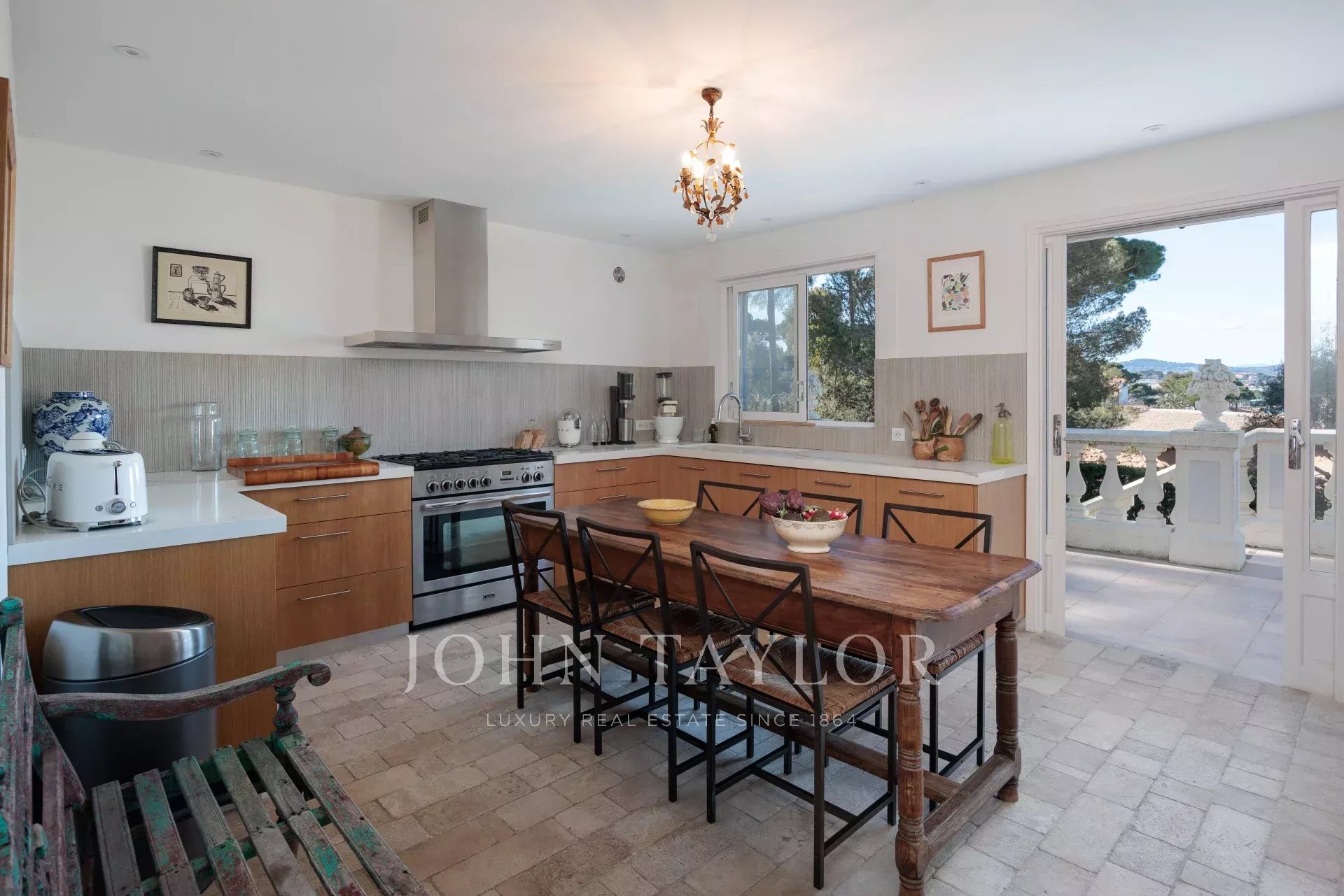 Расположенная в самом сердце сада с такими видами Лазурного берега, как цитрусовые, оливковые деревья, фиговые деревья, мирт и жасмин, а также кактусы и большие эуфорбии, вилла имеет превосходный вид на Старый Антиб и Бэ дез Анж, над которым возвышаются Альпы.