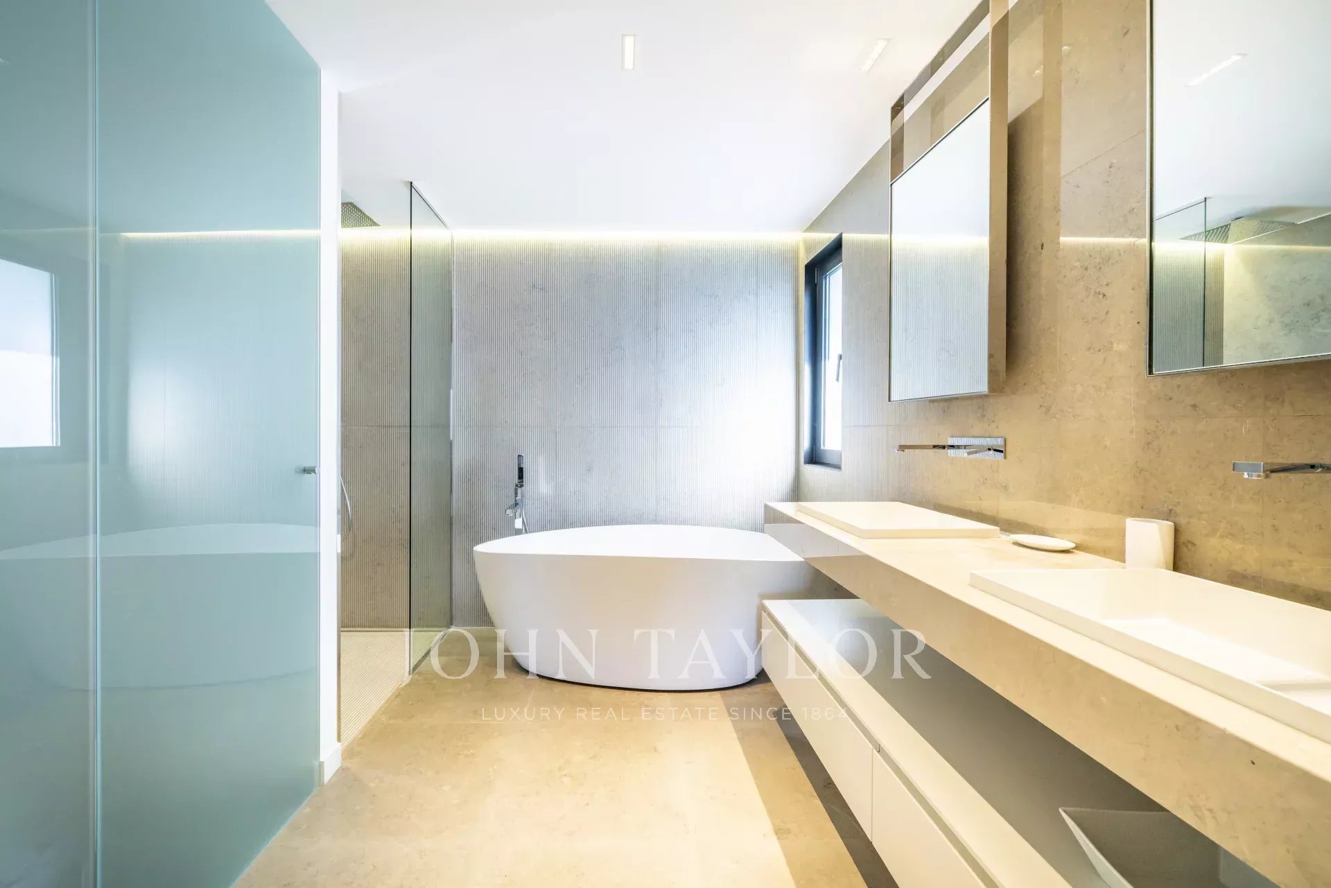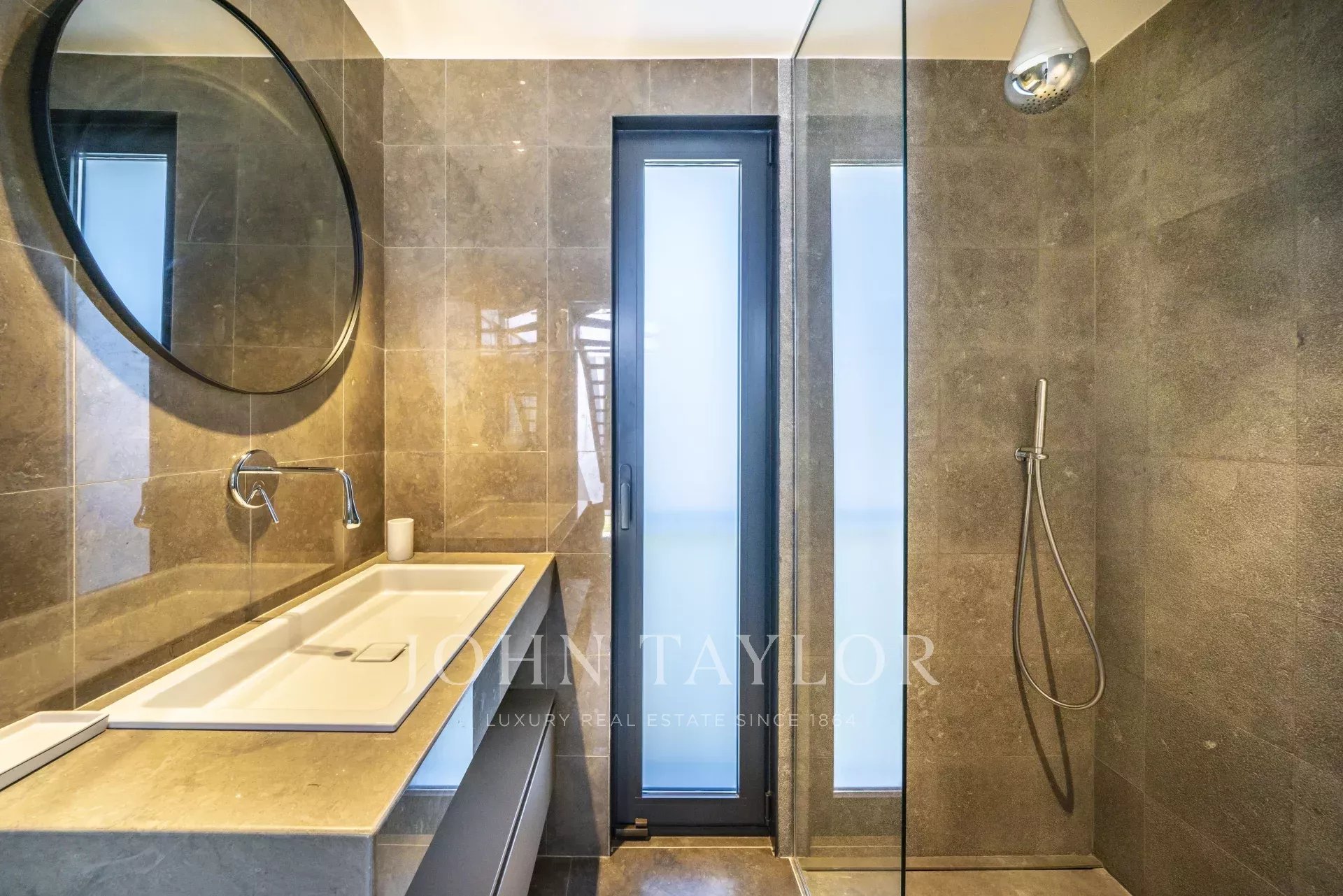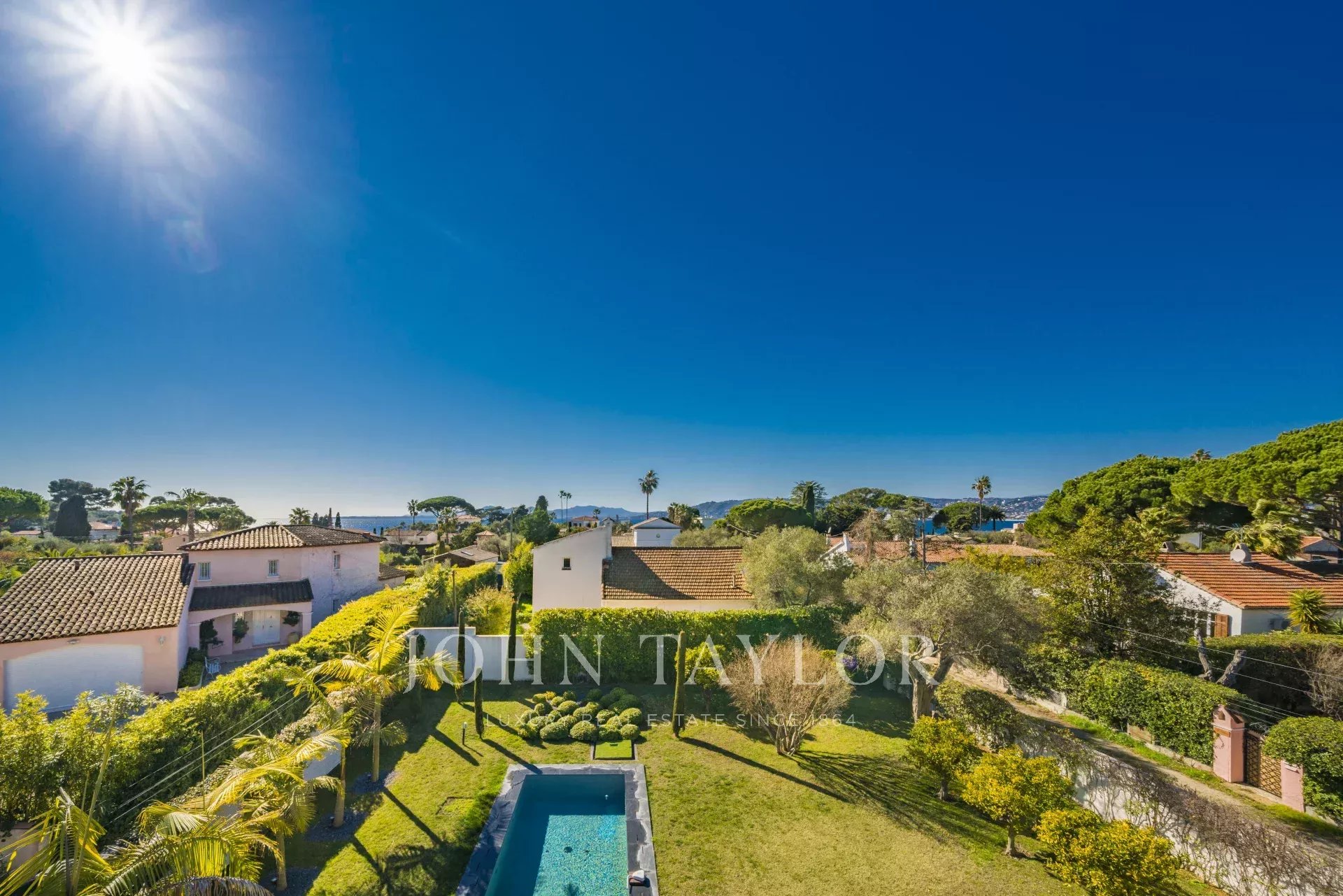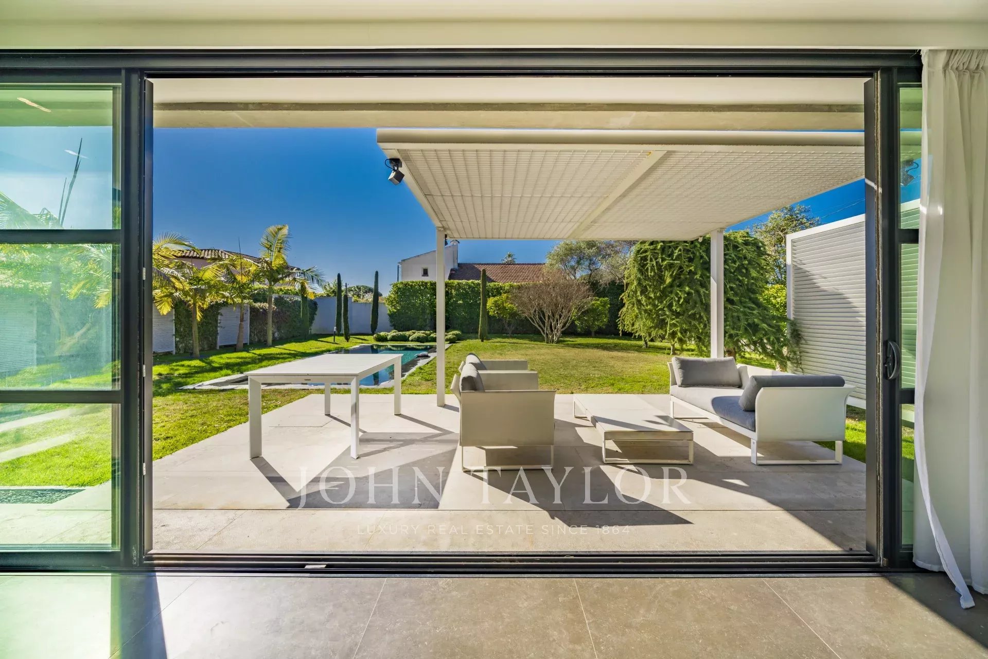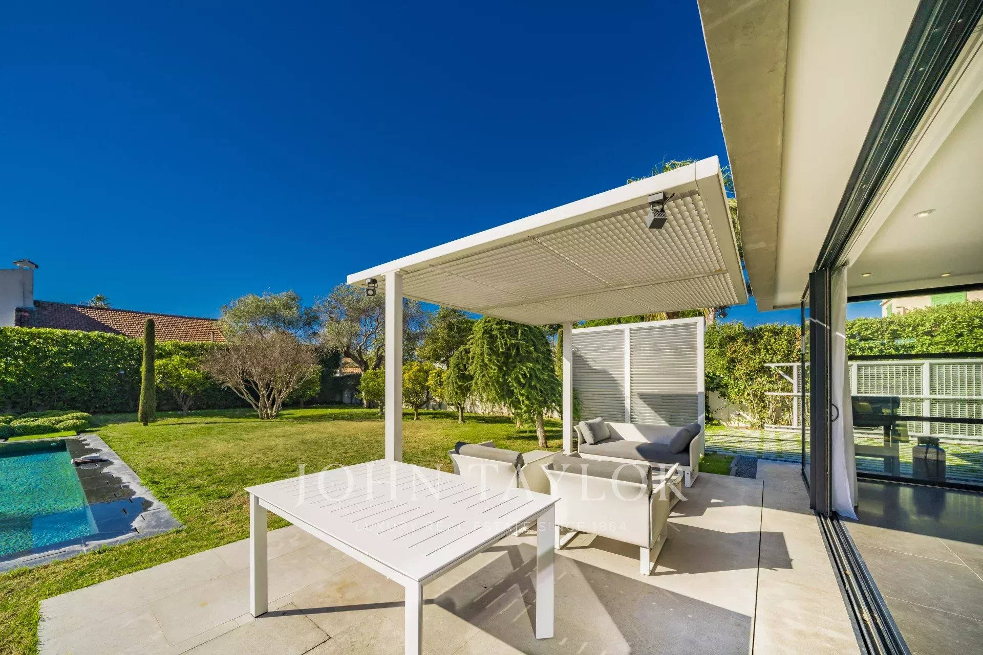 Современная вилла, строительство которой будет завершено летом 2020 года. 320 м² жилой площади, 940 м² ровной земли, с террасы на крыше открывается потрясающий вид на море (залив Жуан-ле-Пен и Иль-де-Лерин).