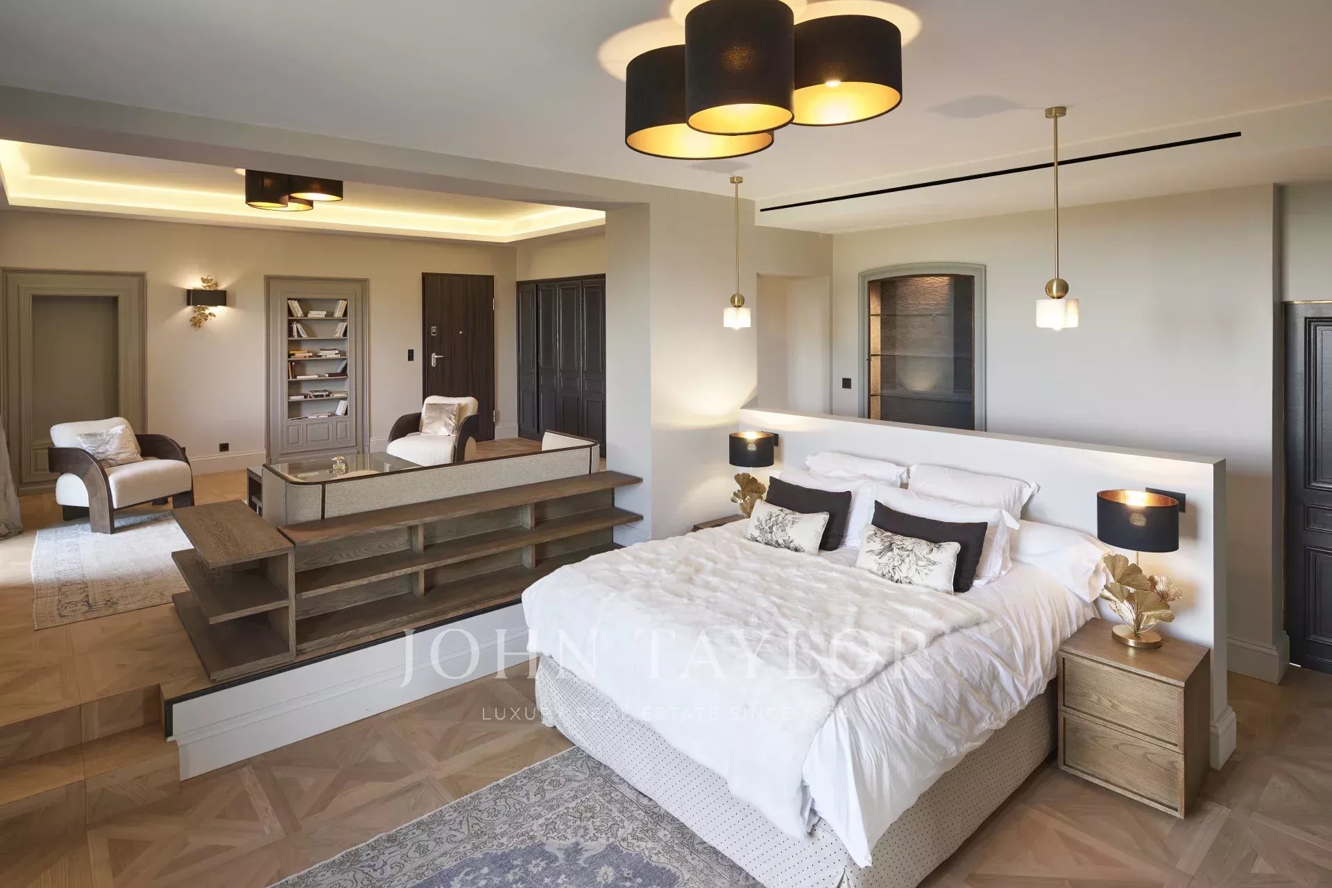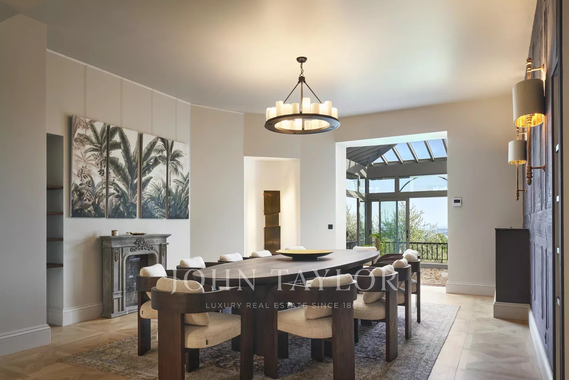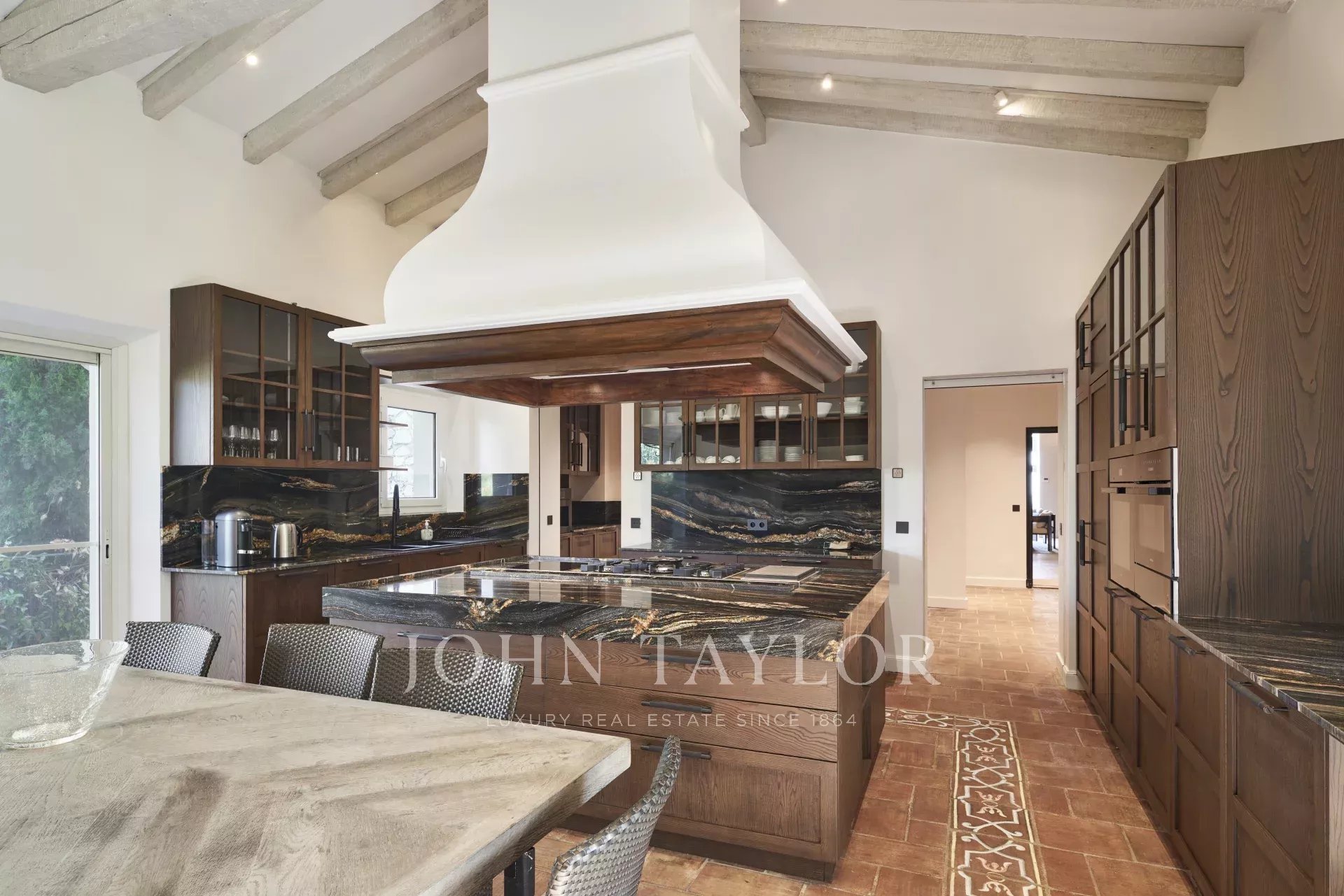 Как только вы прибудете на место, вы будете очарованы величием этой виллы: эффектная зона приема гостей приветствует вас, задавая тон интерьеру с большими объемами и исключительными характеристиками.