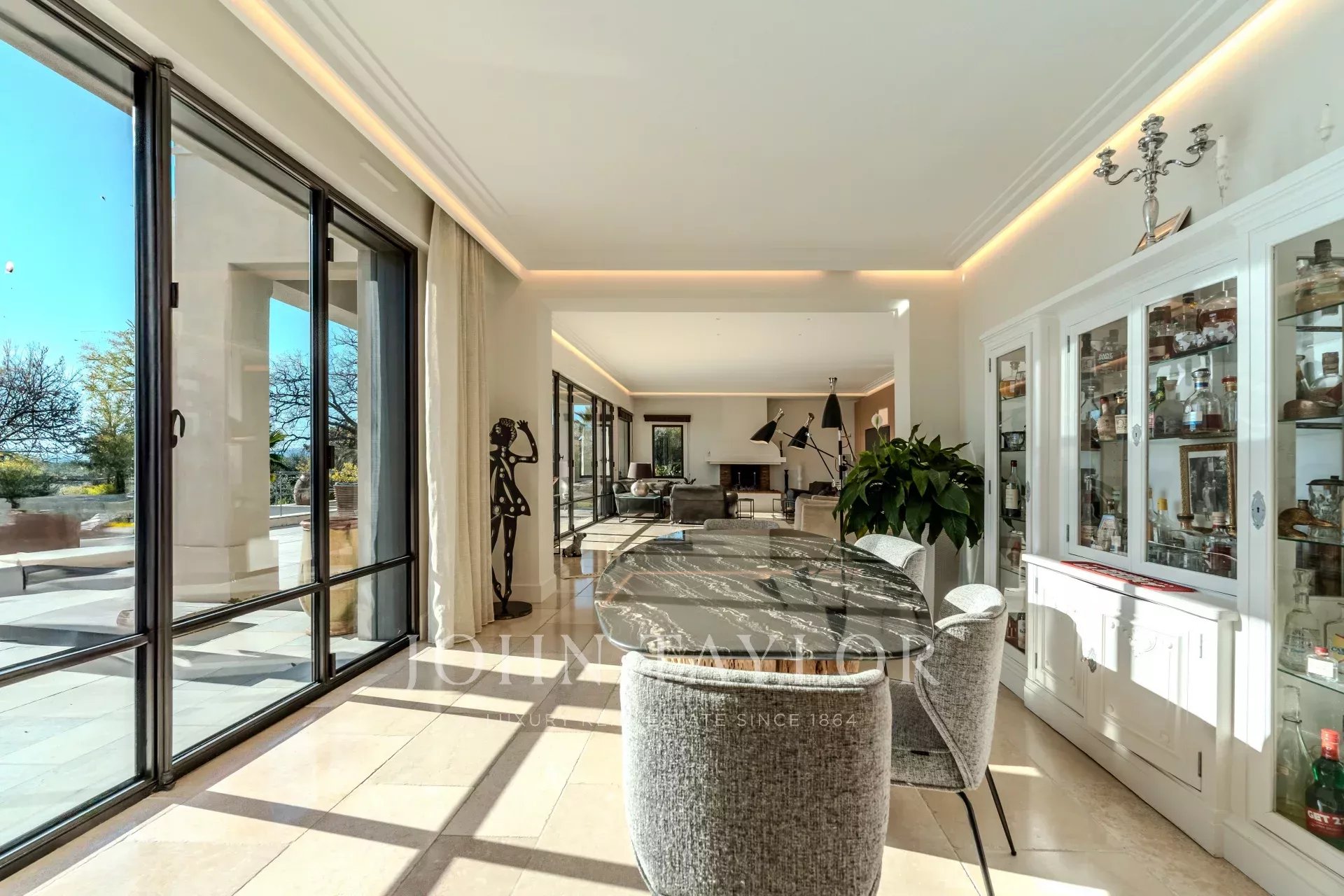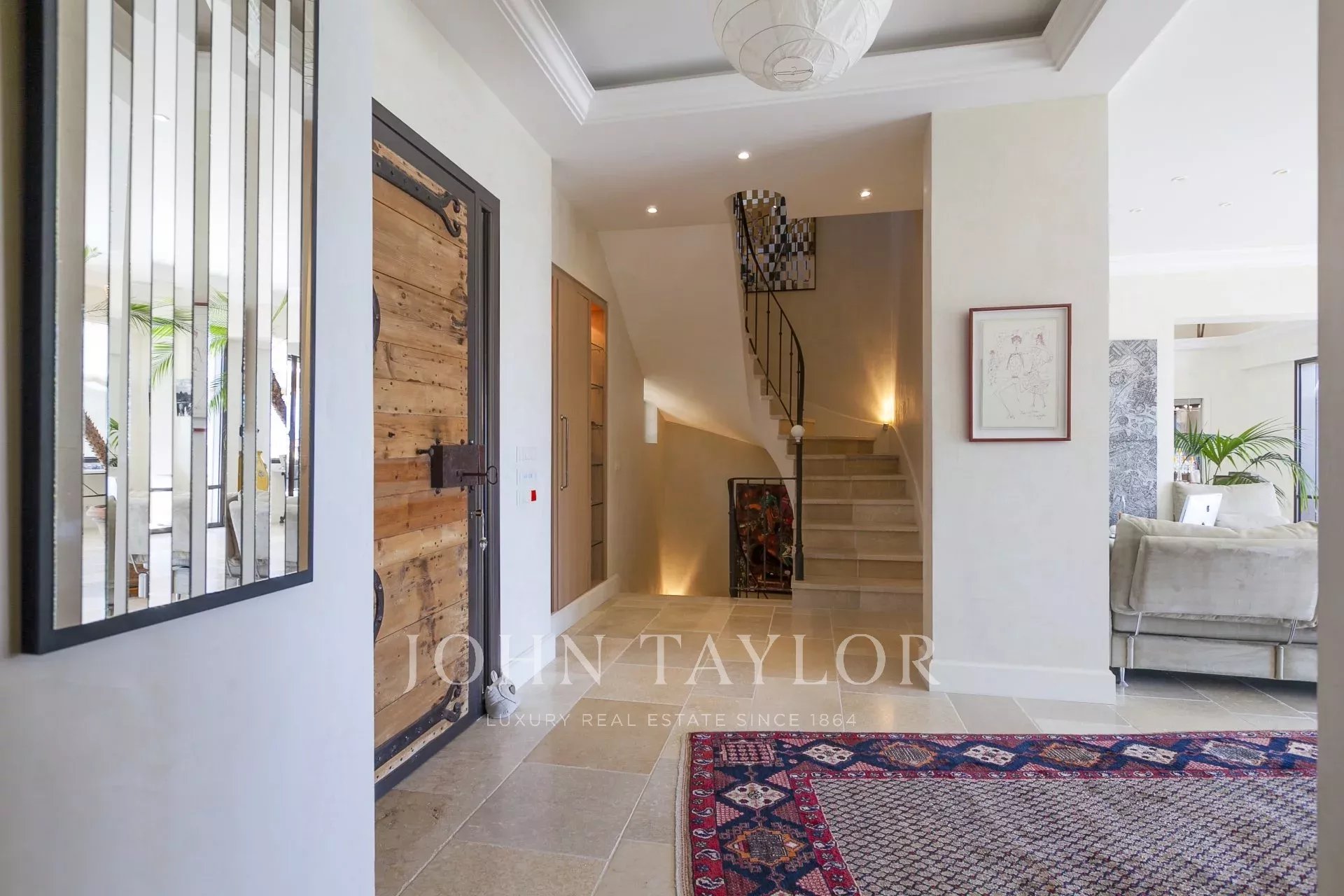 По прибытии вас встретит элегантная прихожая с гостевым туалетом. Просторная, наполненная светом гостиная, расширенная за счет столовой, выходит на солнечную террасу. Полупрофессиональная, полностью оборудованная кухня выходит на крытую террасу с барбекю и летней обеденной зоной. Подсобное помещение, прачечная и винный погреб дополняют пространство.