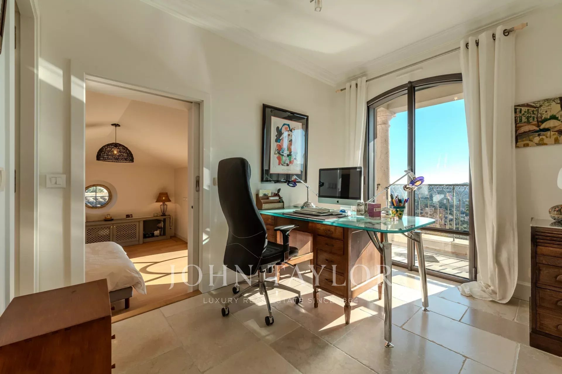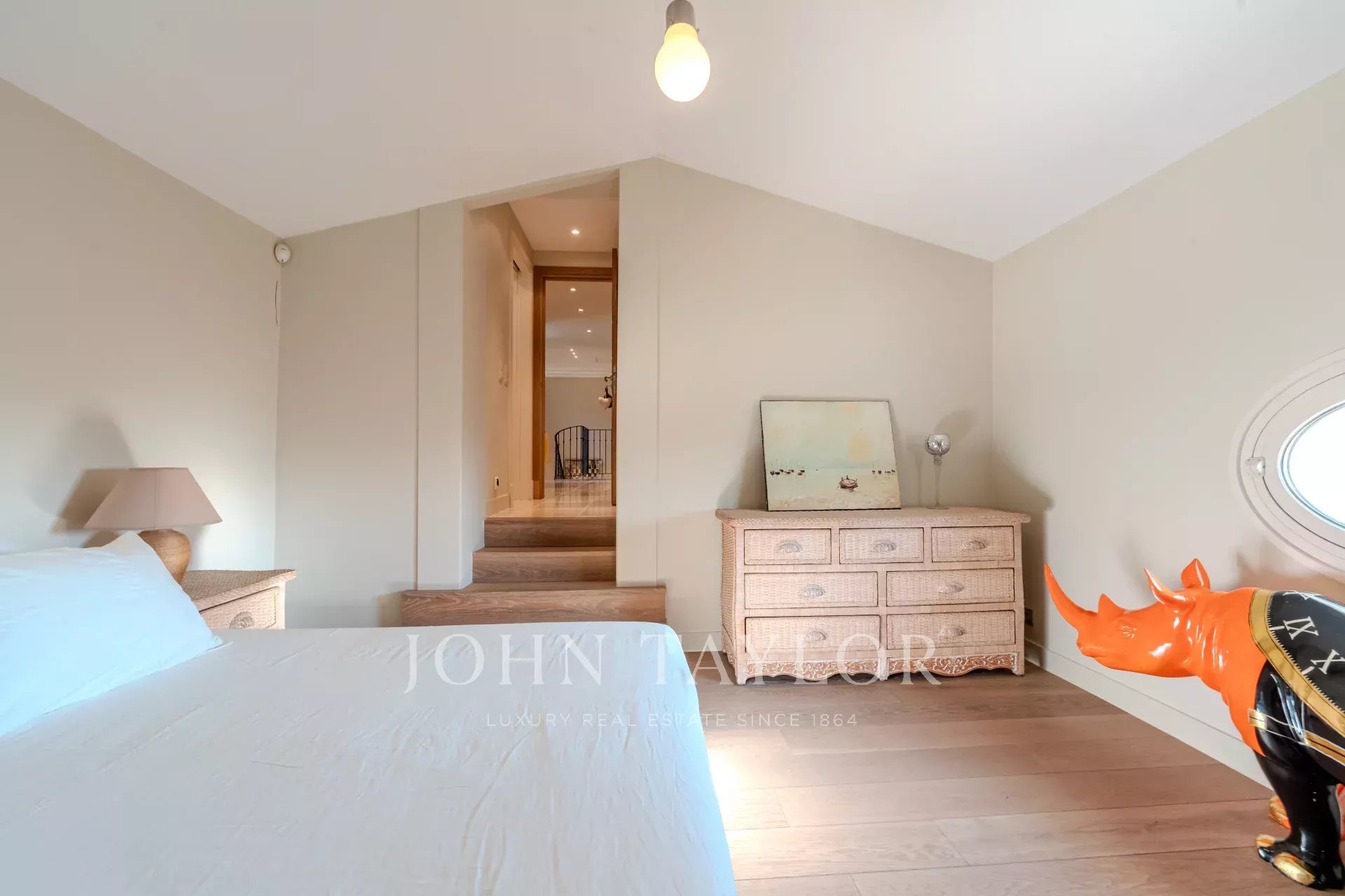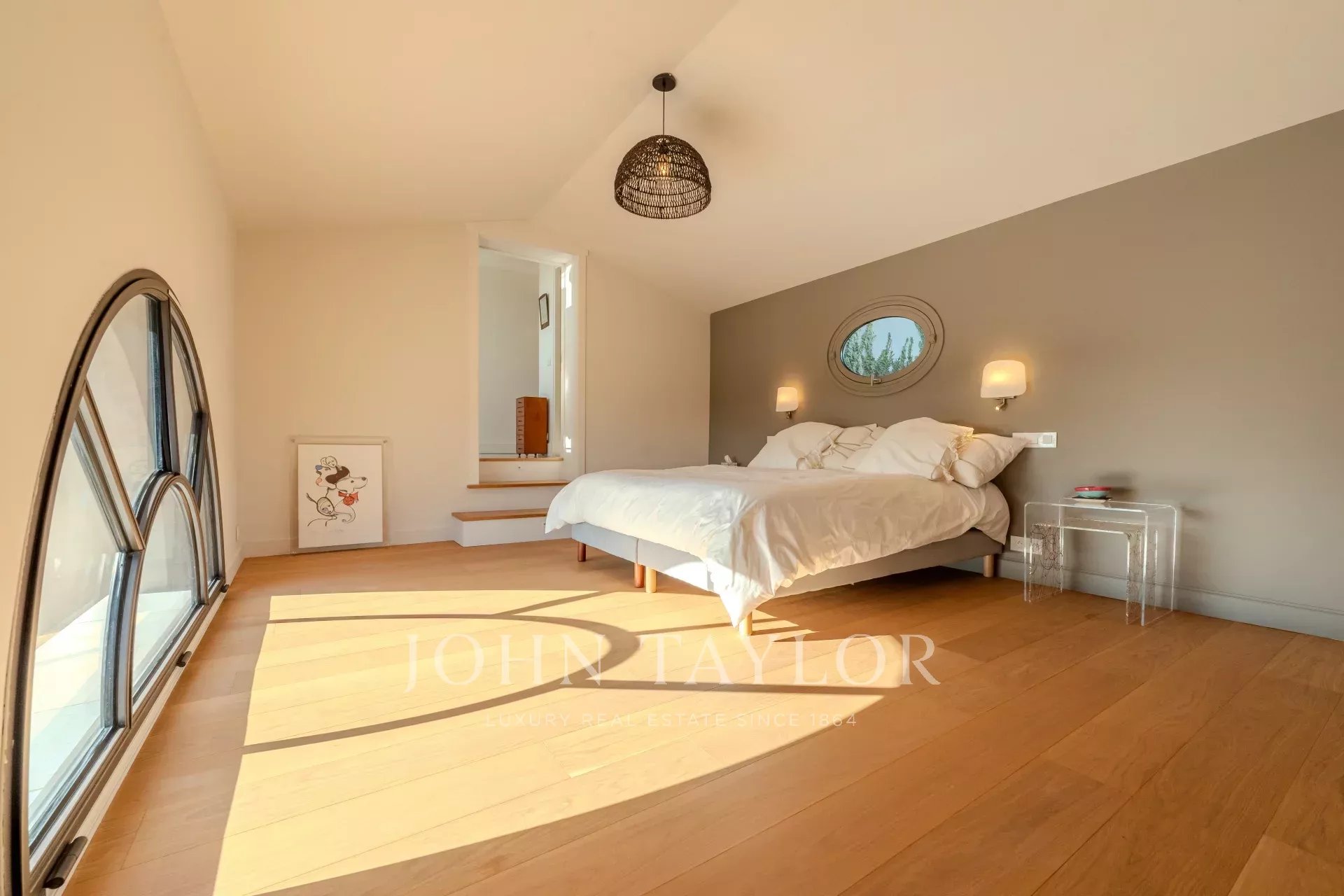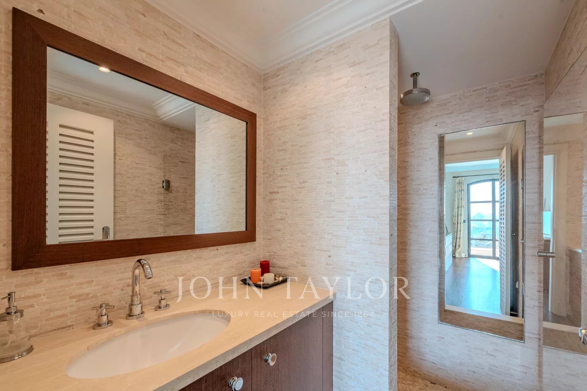 Наверху четыре элегантные спальни, каждая с собственной душевой комнатой и туалетом, выходят на огромную террасу. Среди них есть кабинет, идеально подходящий для телеработы, и зоны с гибким расположением спальных мест (кровати king-size или односпальные кровати).