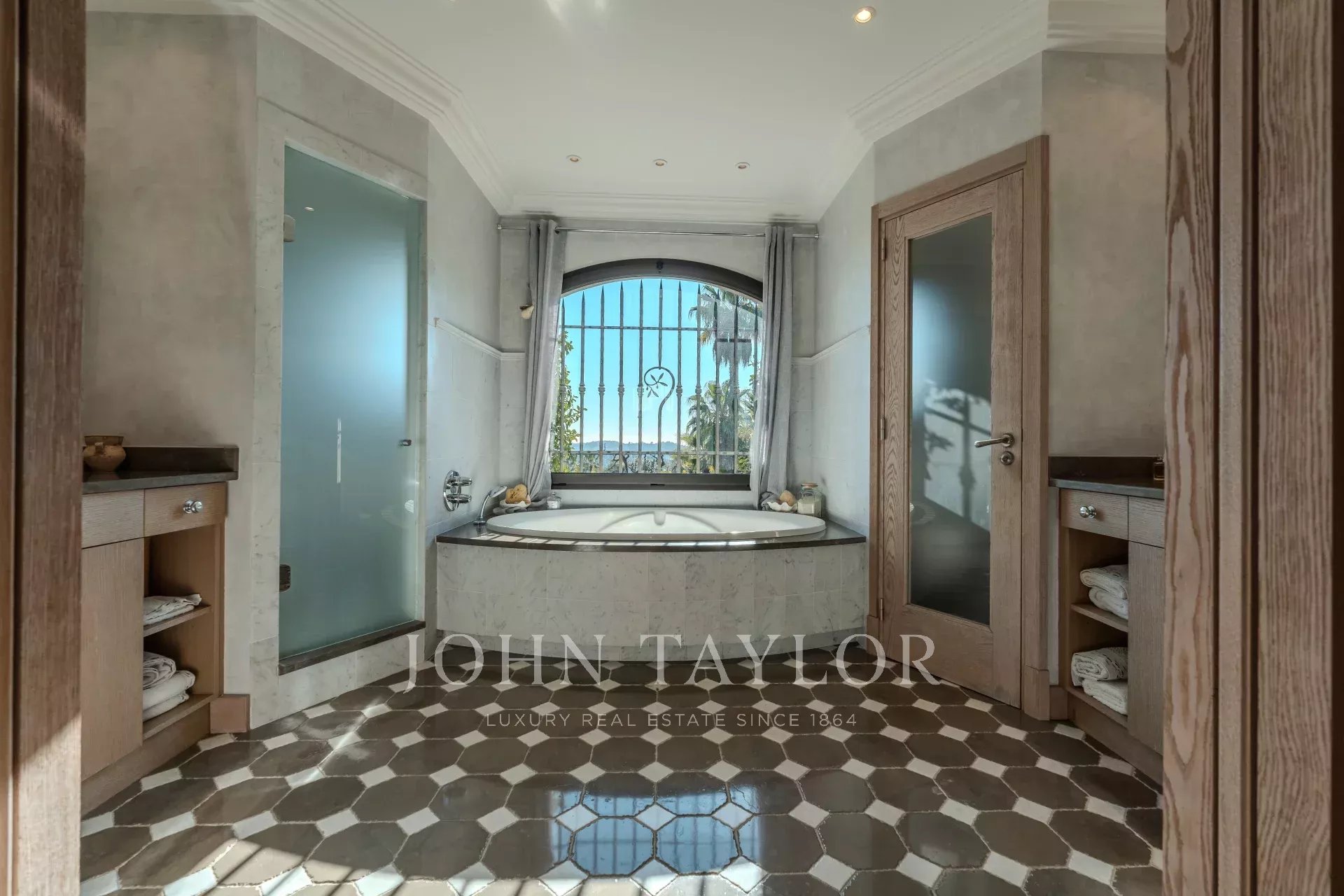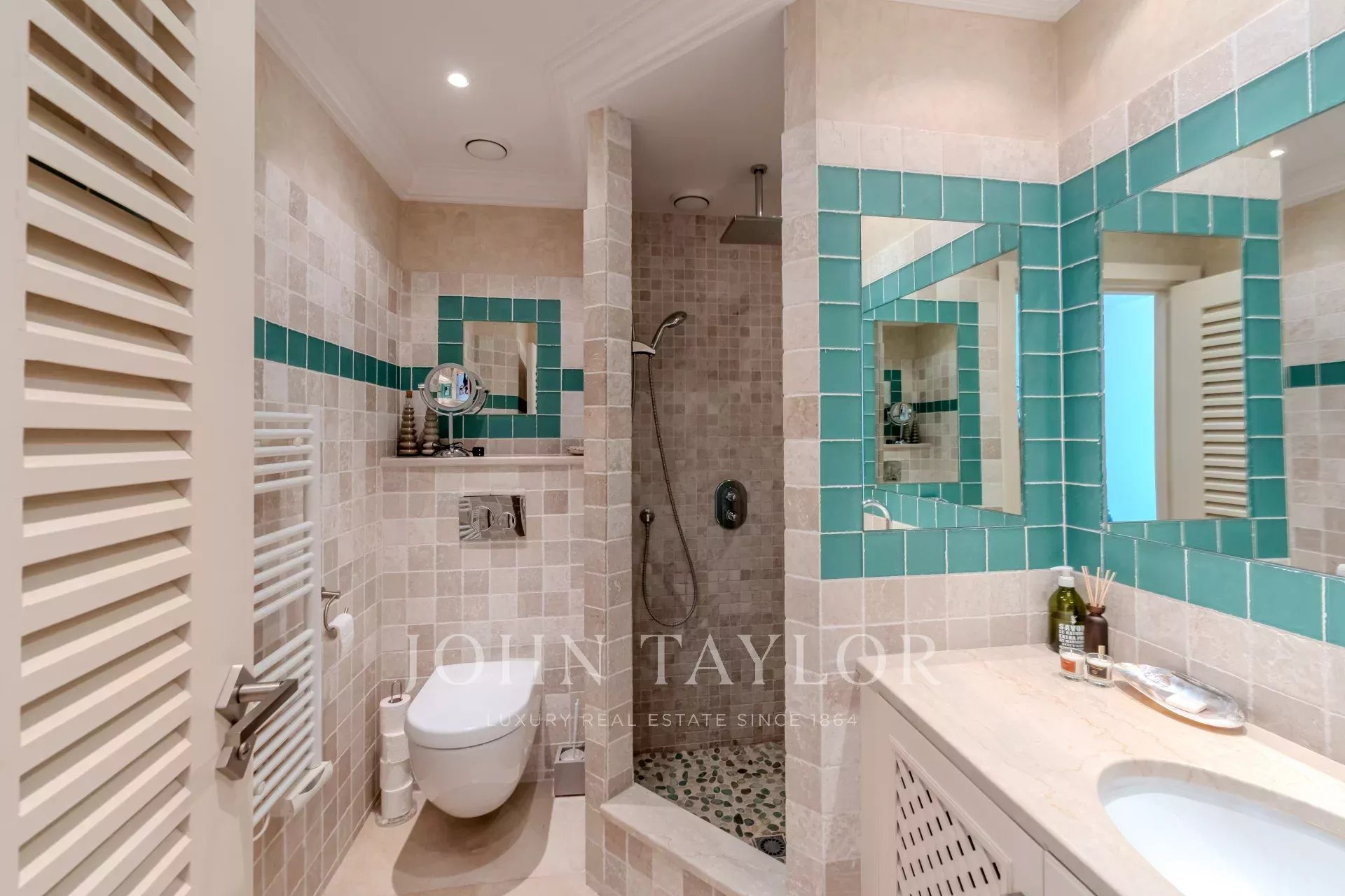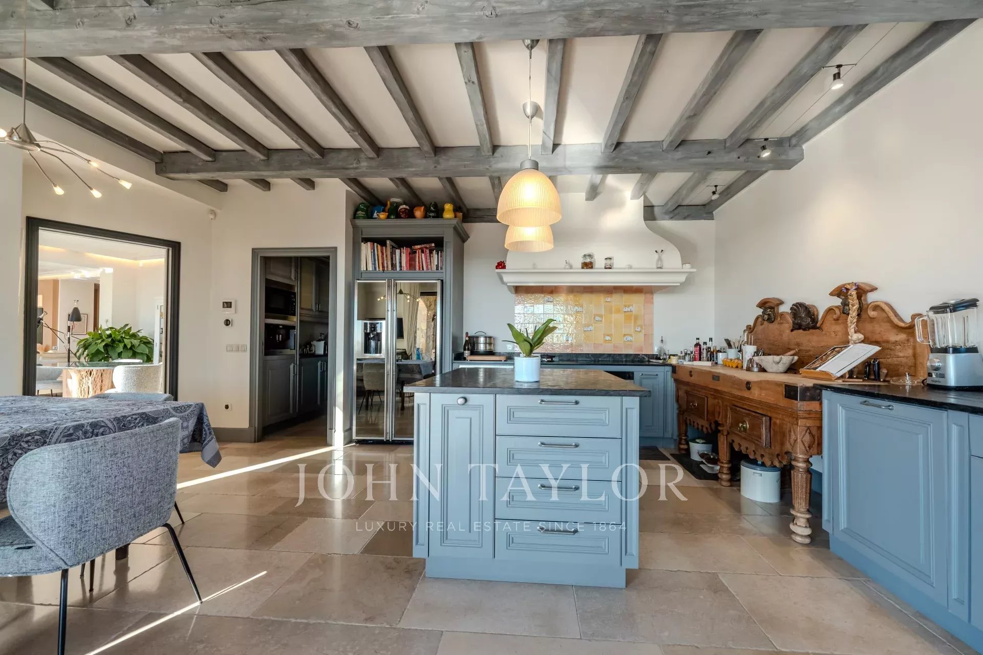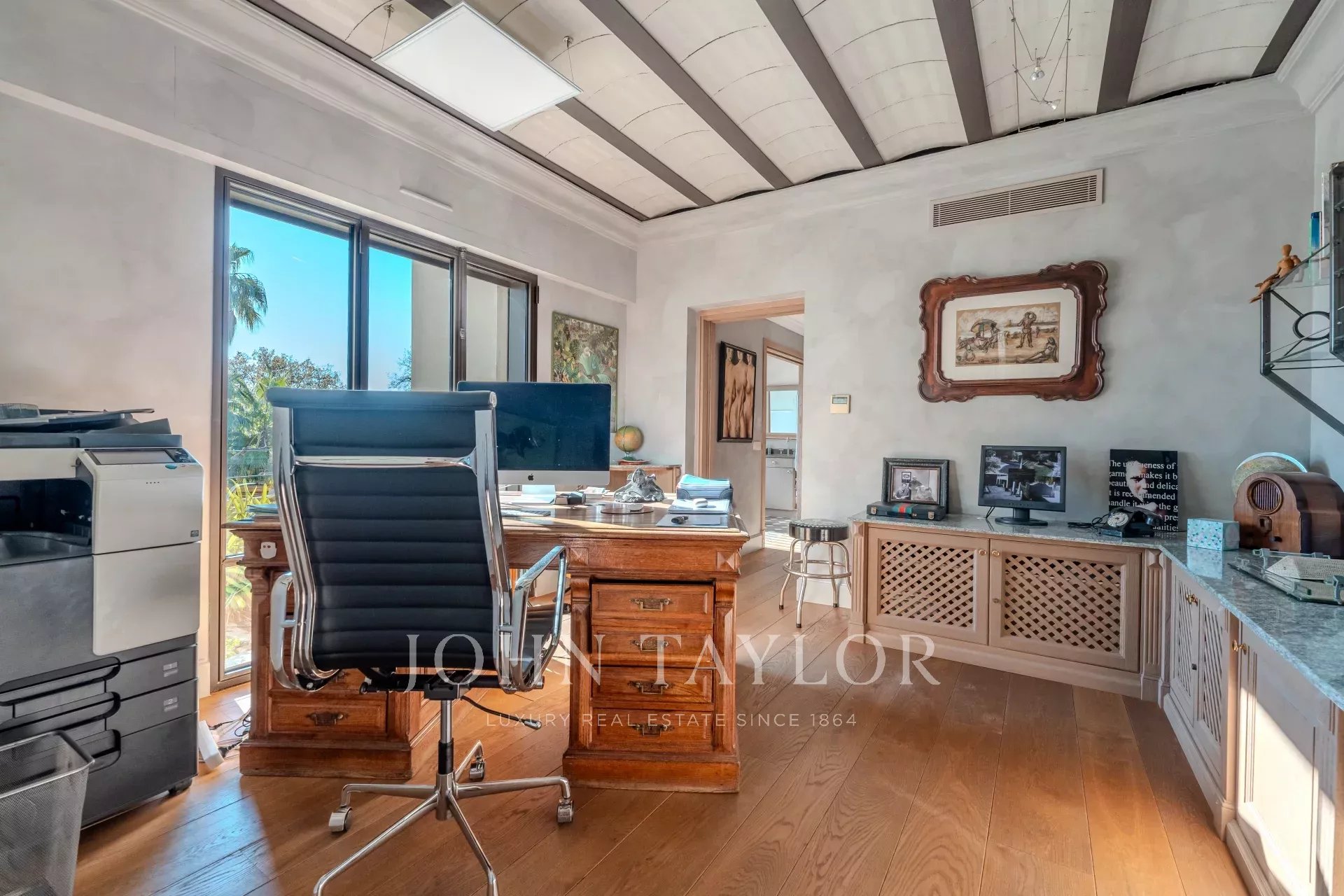 Наверху четыре элегантные спальни, каждая с собственной душевой комнатой и туалетом, выходят на огромную террасу. Среди них есть кабинет, идеально подходящий для телеработы, и зоны с гибким расположением спальных мест (кровати king-size или односпальные кровати).