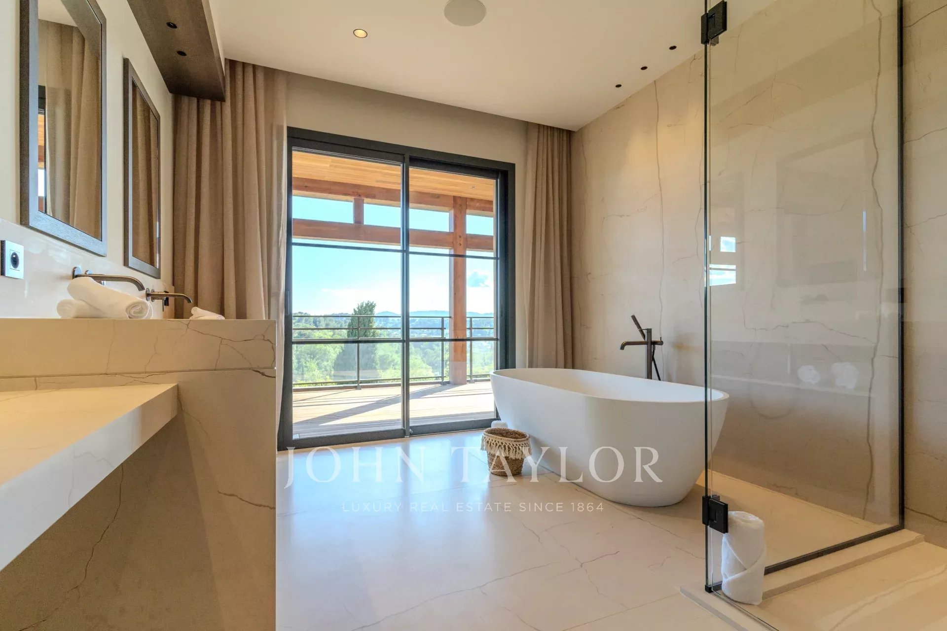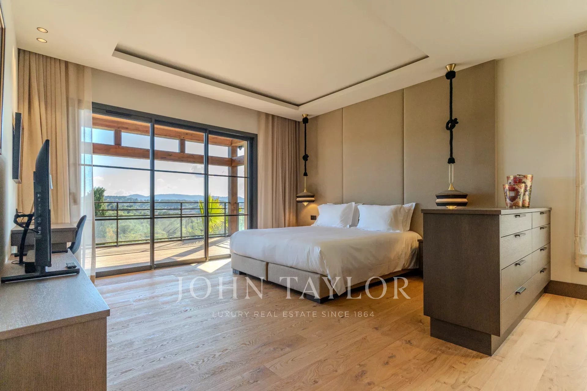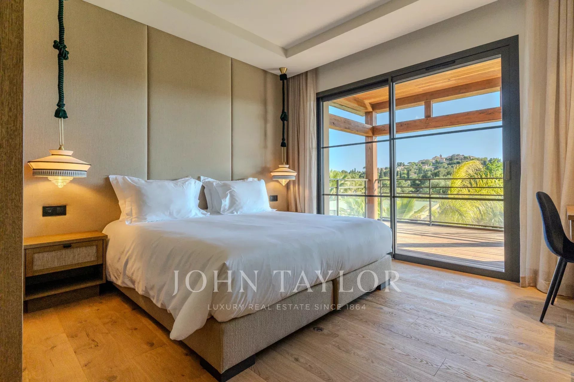 Спальня n°3: удобная двуспальная кровать, элегантная гардеробная, телевизор, ванная комната (умывальник, душевая кабина и туалет). Терраса с прекрасным видом.