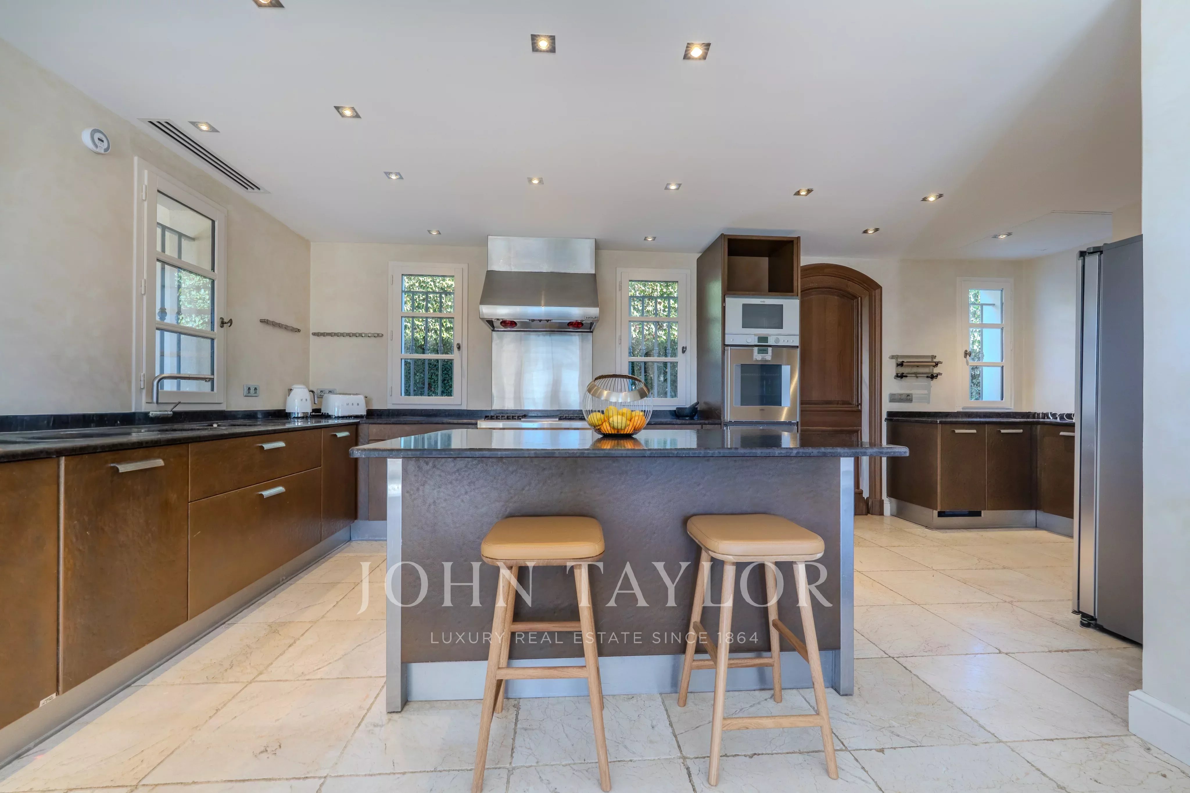 Полностью оборудованная кухня и столовая выходят на великолепную летнюю террасу, идеальную для трапез на свежем воздухе и долгих летних вечеров.