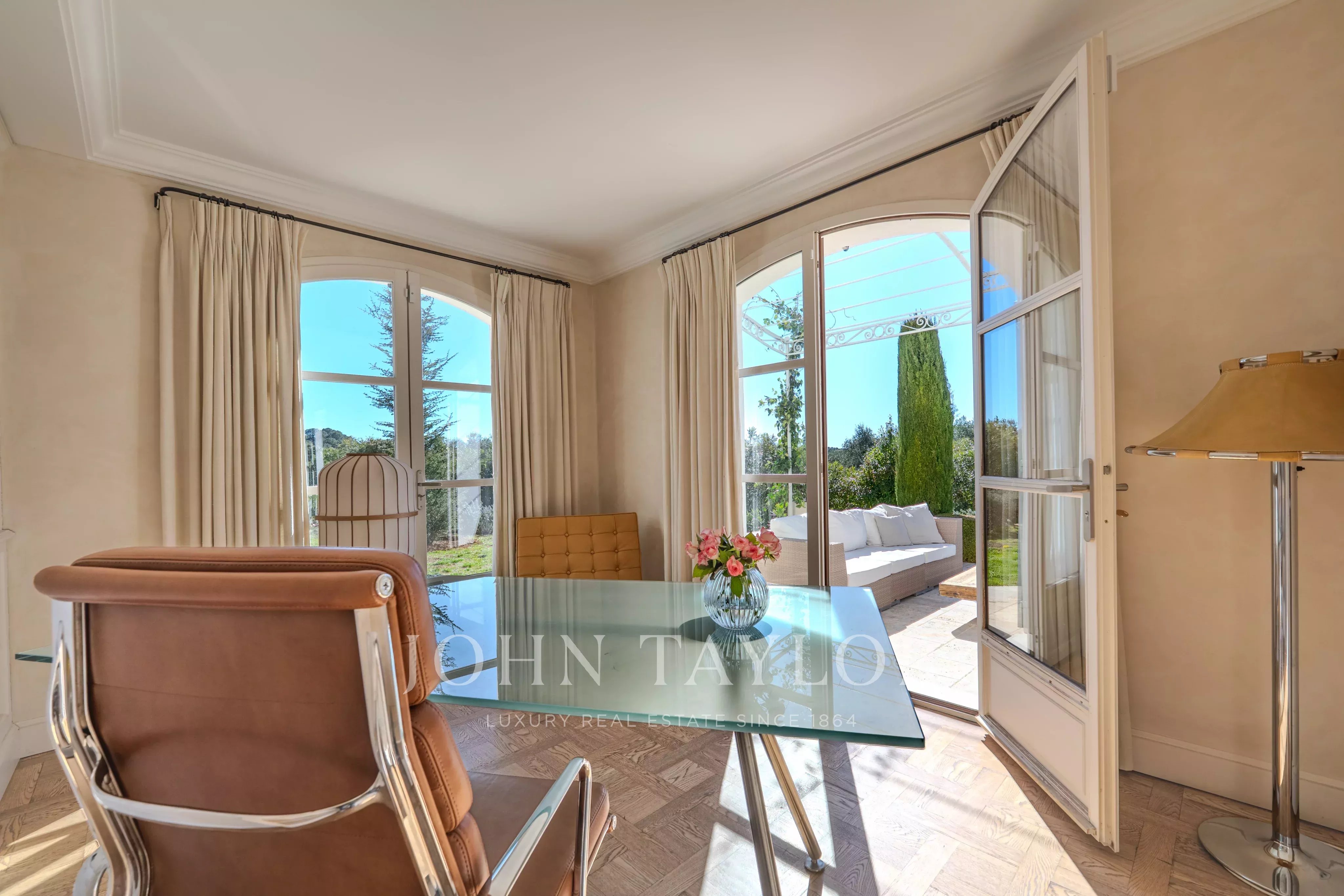 Бастида расположена между Муженом и Вальбонном, в непосредственной близости от пляжей Канн, провансальских деревень, знаменитых полей для гольфа, ресторанов и местных рынков.