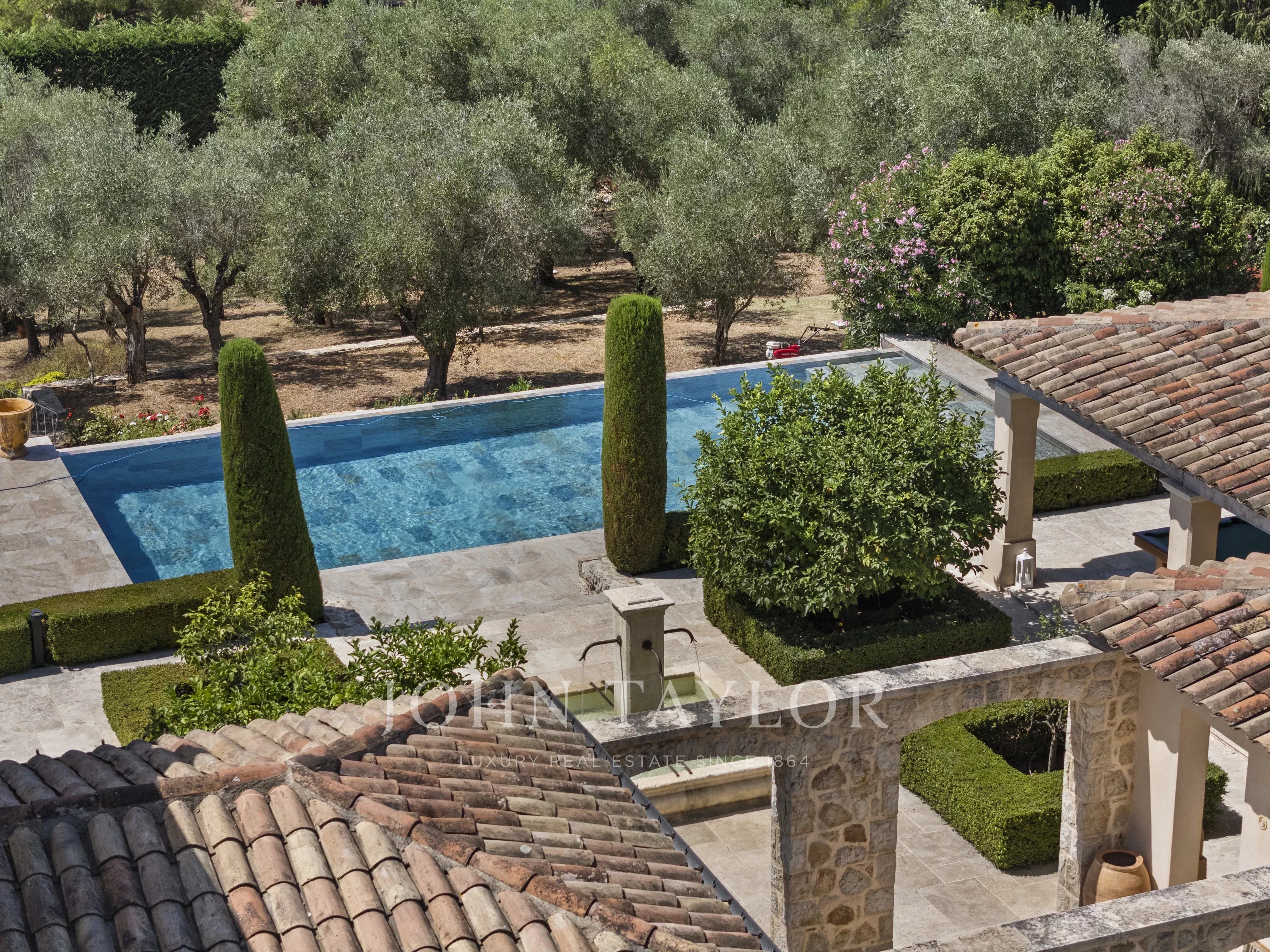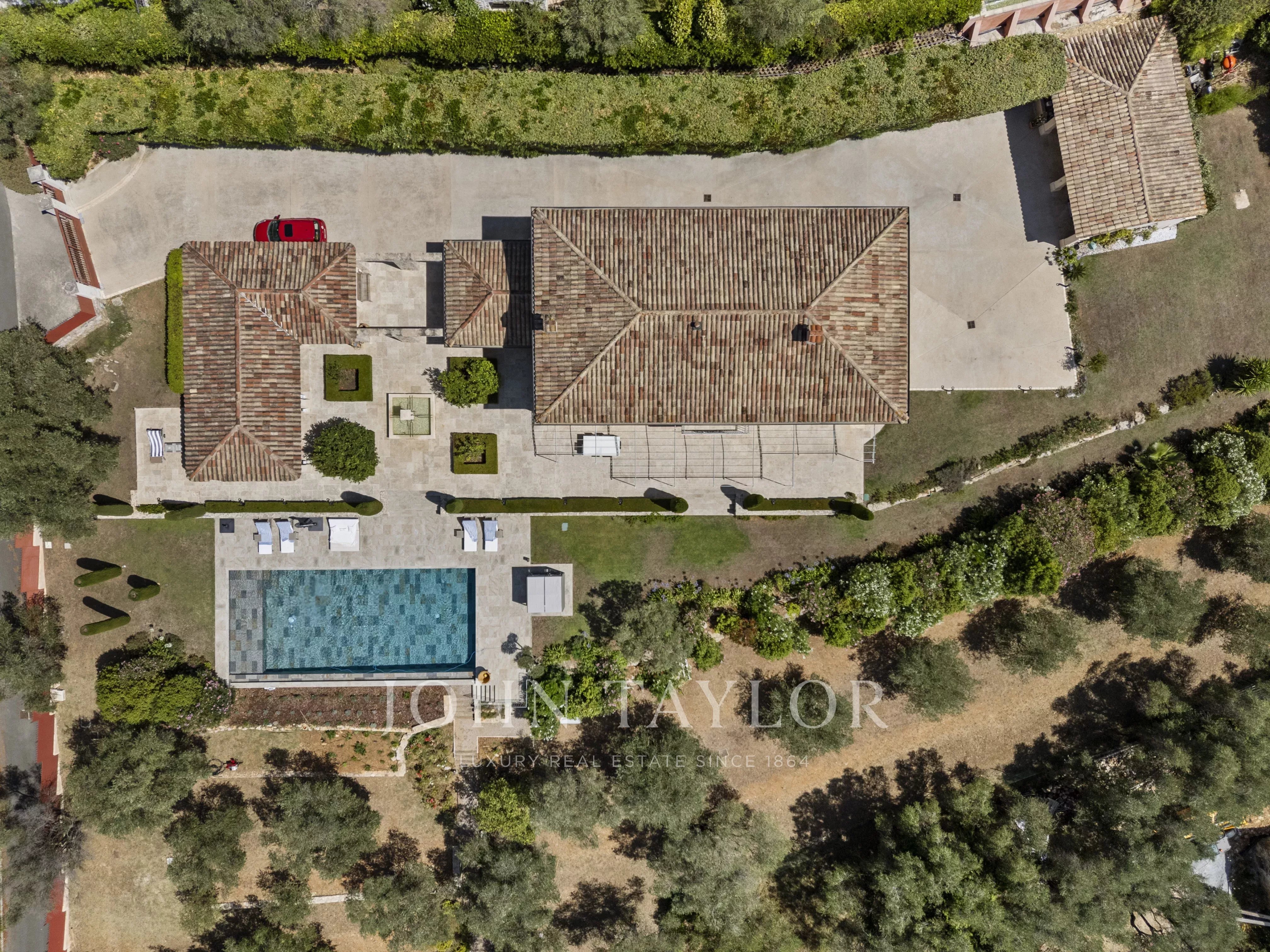 Ландшафтный участок площадью около 6 100 м² предлагает уникальную среду для жизни: формальный сад, оливковая роща, фруктовые деревья и овощные грядки.