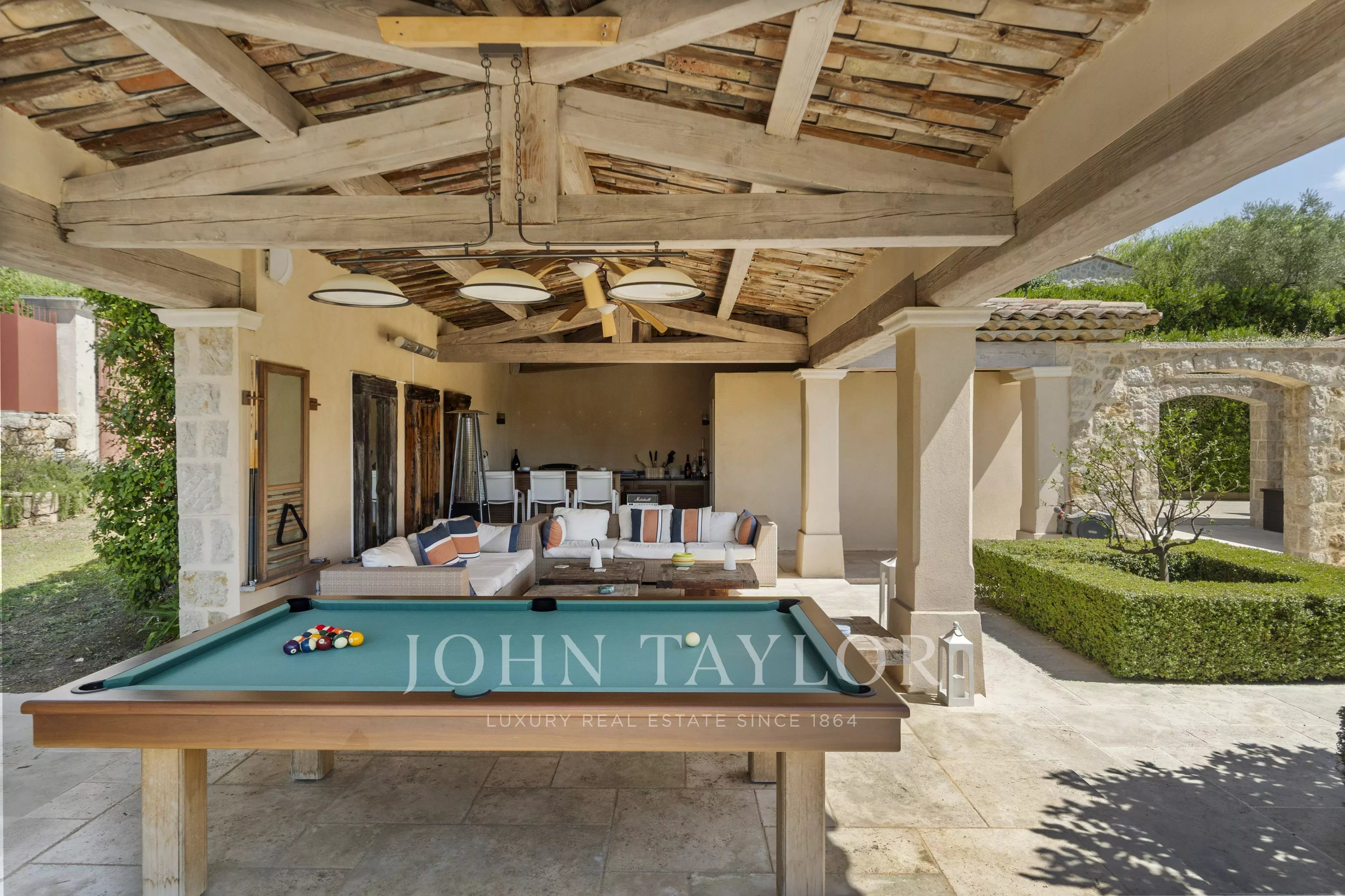 Вы также сможете насладиться подогреваемым бассейном с подогревом и полностью оборудованным домиком у бассейна (летняя кухня, гостиная, парная) для несравненных моментов релаксации.