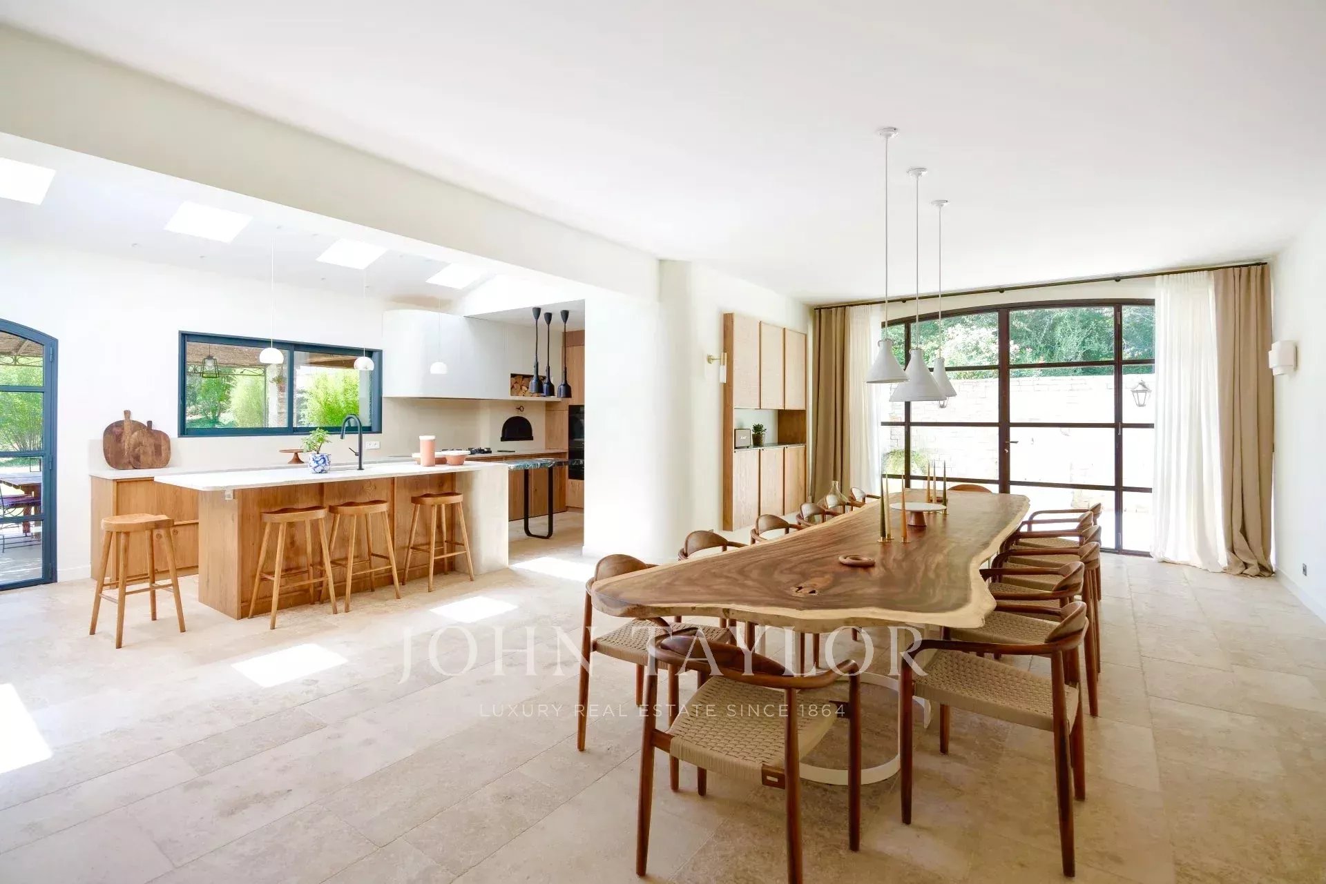 Дом сразу же привлекает своим изысканным, теплым декором. Каждая комната была тщательно продумана, сочетая гармоничные цвета, со вкусом подобранную мебель и благородные материалы. Натуральный камень, качественное дерево, нежные ткани: все здесь излучает комфорт и изысканность.