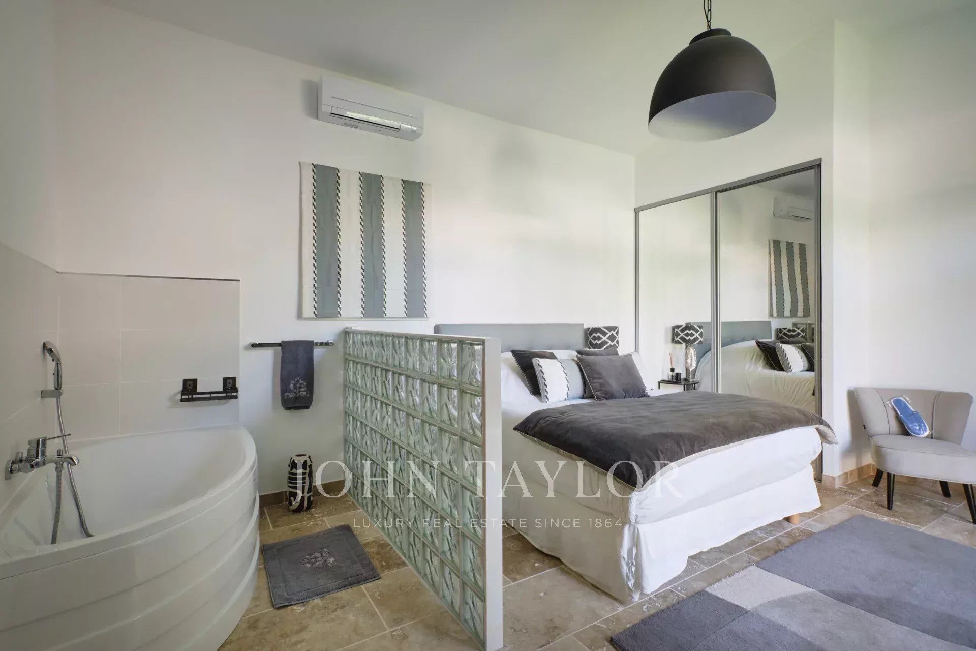 На этой красивой кондиционированной вилле, рассчитанной на 18 человек, есть 7 спален, отдельная студия и 7 ванных комнат, расположенных в просторных помещениях, предназначенных для комфорта и общения. Владельцы создали шикарную, непринужденную атмосферу, уделяя пристальное внимание деталям и качественным материалам. Несколько террас с разной атмосферой приглашают вас расслабиться, насладиться аперитивами с друзьями, почитать или просто воспользоваться великолепным бассейном.