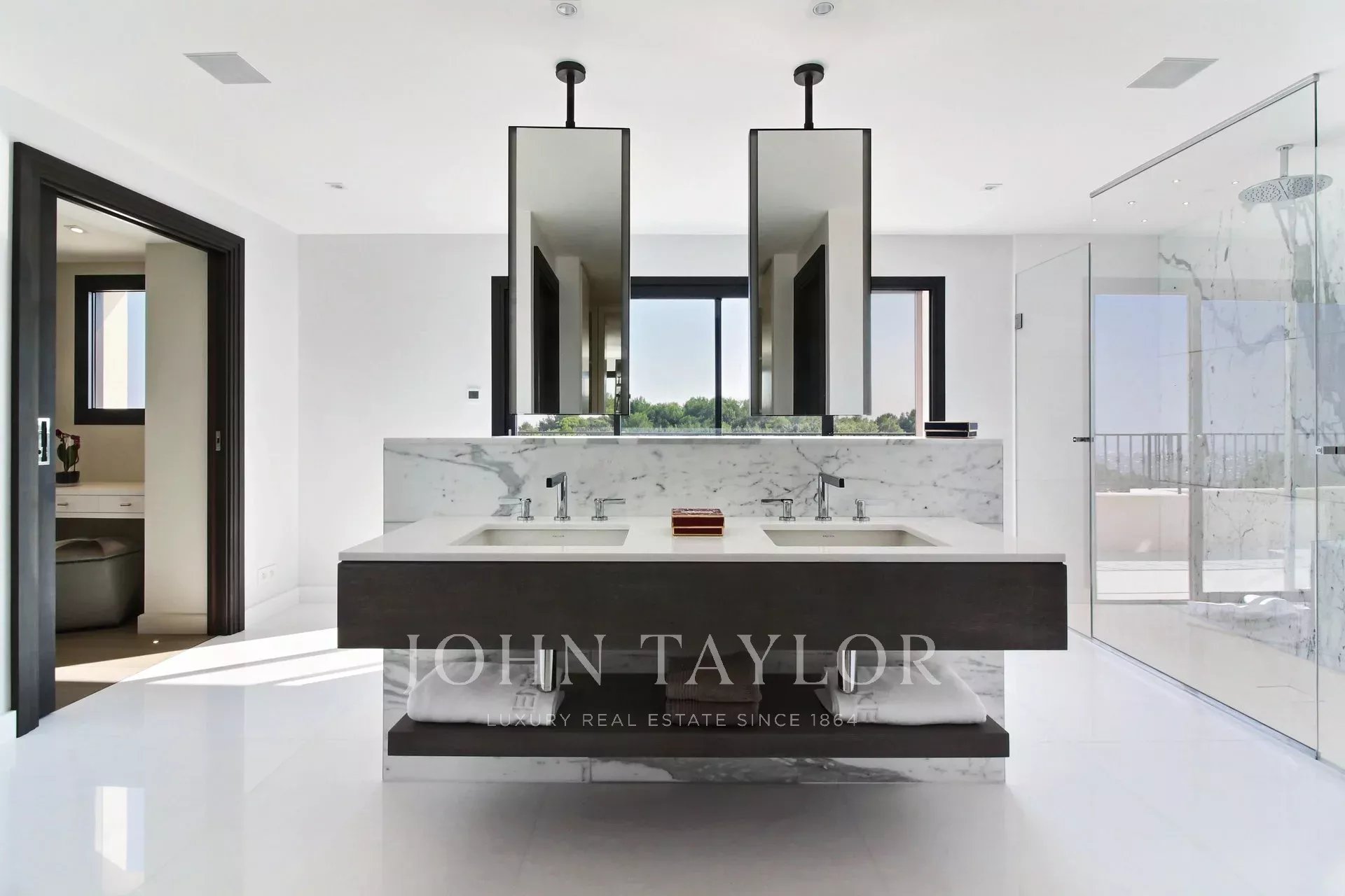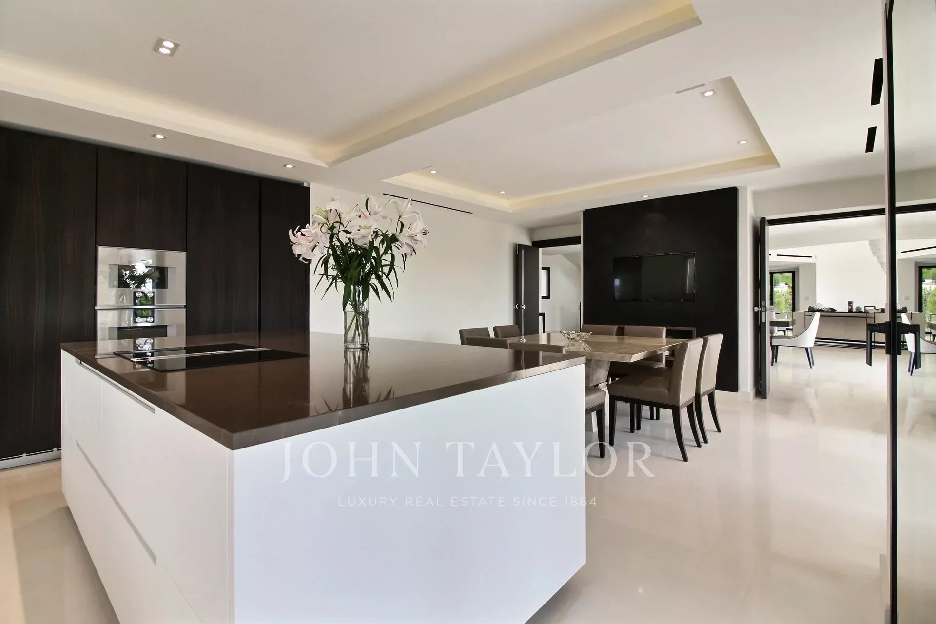 Откройте для себя эту великолепную виллу, расположенную в охраняемом поместье Hauts de Saint-Paul. Полностью отреставрированная, утонченная и элегантная, эта семейная резиденция сочетает в себе передовые технологии и исключительные удобства в роскошной, гармоничной обстановке.