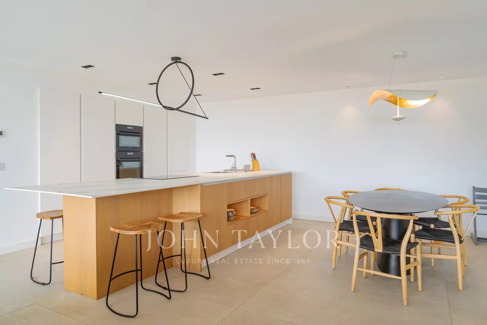 Вилла располагает элегантной гостиной из вощеного бетона, состоящей из просторного холла, столовой и полностью оборудованной кухни. Это пространство полностью открыто наружу благодаря большим 3-метровым раздвижным стеклянным окнам, обеспечивающим исключительное освещение и гармоничное единение с окружающей природой.