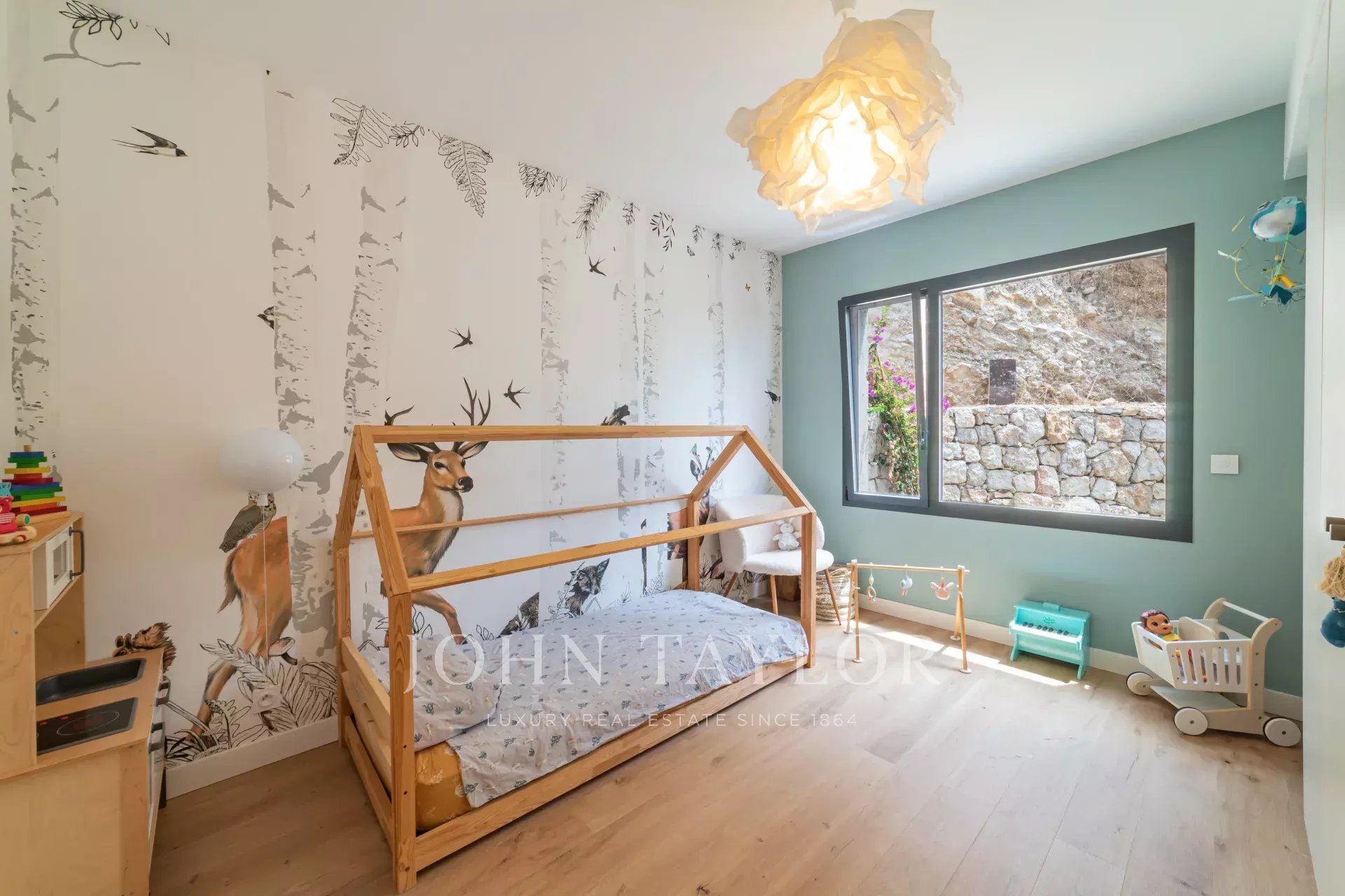 Две детские спальни с общей ванной комнатой, доступной из каждой спальни.
