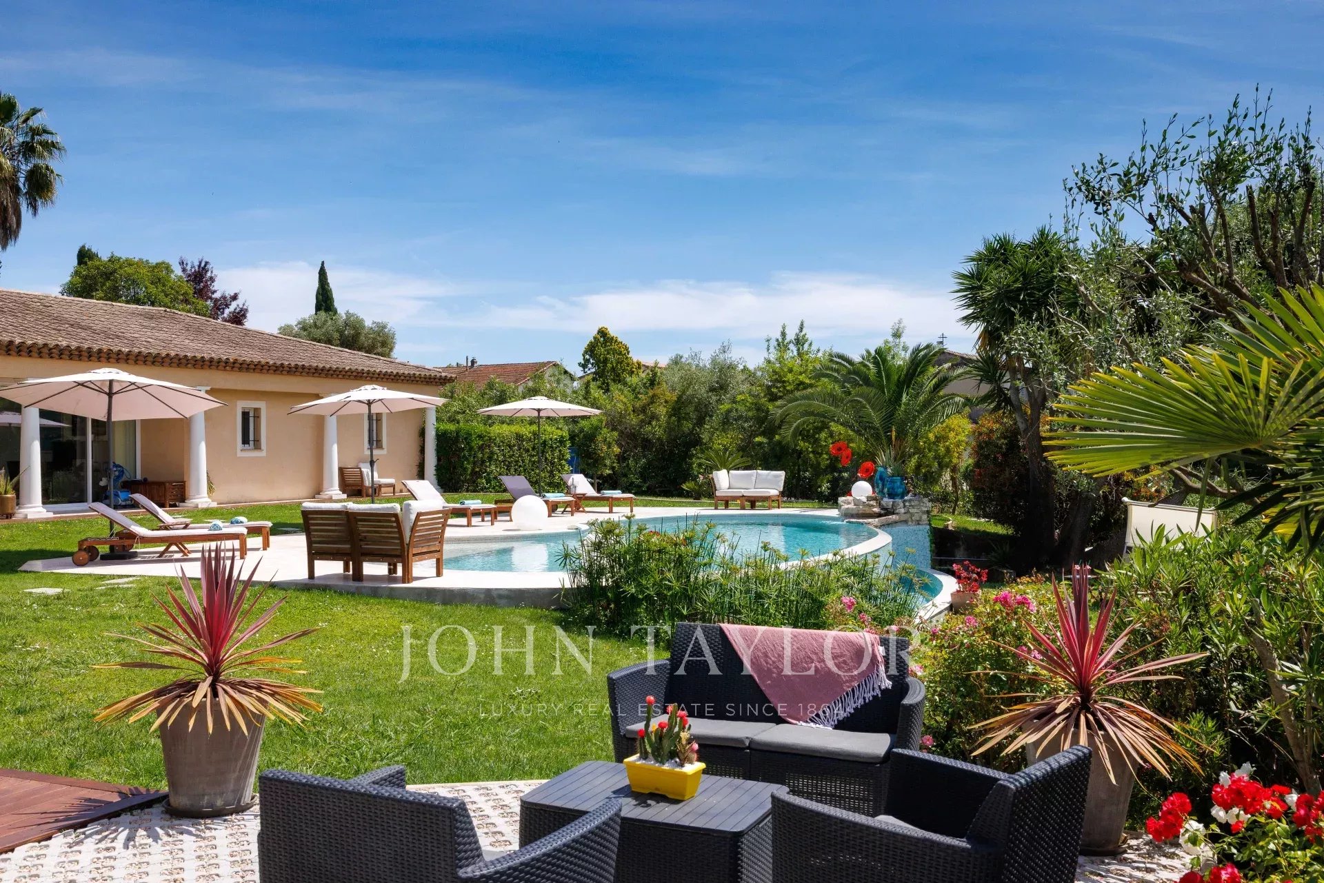 Вилла в неоклассическом стиле площадью 350 м2 расположена недалеко от деревни Сен-Поль-де-Ванс.