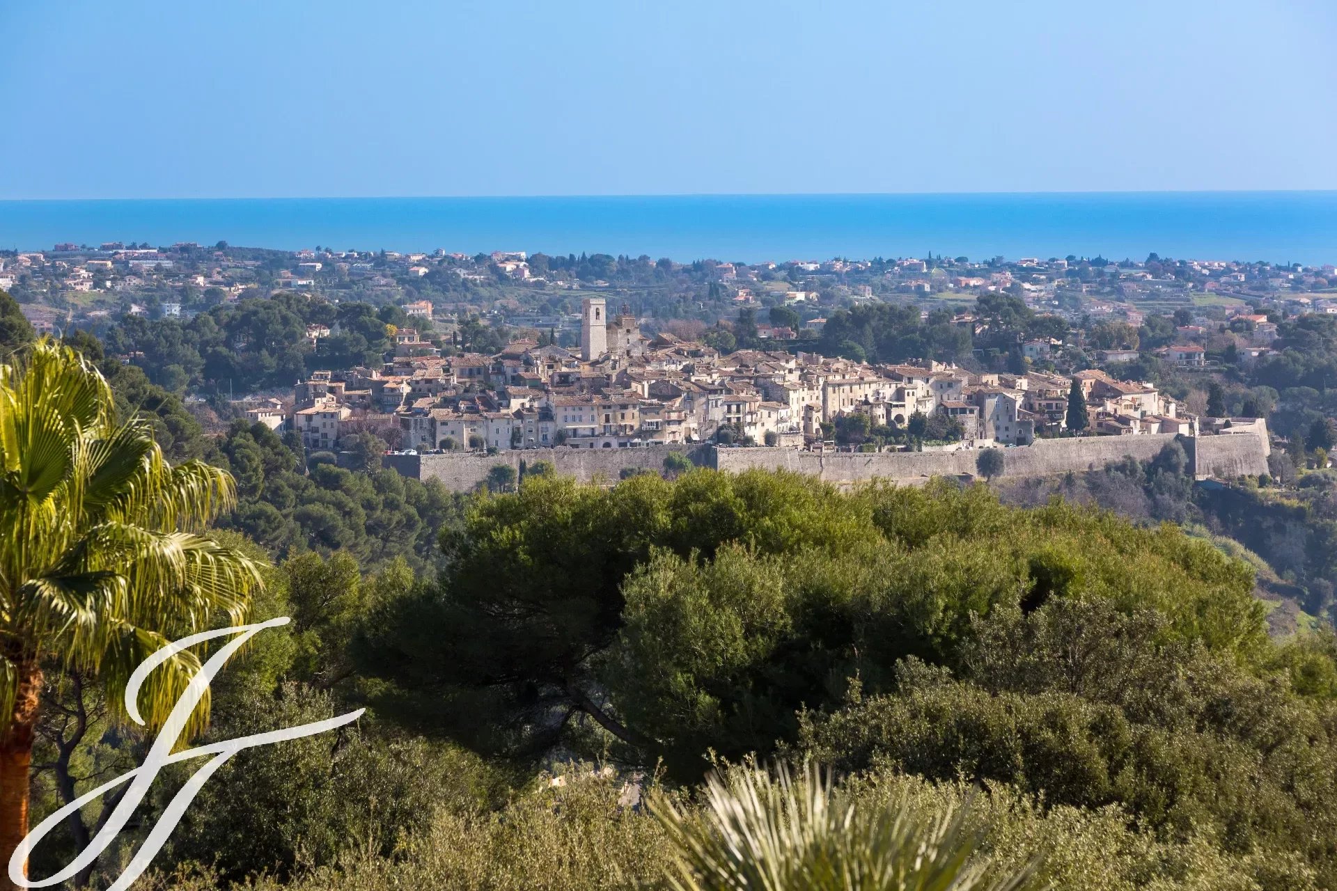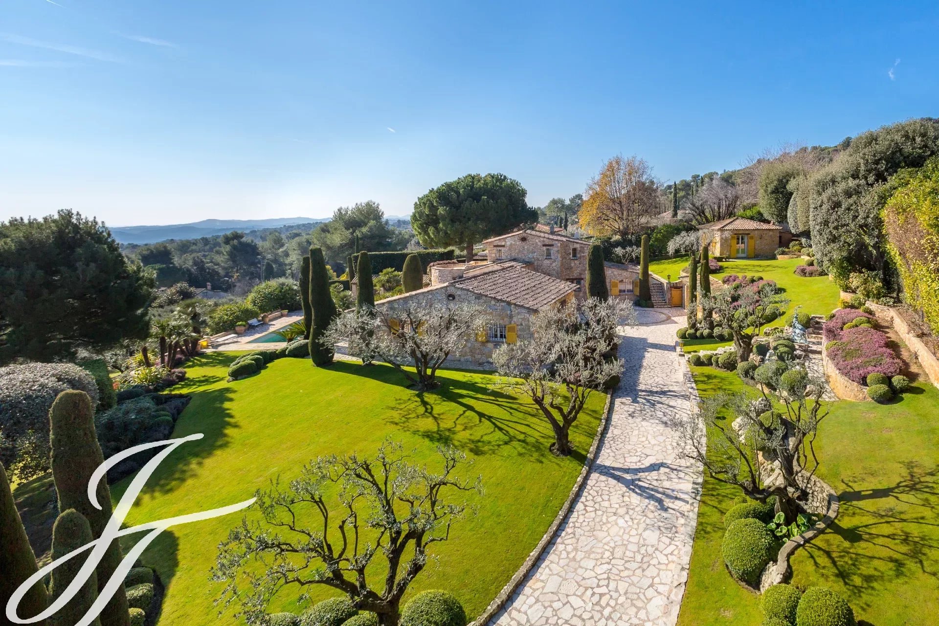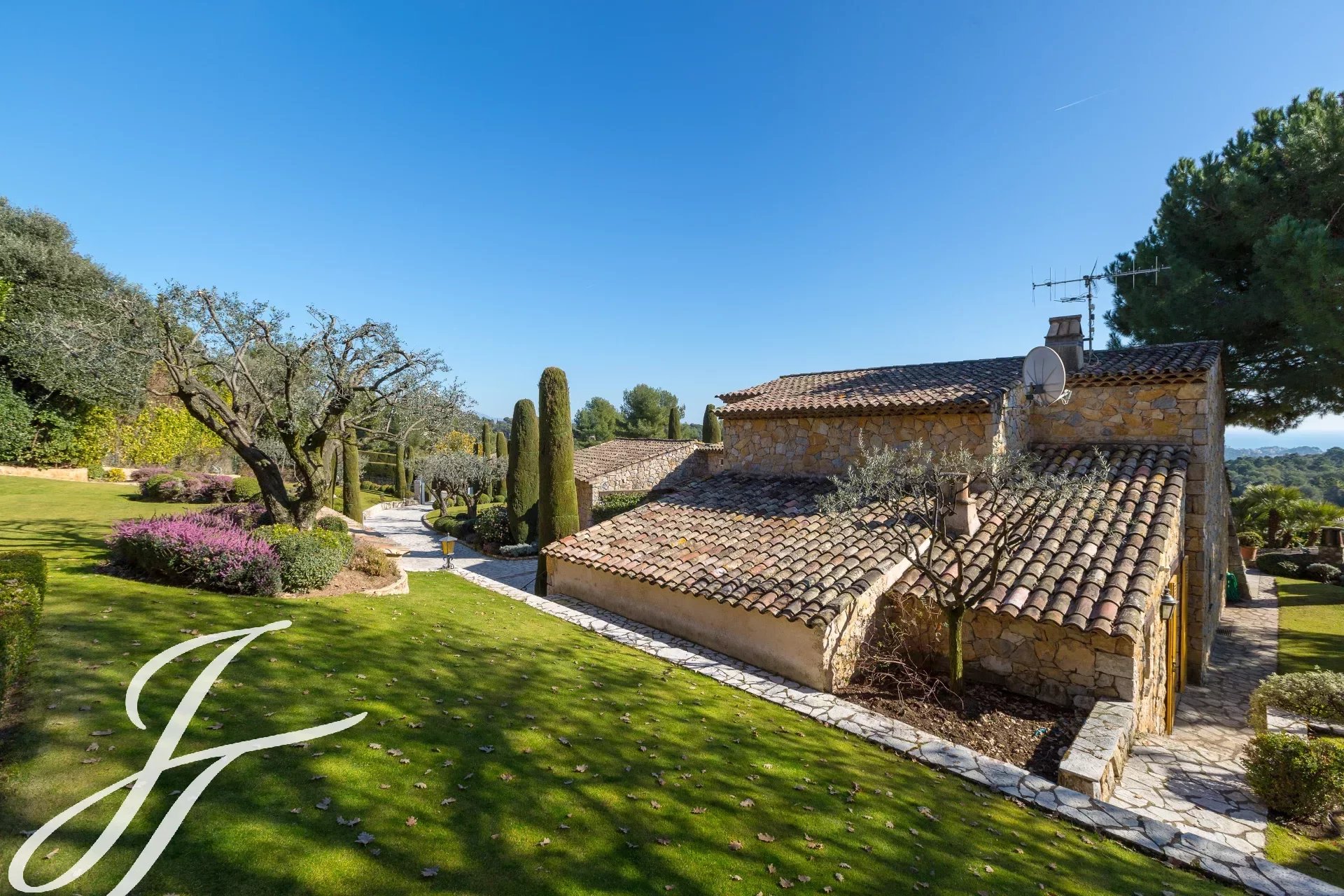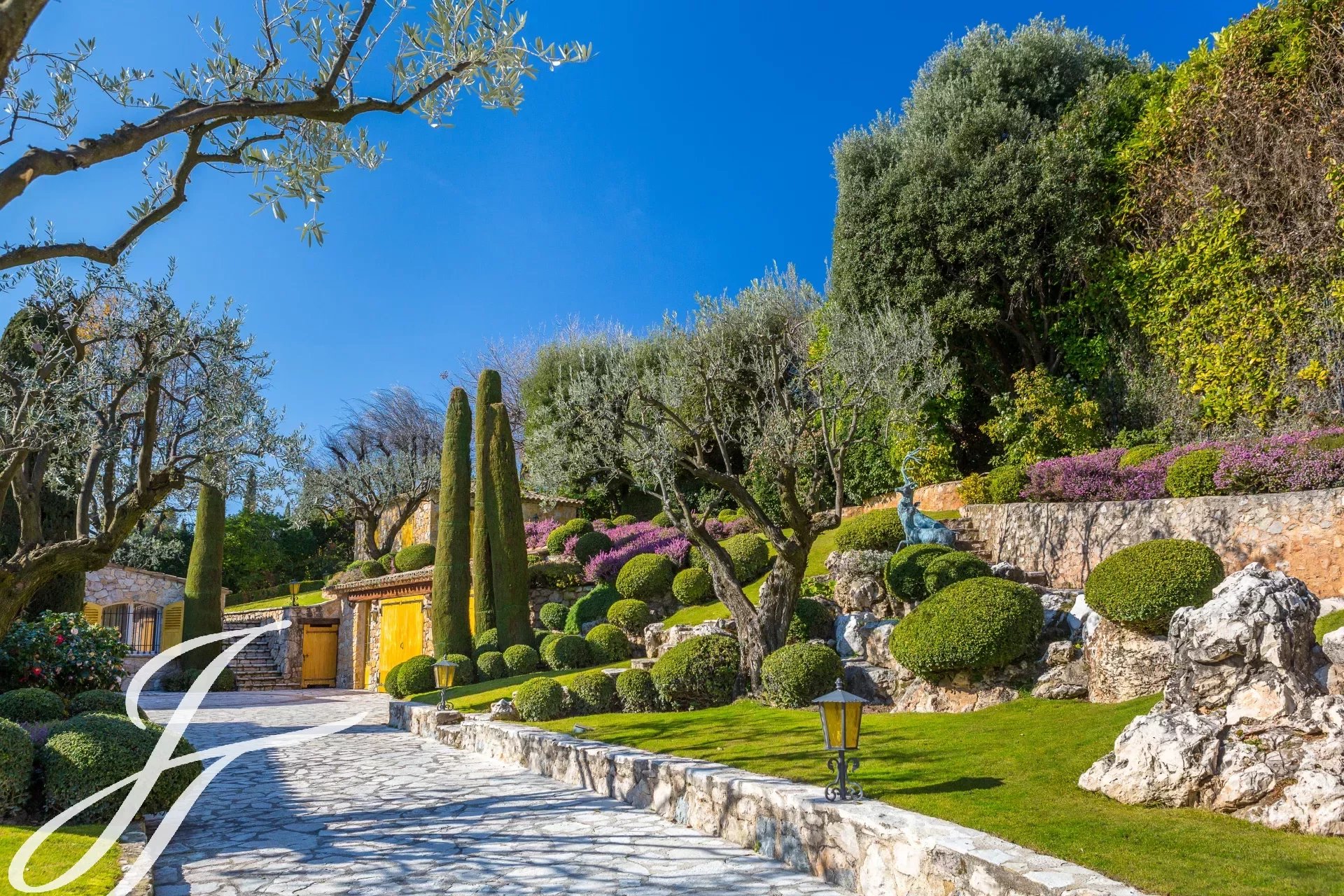 Роскошный каменный особняк в тихом и спокойном месте, с великолепным видом на море и деревню Сен-Поль-де-Ванс, с великолепным ландшафтным садом.