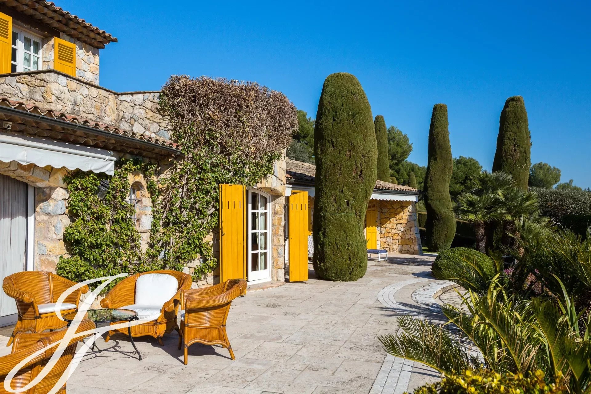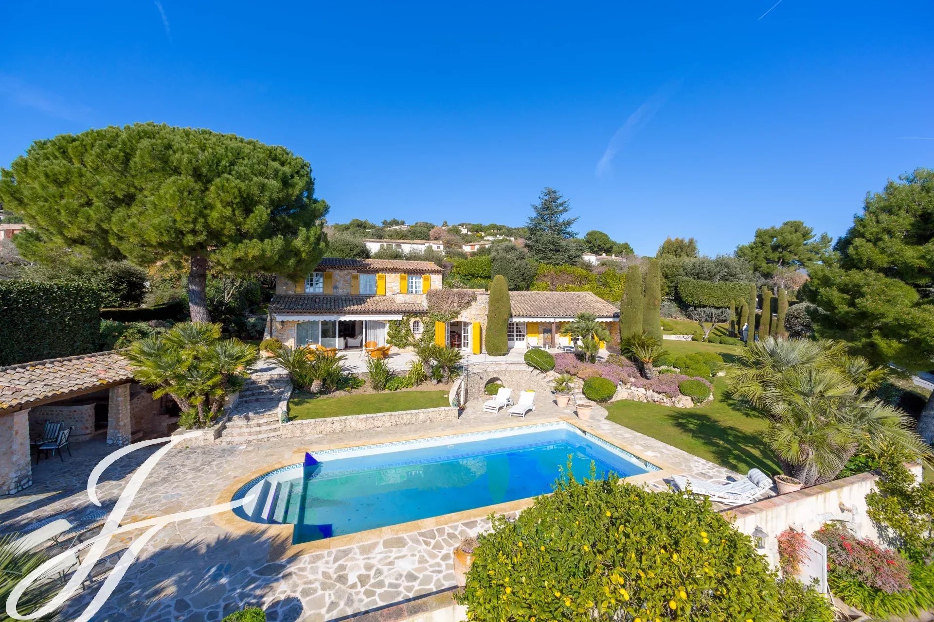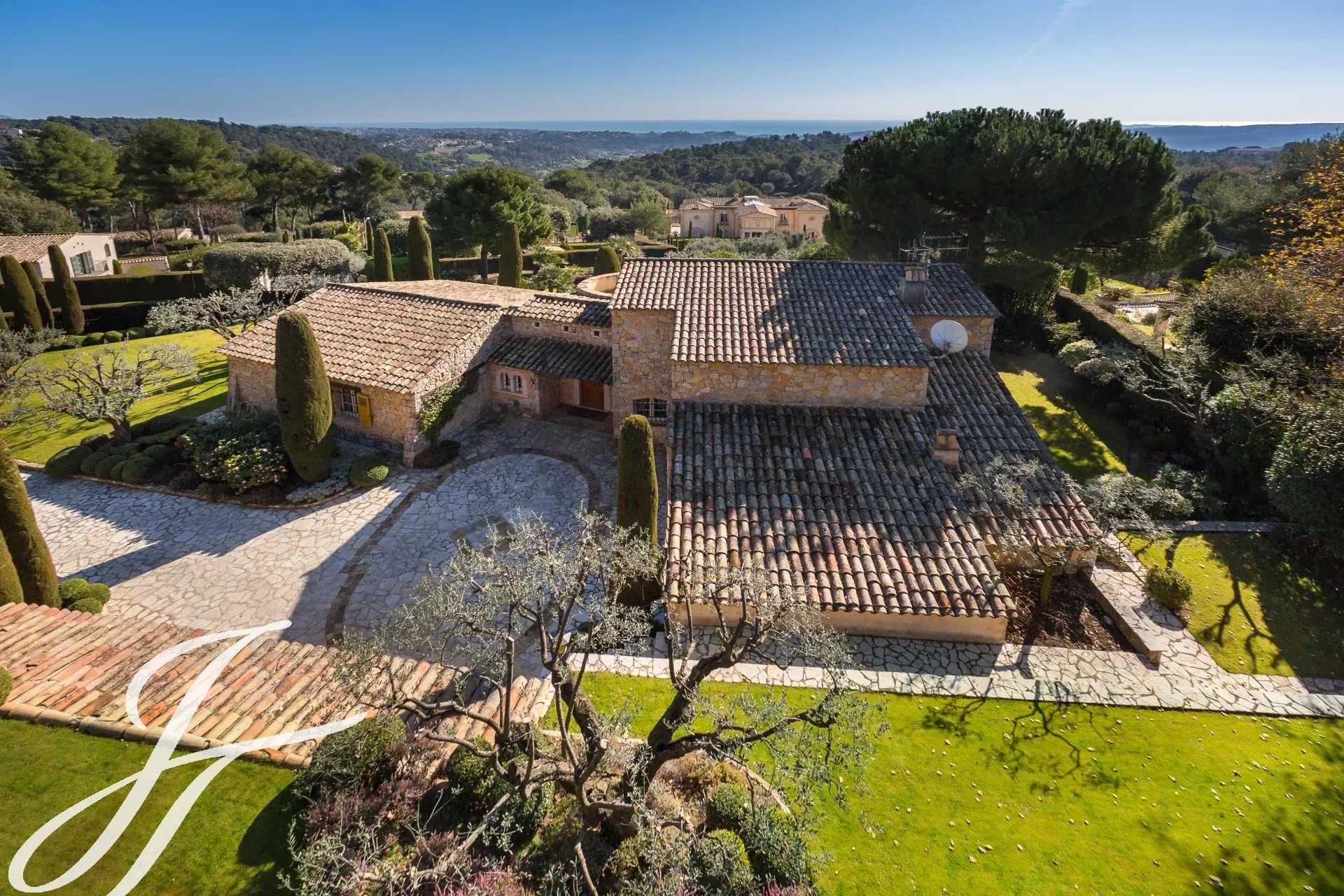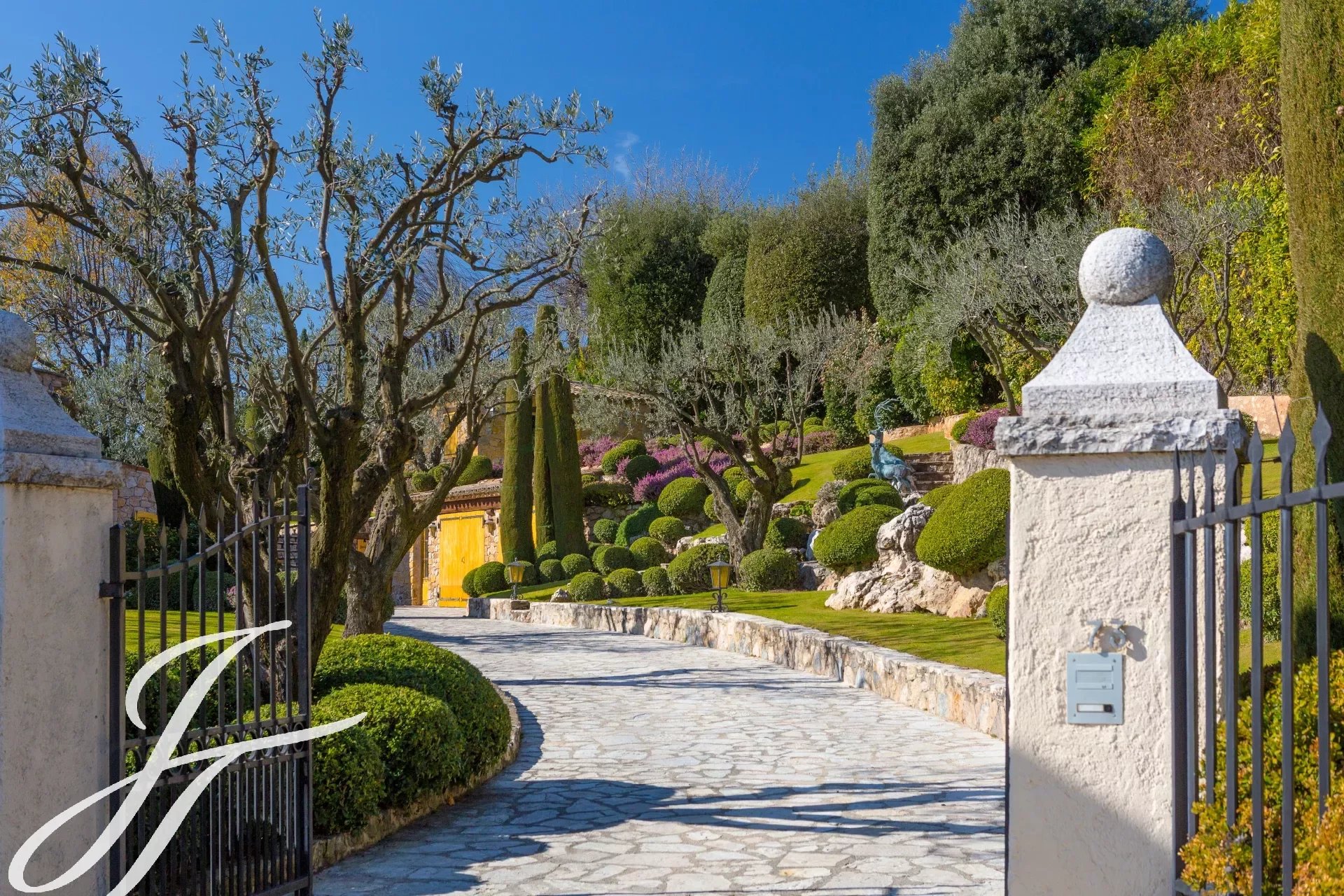 Роскошный каменный особняк в тихом и спокойном месте, с великолепным видом на море и деревню Сен-Поль-де-Ванс, с великолепным ландшафтным садом.