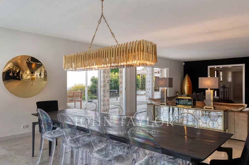 Роскошная вилла площадью 300 м2 расположена в тихом месте на холмах над Турретт-сюр-Луп, в двух шагах от старой деревни и пешеходных троп. Великолепные виды на море и окружающие холмы.