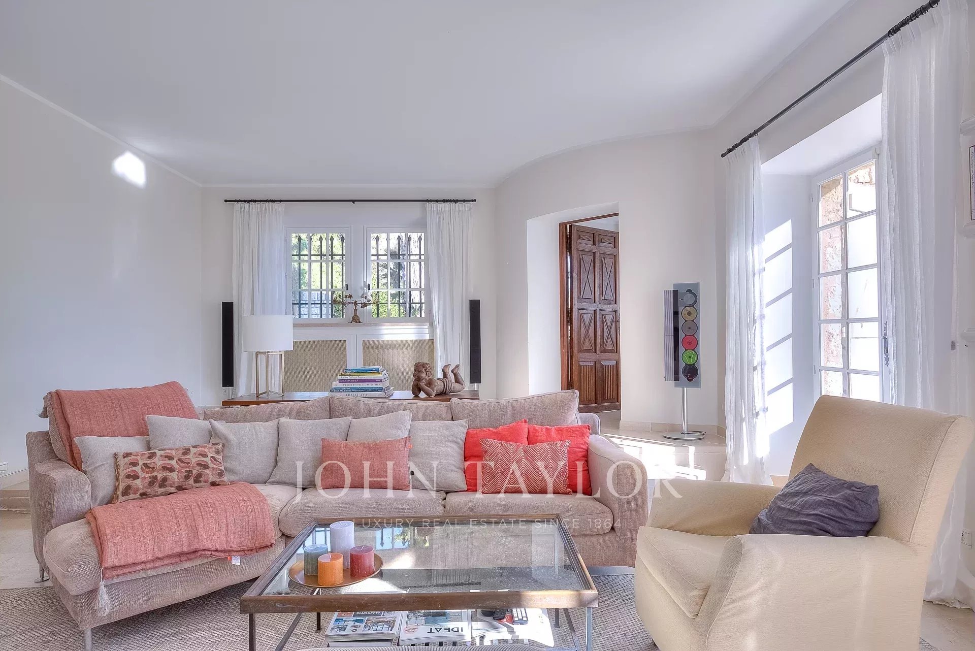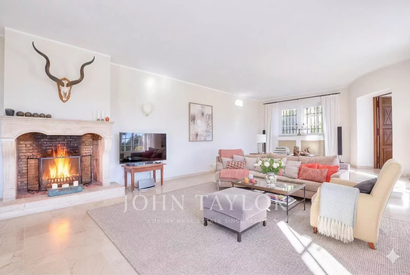 - Большая гостиная (90 м²) с камином, четырьмя французскими окнами, выходящими в сад, и кабинетом