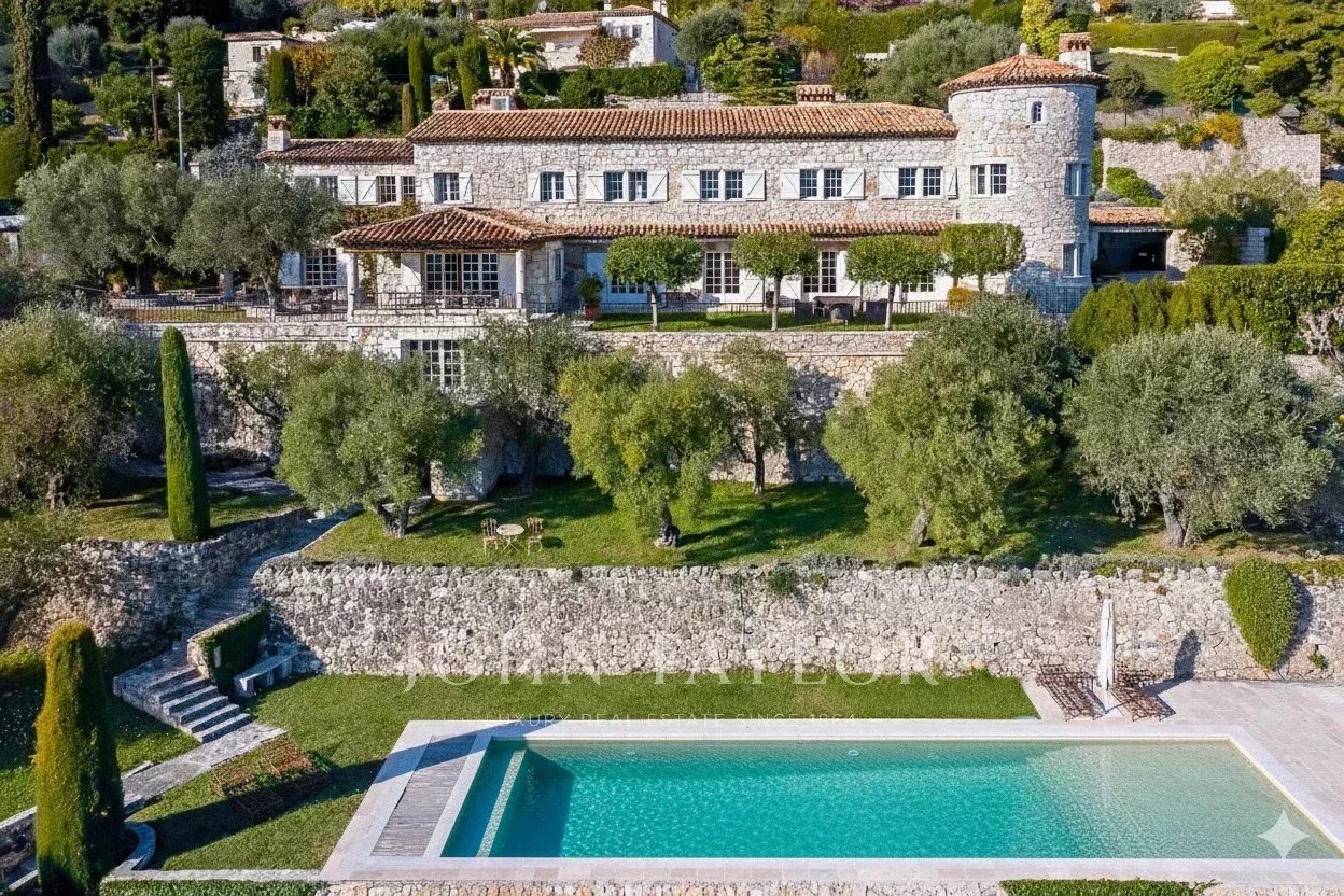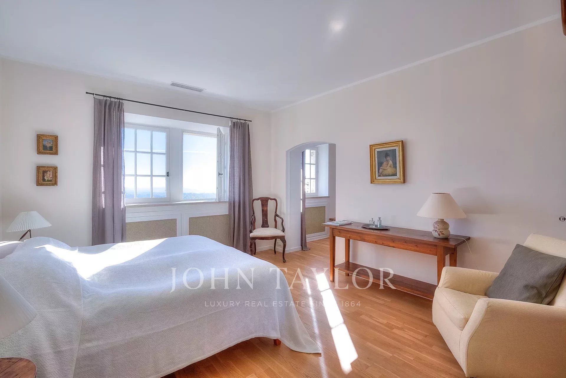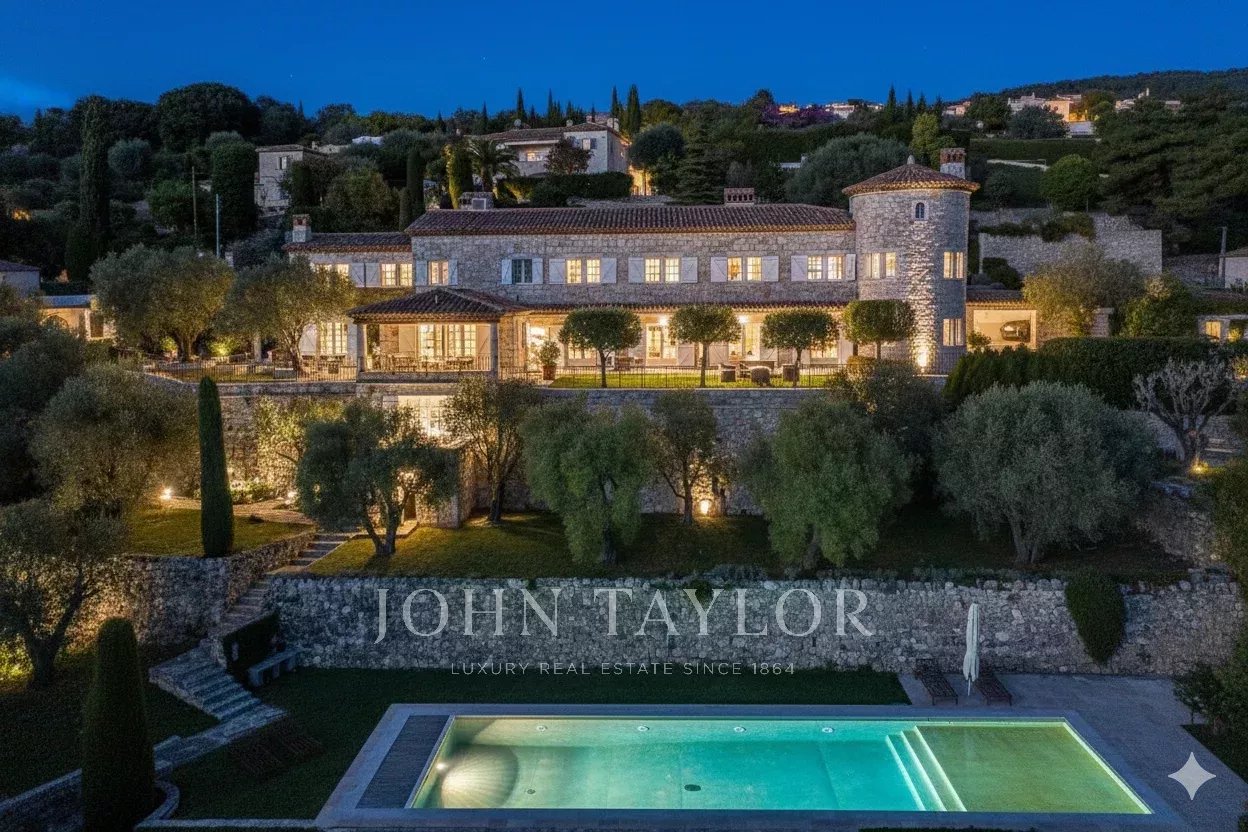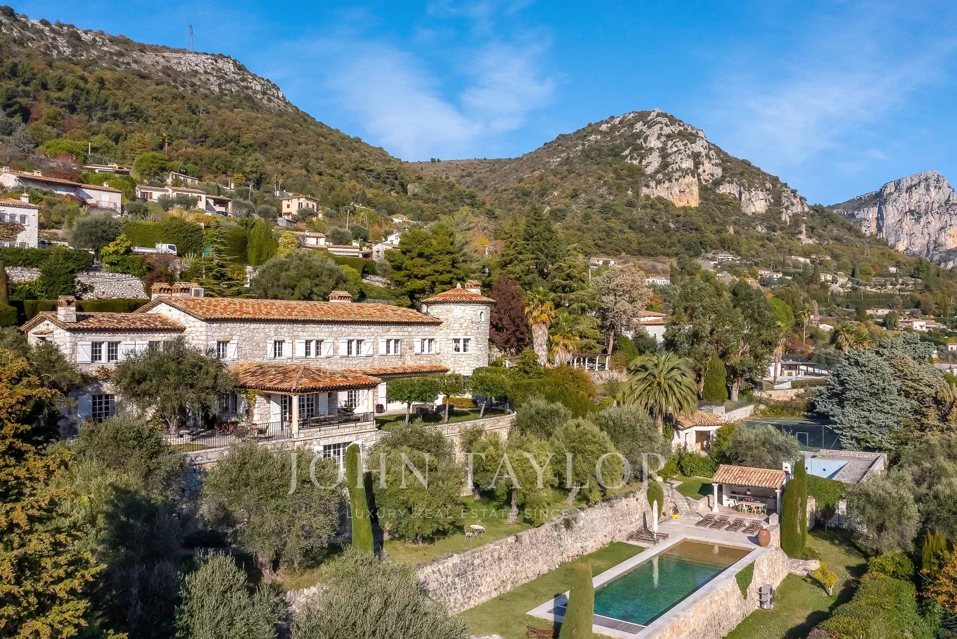 Этот великолепный особняк площадью 600 м², из которого открывается захватывающий вид на Средиземное море, был полностью отремонтирован с особым шармом, имеет красивую каменную башню и занимает доминирующее положение на холмах недалеко от Ванса.
