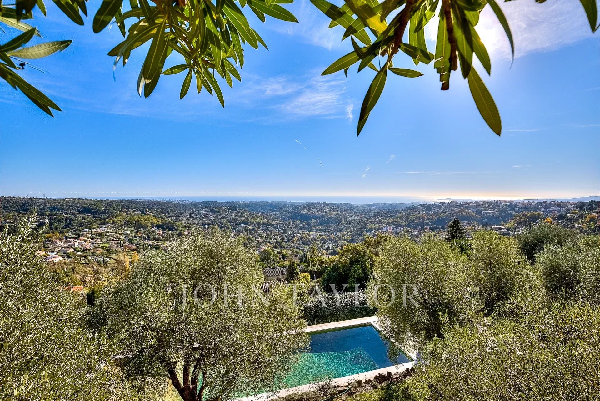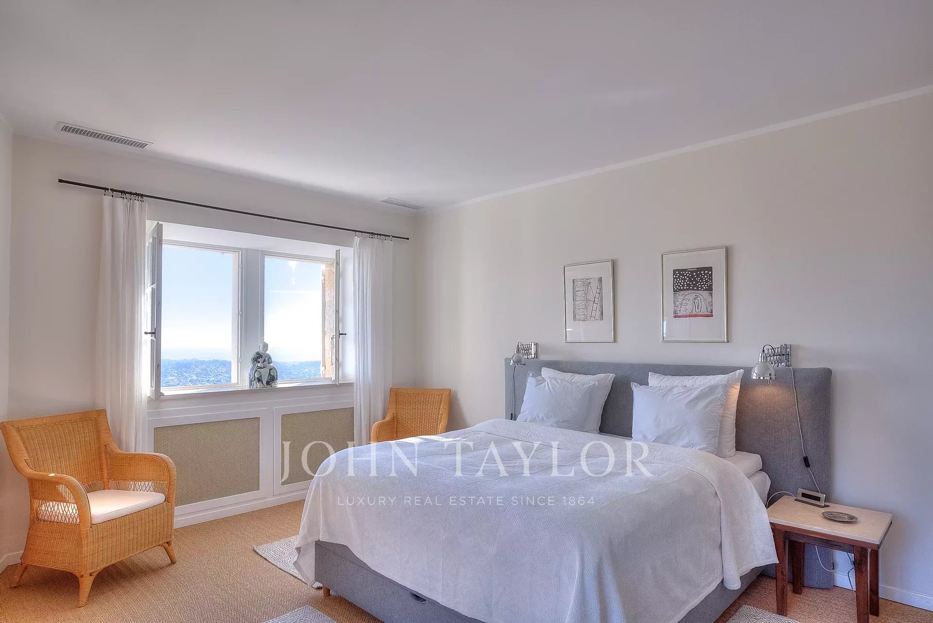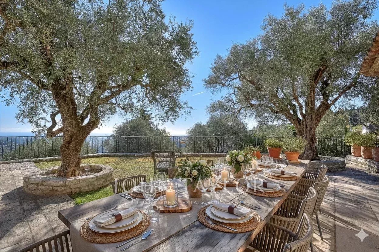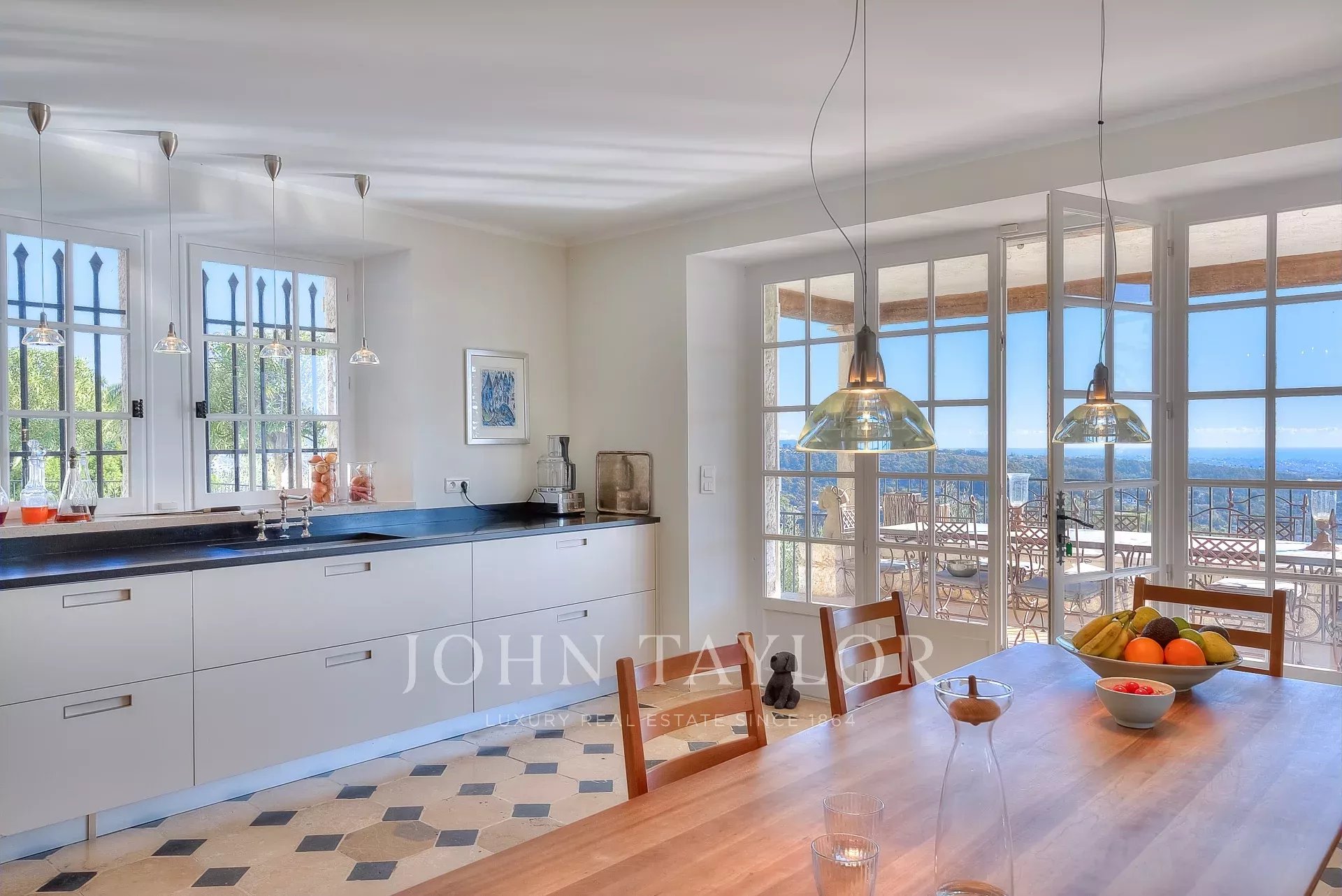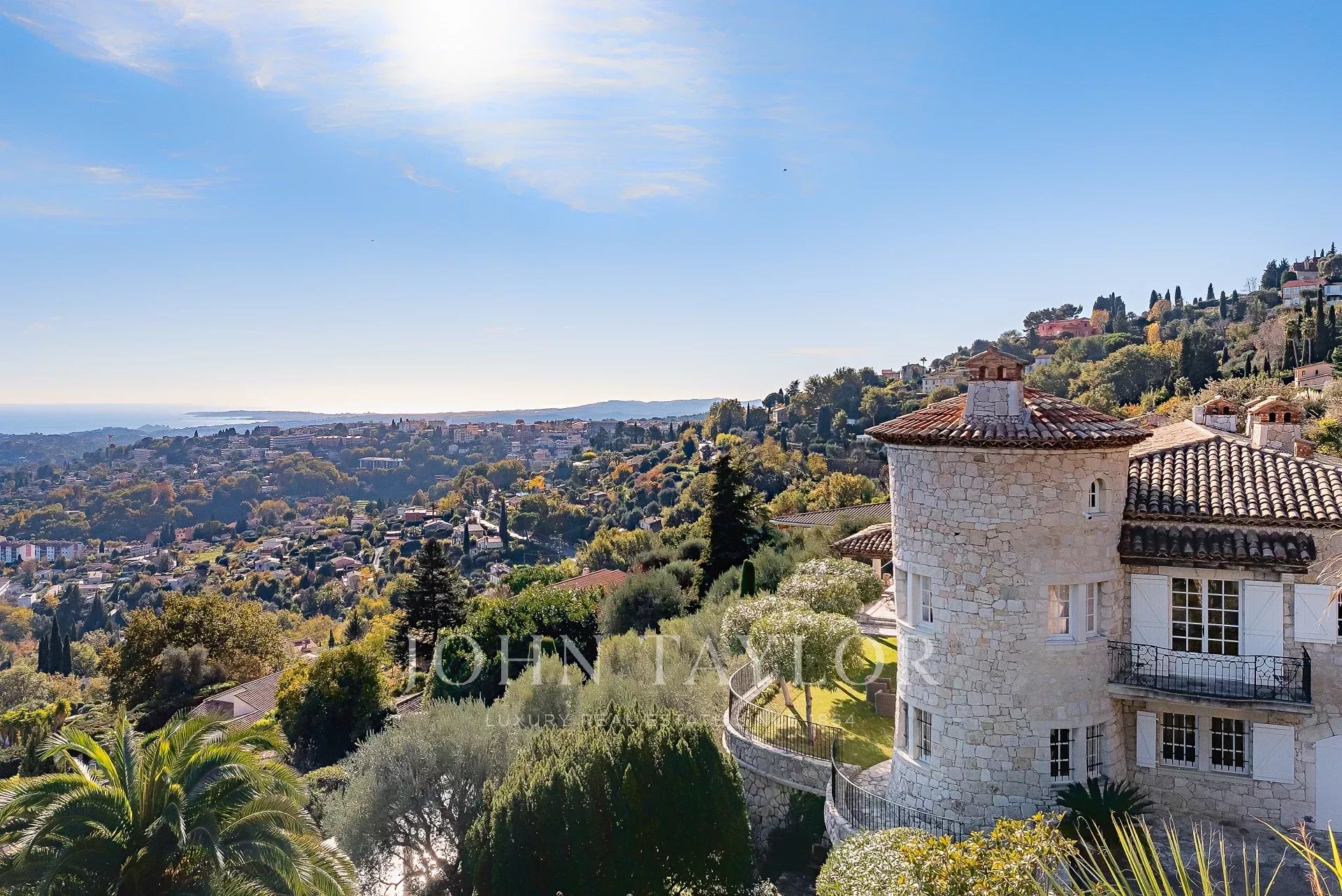 Этот великолепный особняк площадью 600 м², из которого открывается захватывающий вид на Средиземное море, был полностью отремонтирован с особым шармом, имеет красивую каменную башню и занимает доминирующее положение на холмах недалеко от Ванса.
