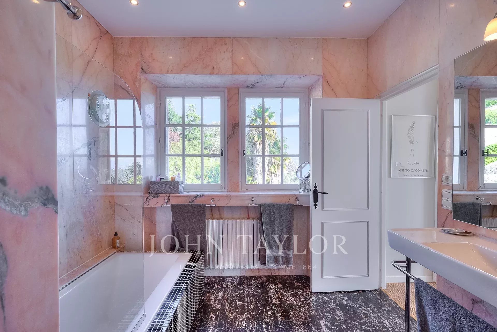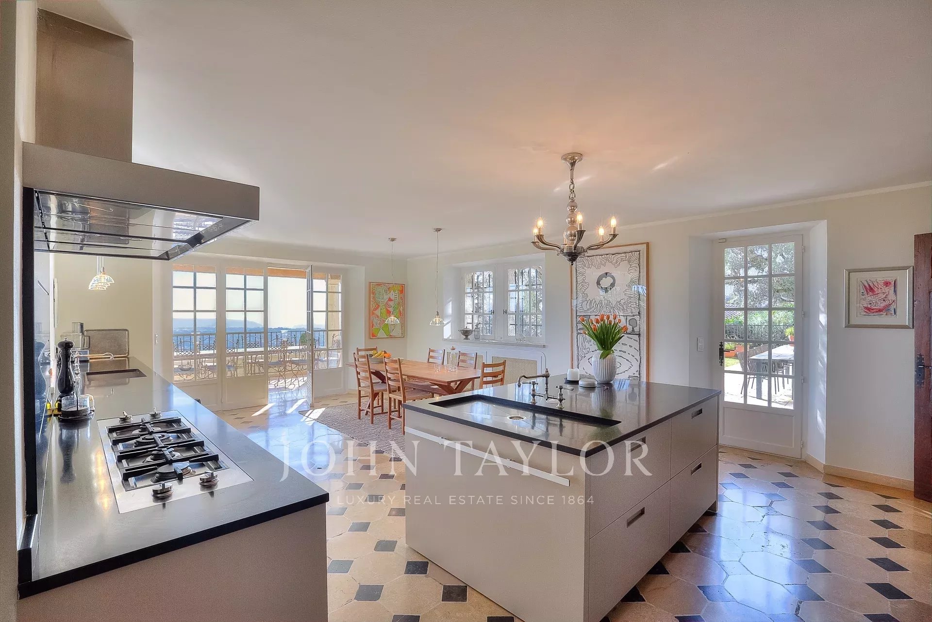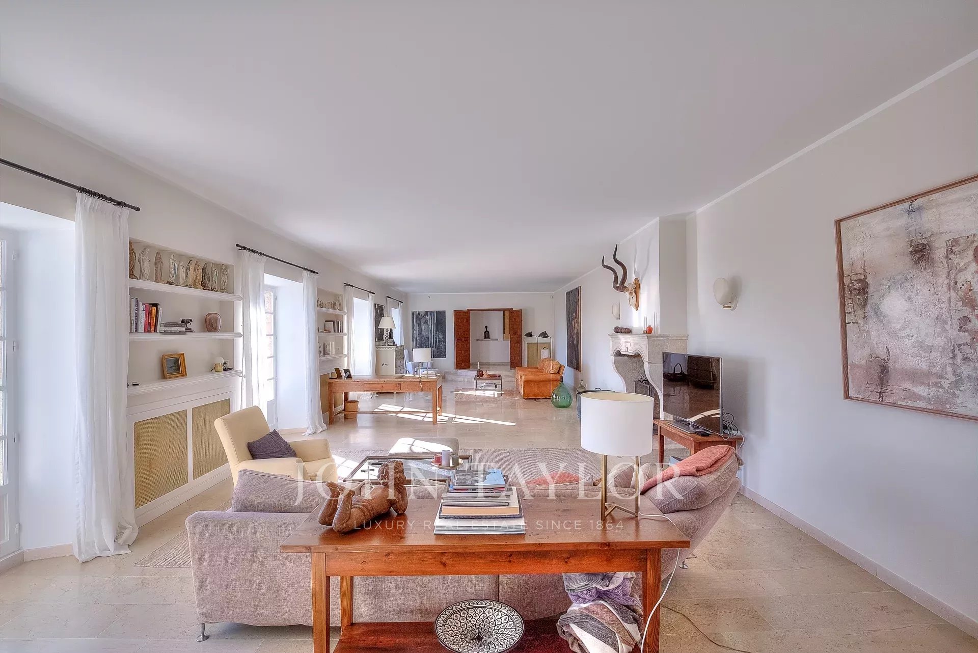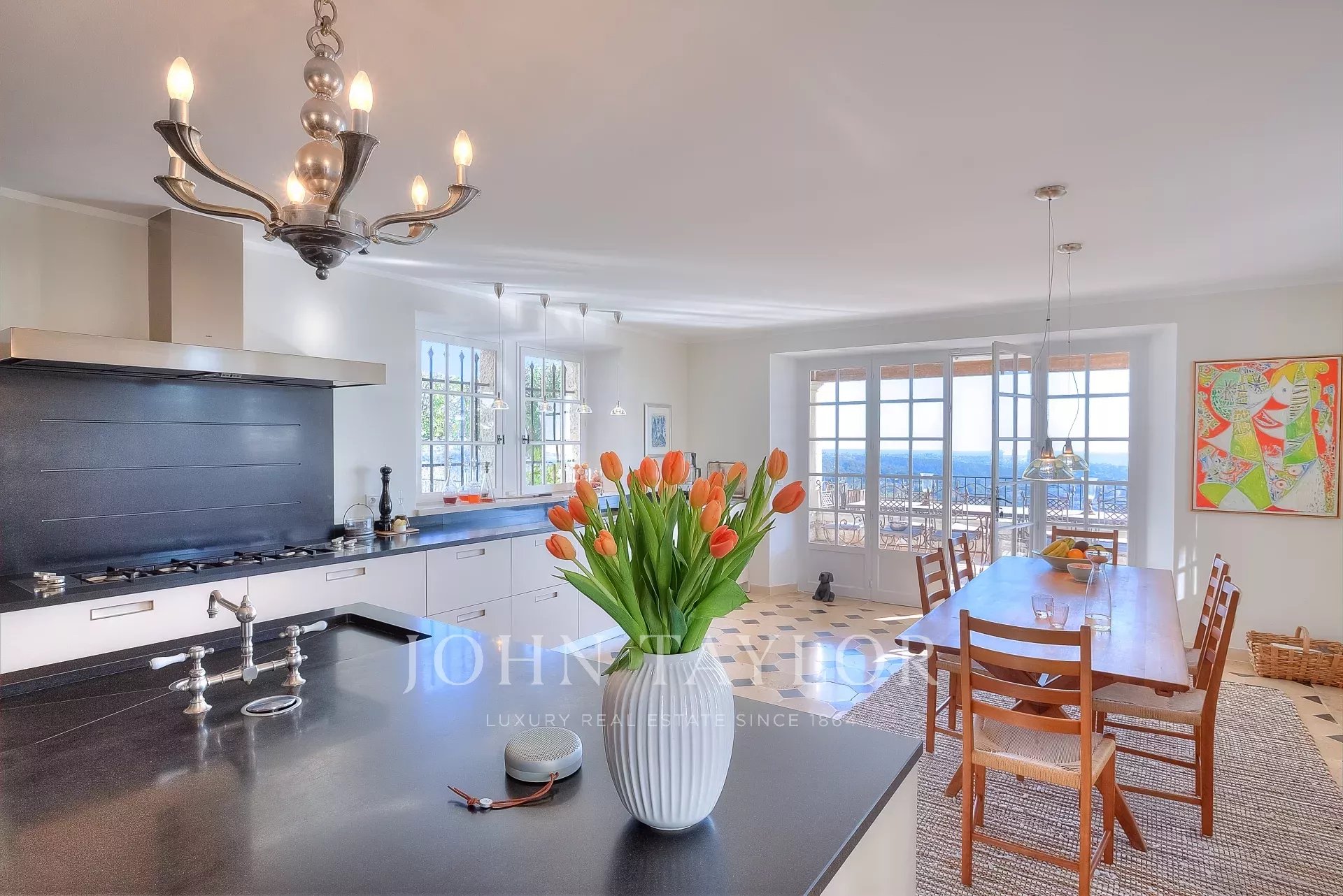 Этот великолепный особняк площадью 600 м², из которого открывается захватывающий вид на Средиземное море, был полностью отремонтирован с особым шармом, имеет красивую каменную башню и занимает доминирующее положение на холмах недалеко от Ванса.