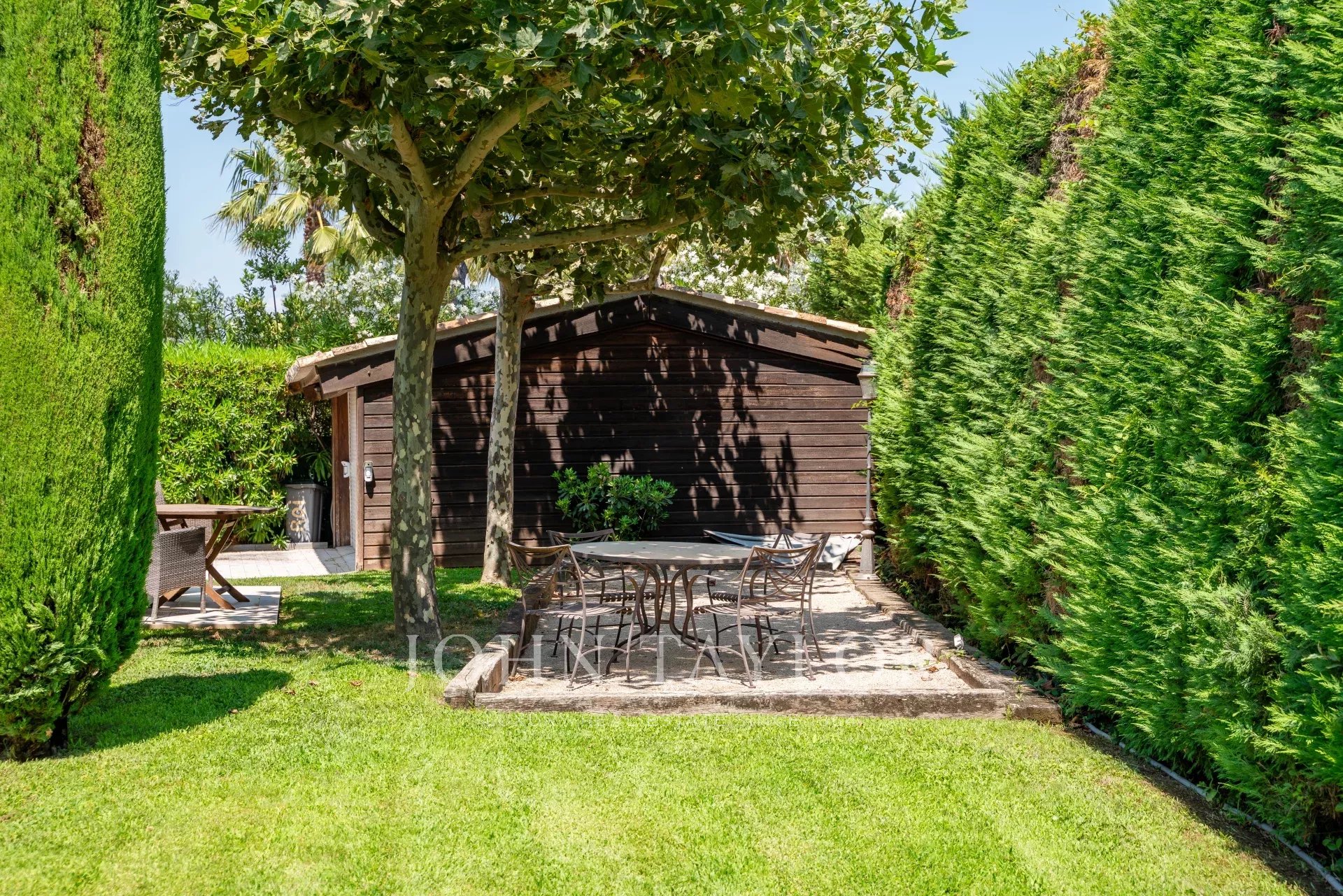 В саду есть бассейн, зона для барбекю и площадка для игры в петанк. Этот сад идеально подходит для детей.