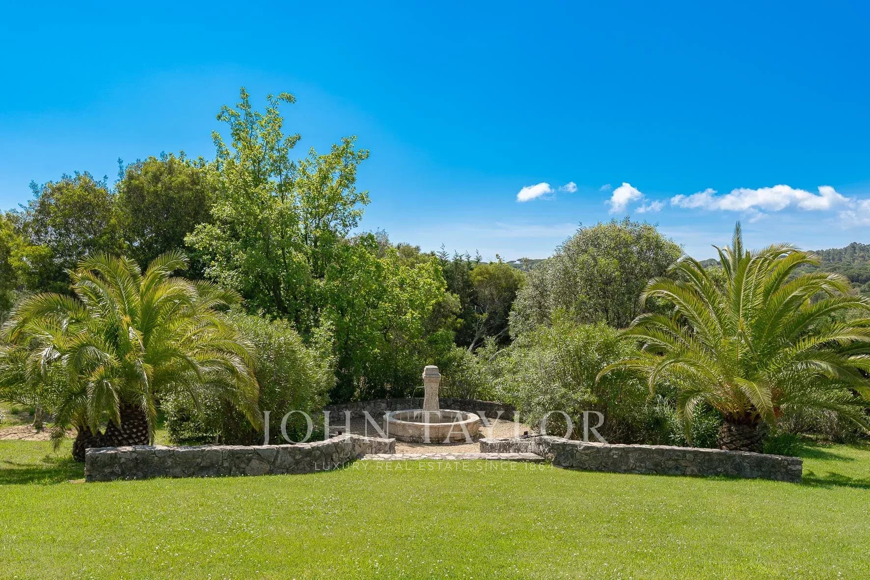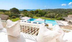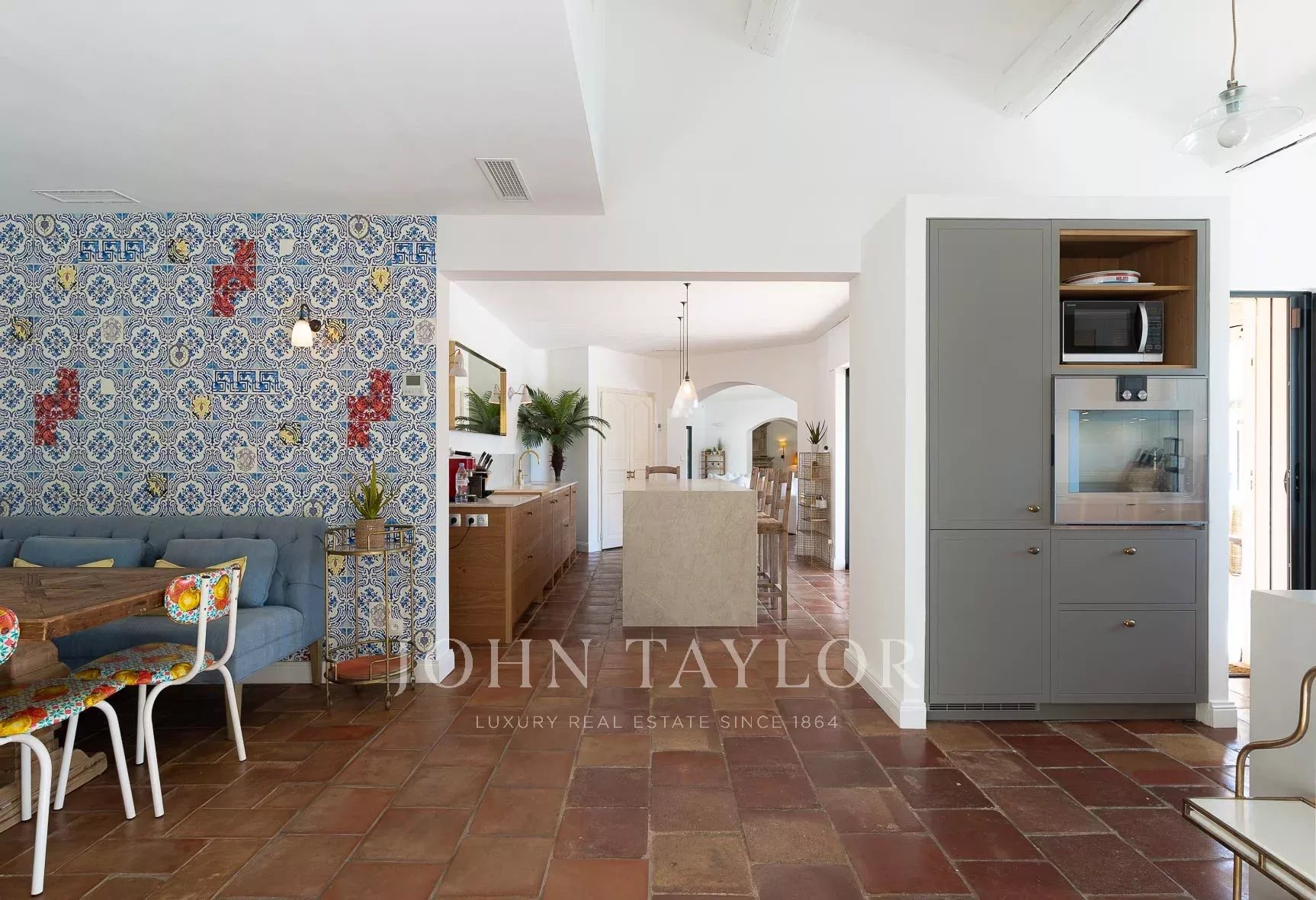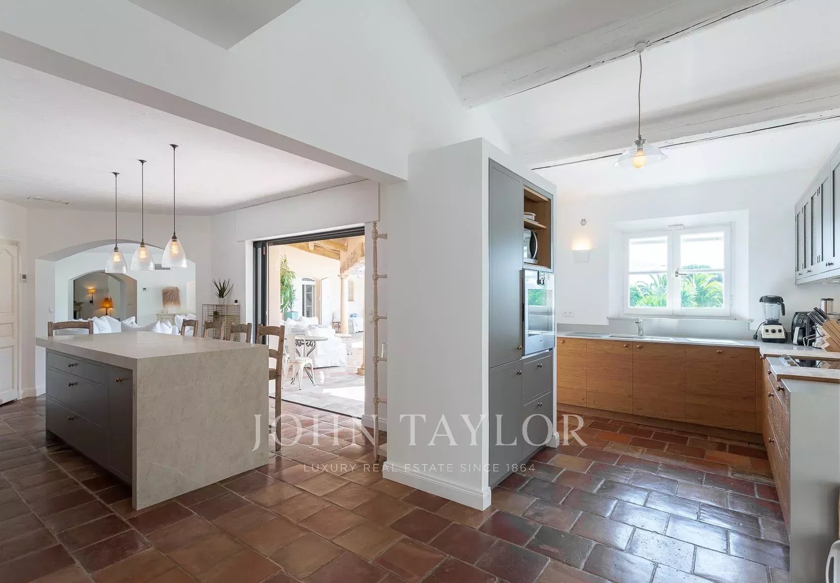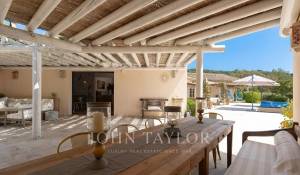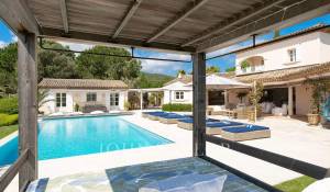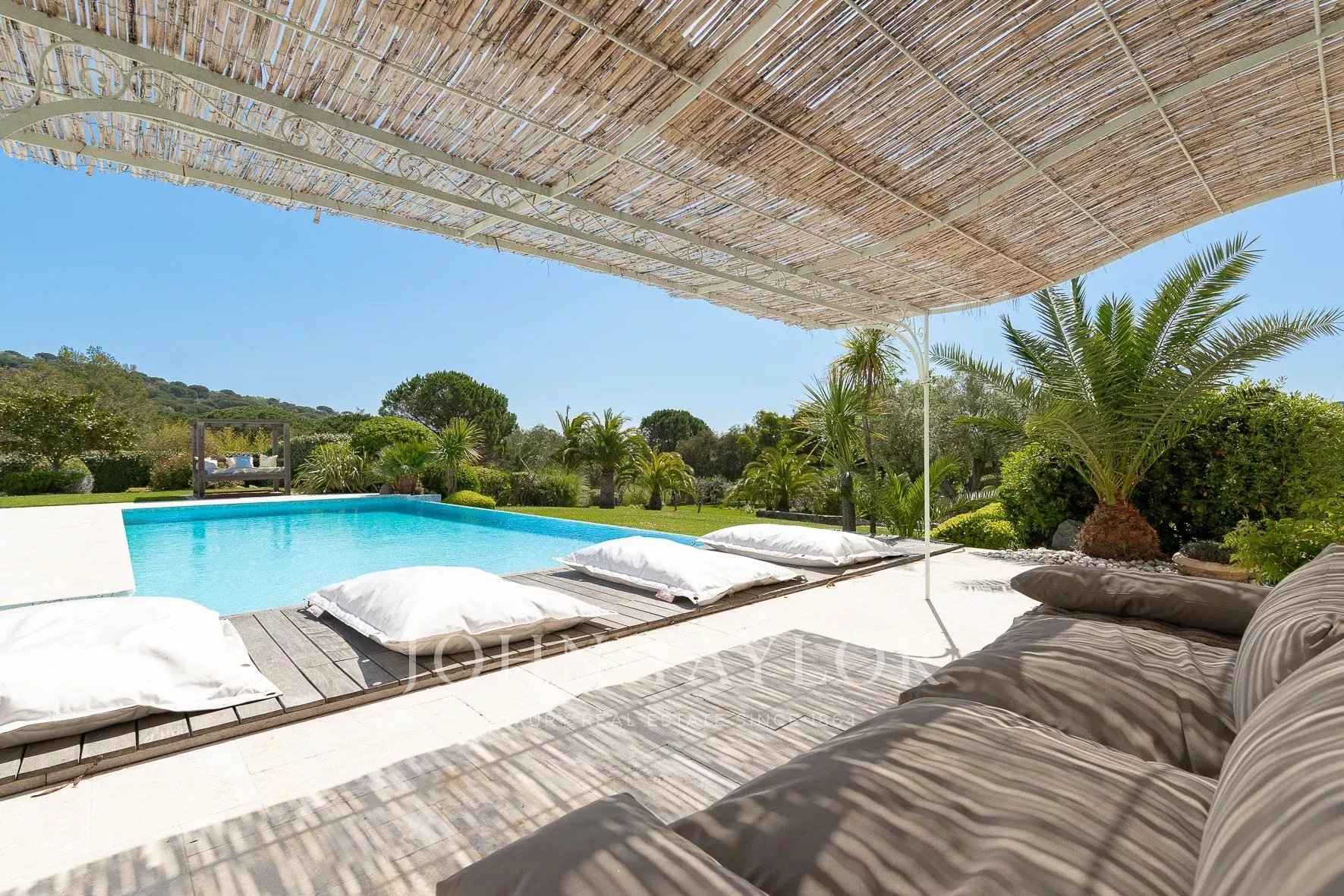 Кондиционер, многочисленные крытые террасы, барбекю, сигнализация, бассейн с подогревом и покрытием, площадка для игры в петанк и гараж.