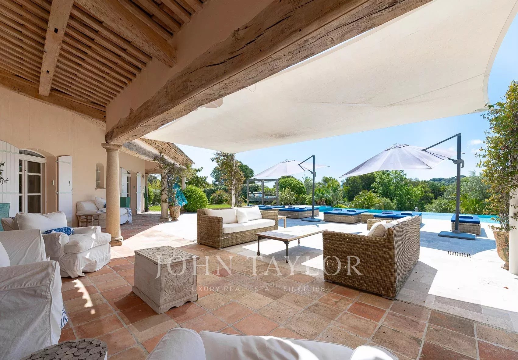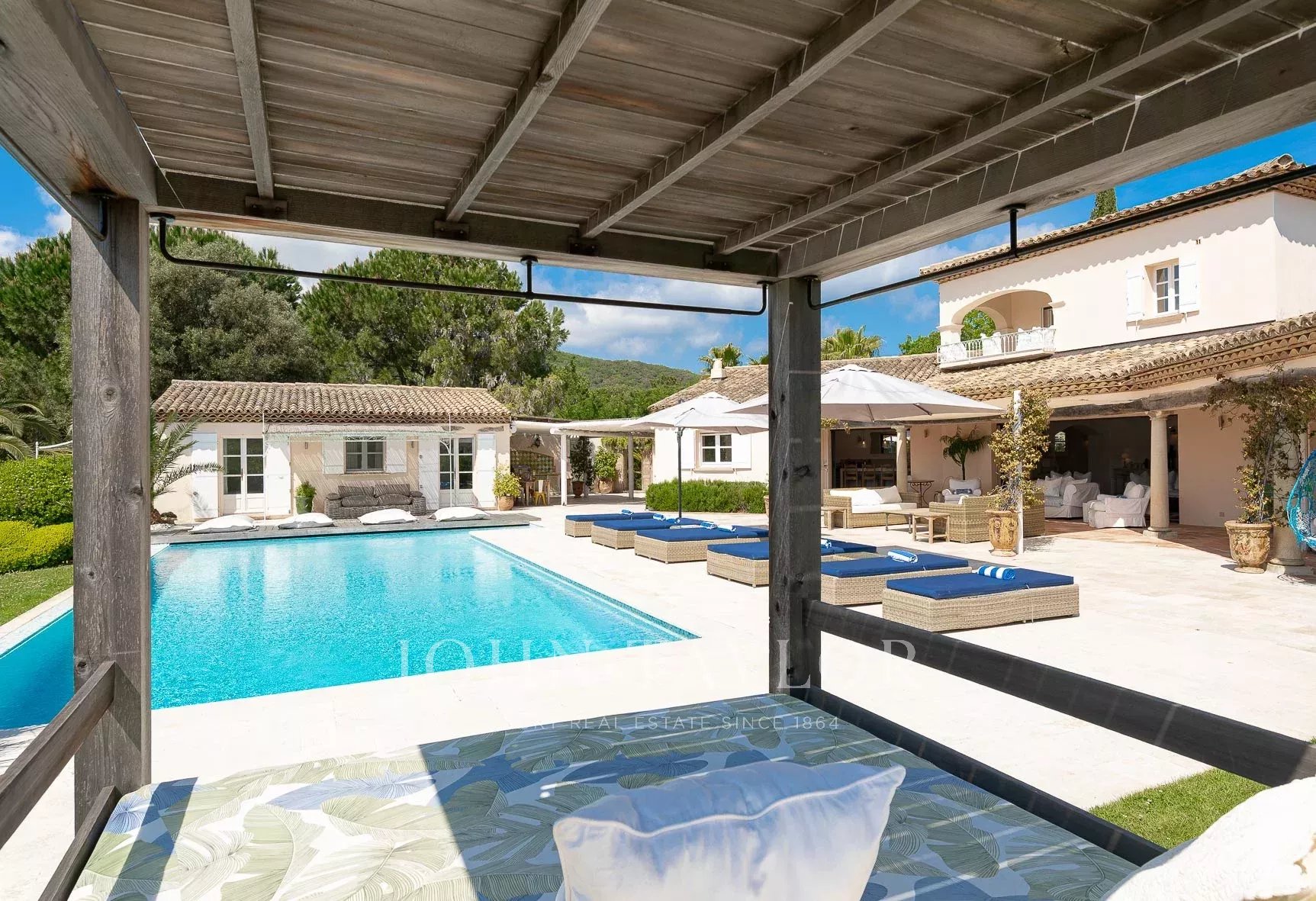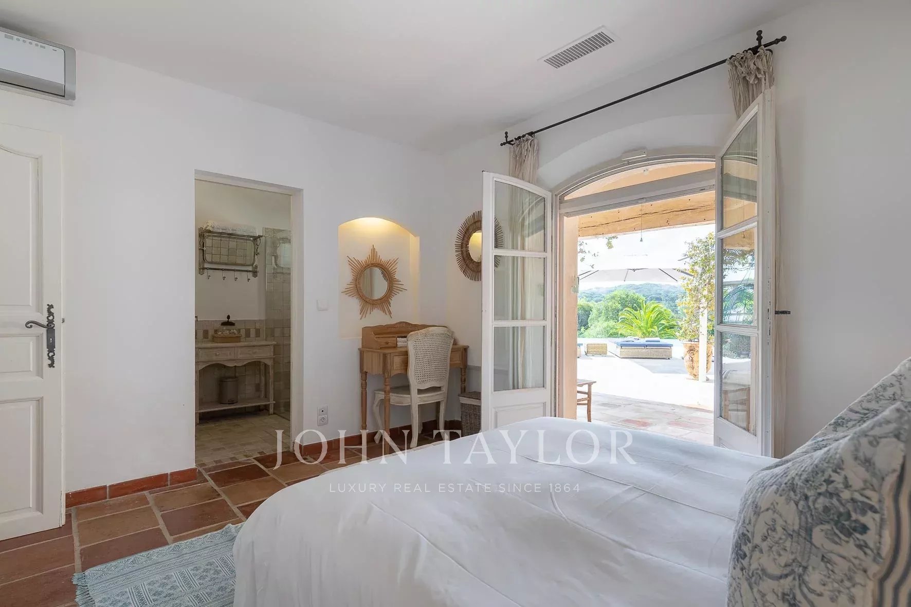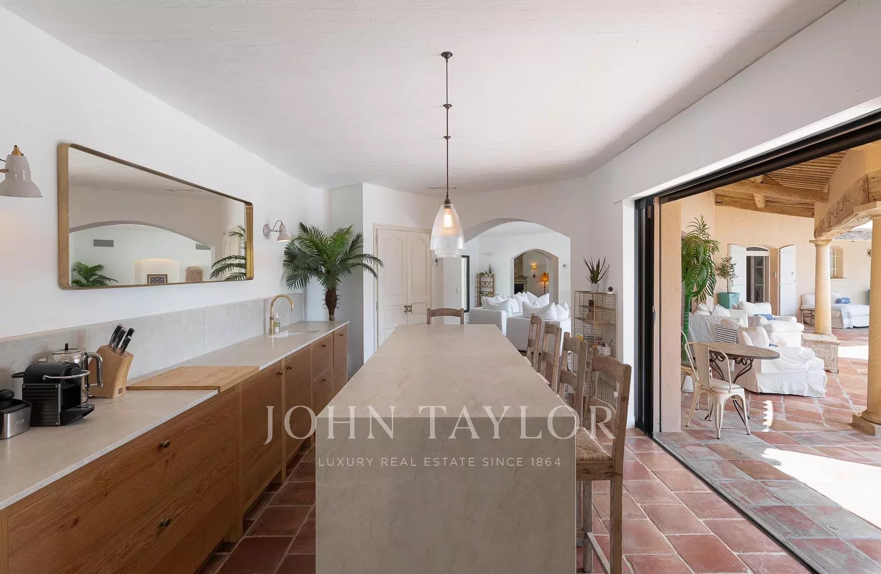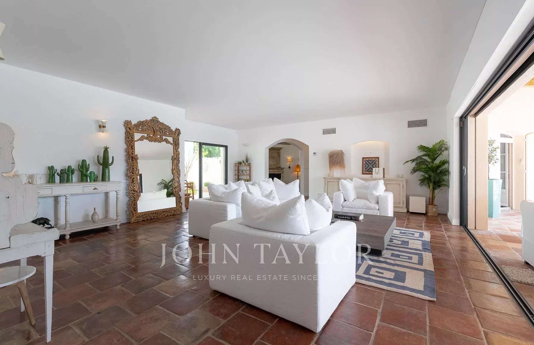 Кондиционер, многочисленные крытые террасы, барбекю, сигнализация, бассейн с подогревом и покрытием, площадка для игры в петанк и гараж.