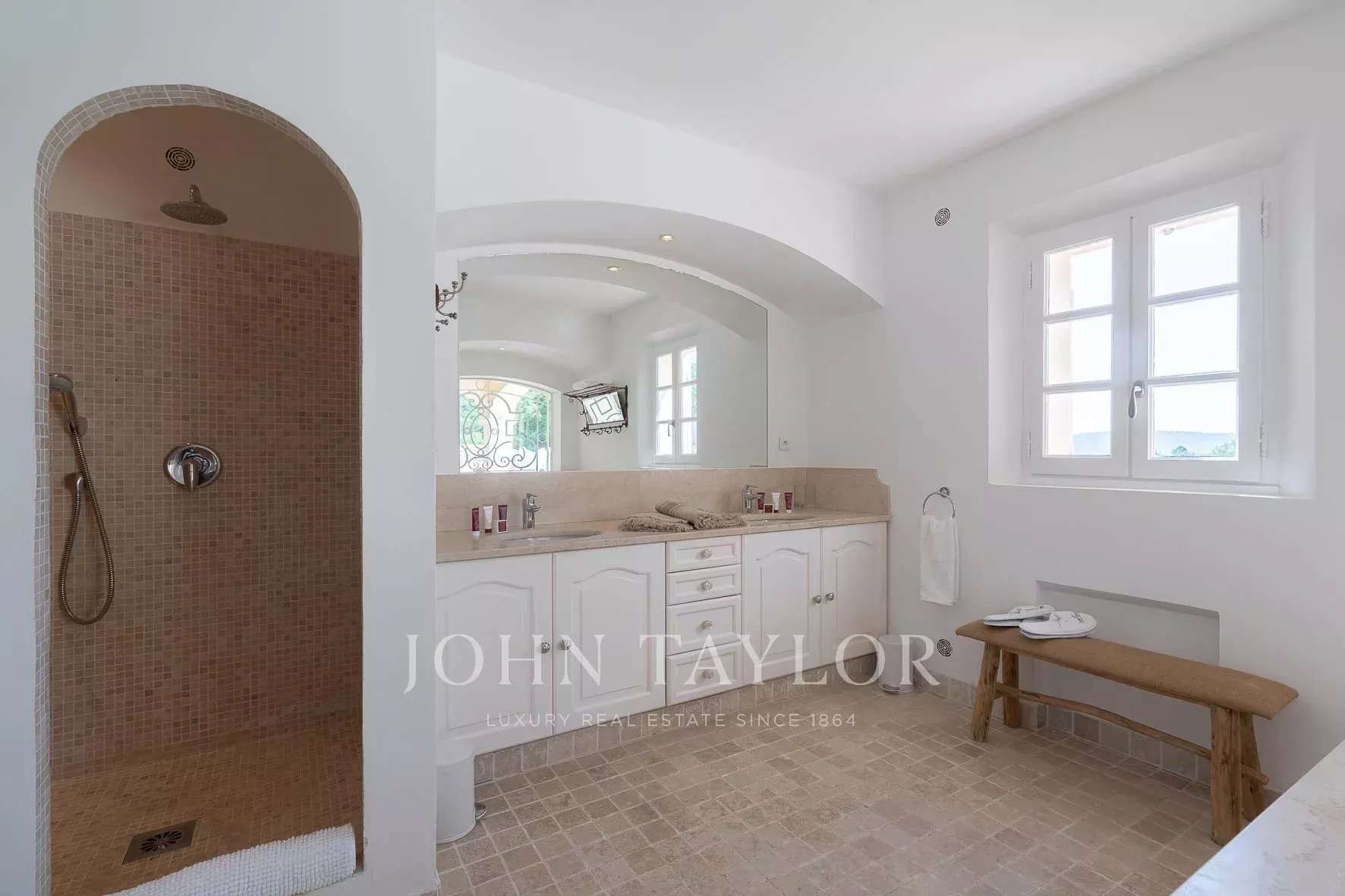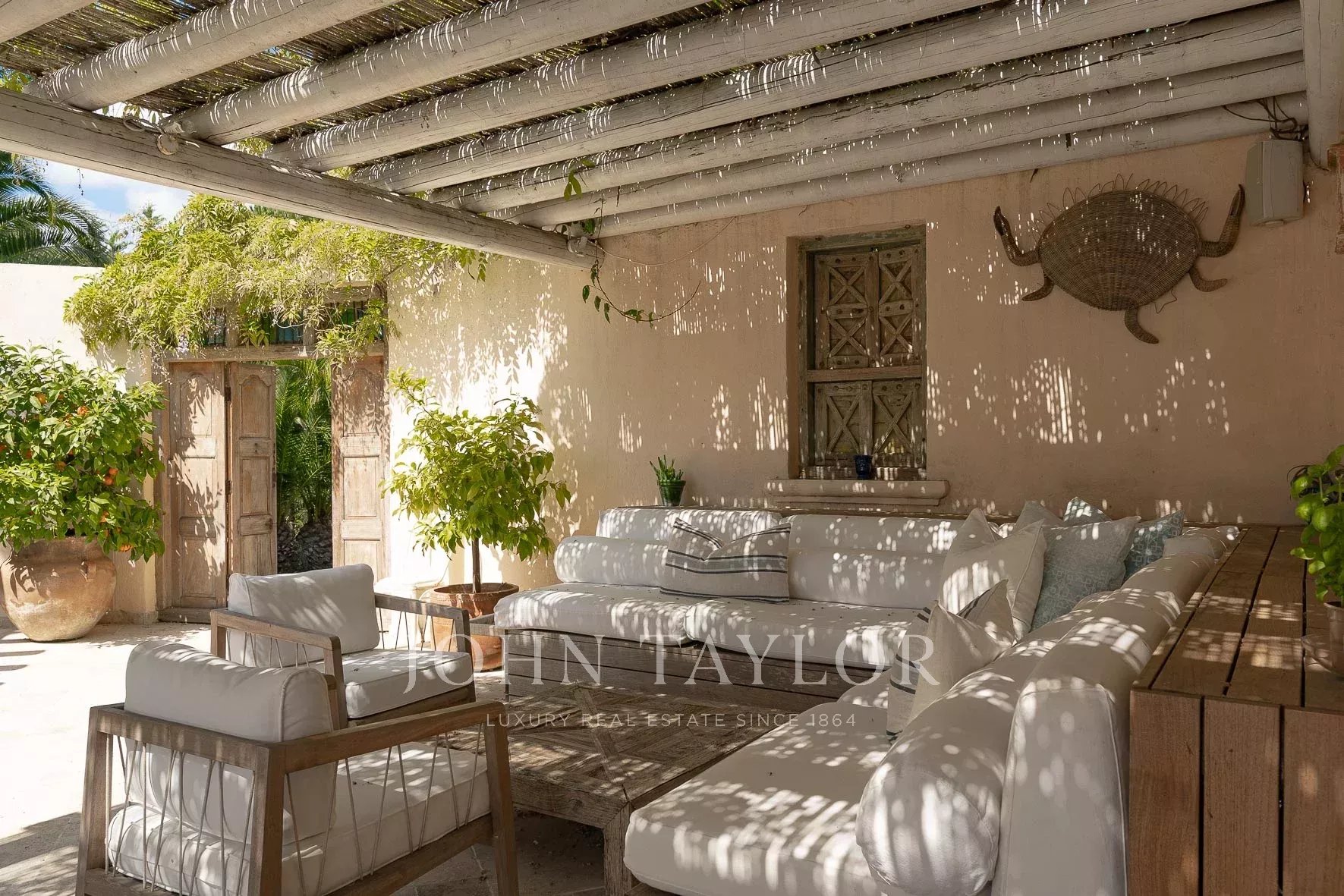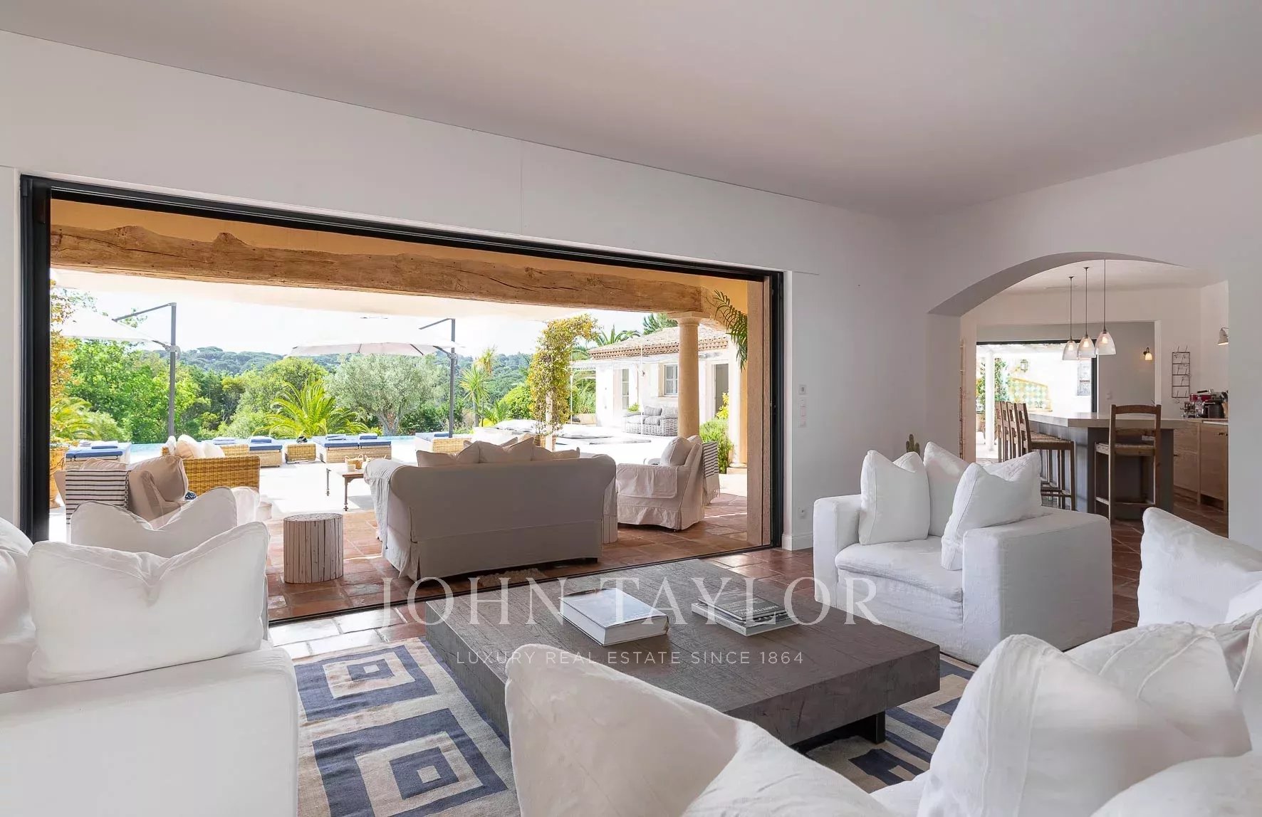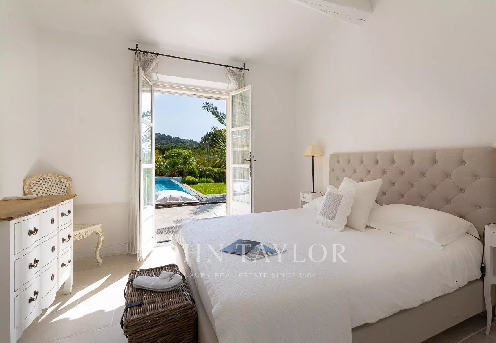 Кондиционер, многочисленные крытые террасы, барбекю, сигнализация, бассейн с подогревом и покрытием, площадка для игры в петанк и гараж.