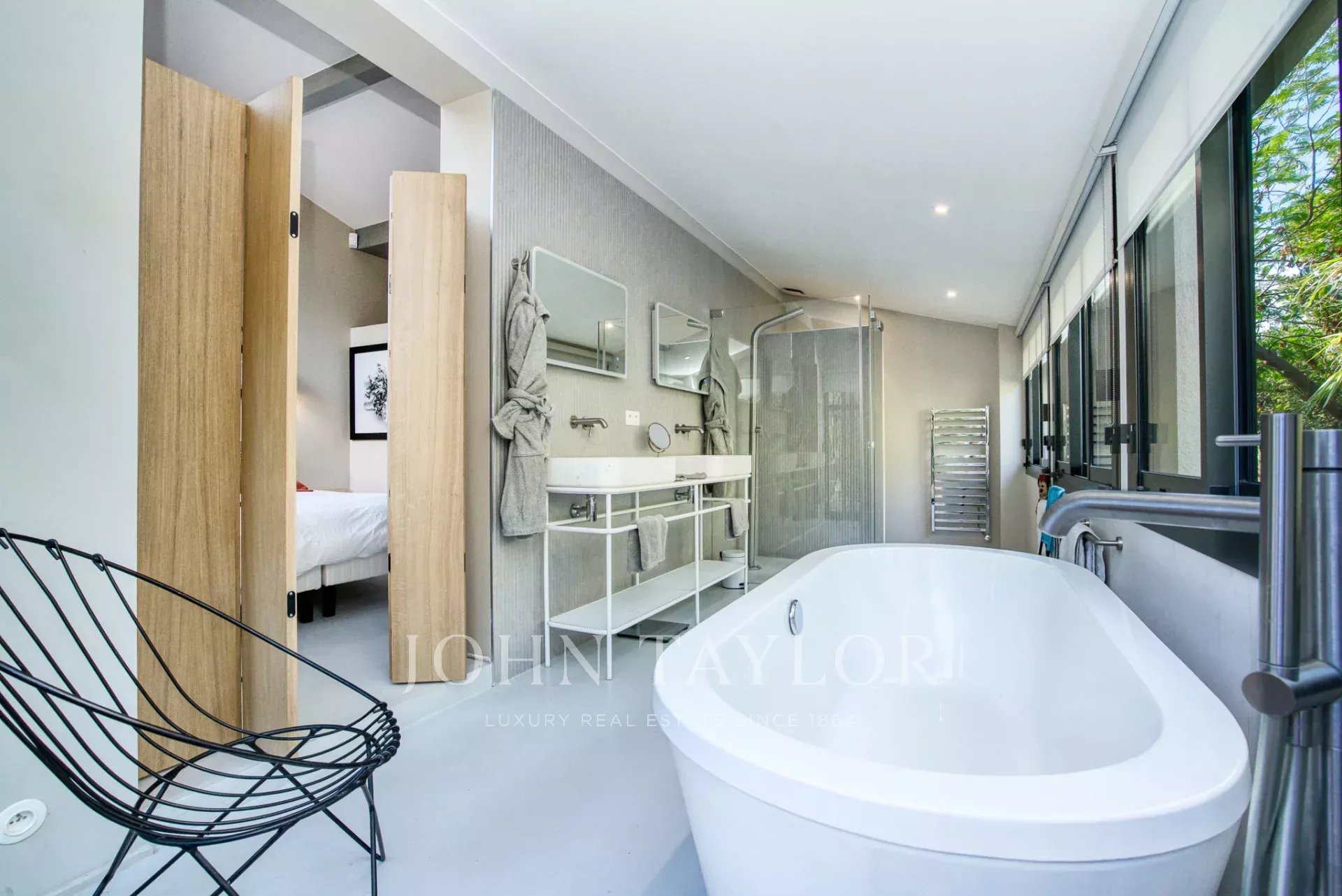 Эта тщательно отремонтированная квартира площадью 220 м2, некогда бывшая студией художника, излучает характер и очарование. Полностью кондиционированный, он может похвастаться пышным садом площадью около 5 000 м2, тщательно созданным известными садоводами Essard et Maurieres, с эксклюзивным доступом к заливу Canoubiers.