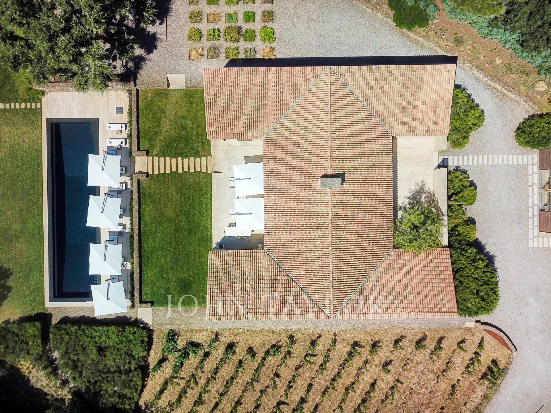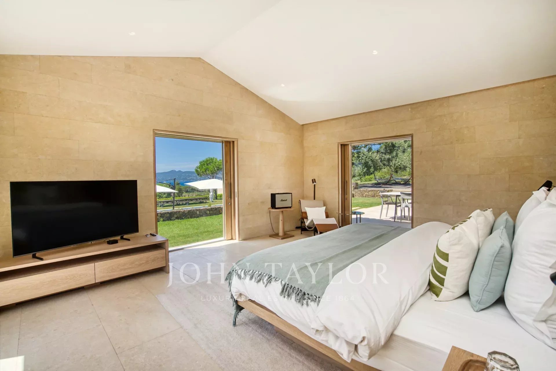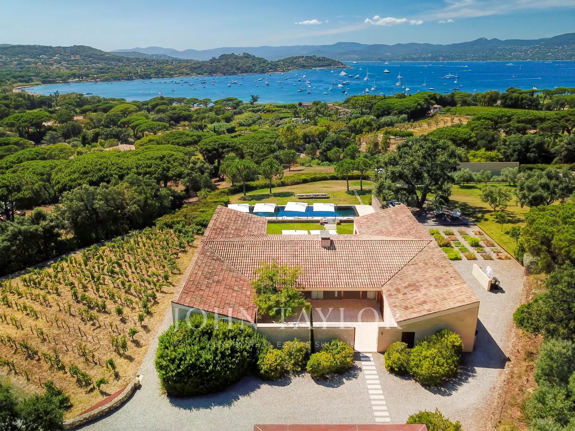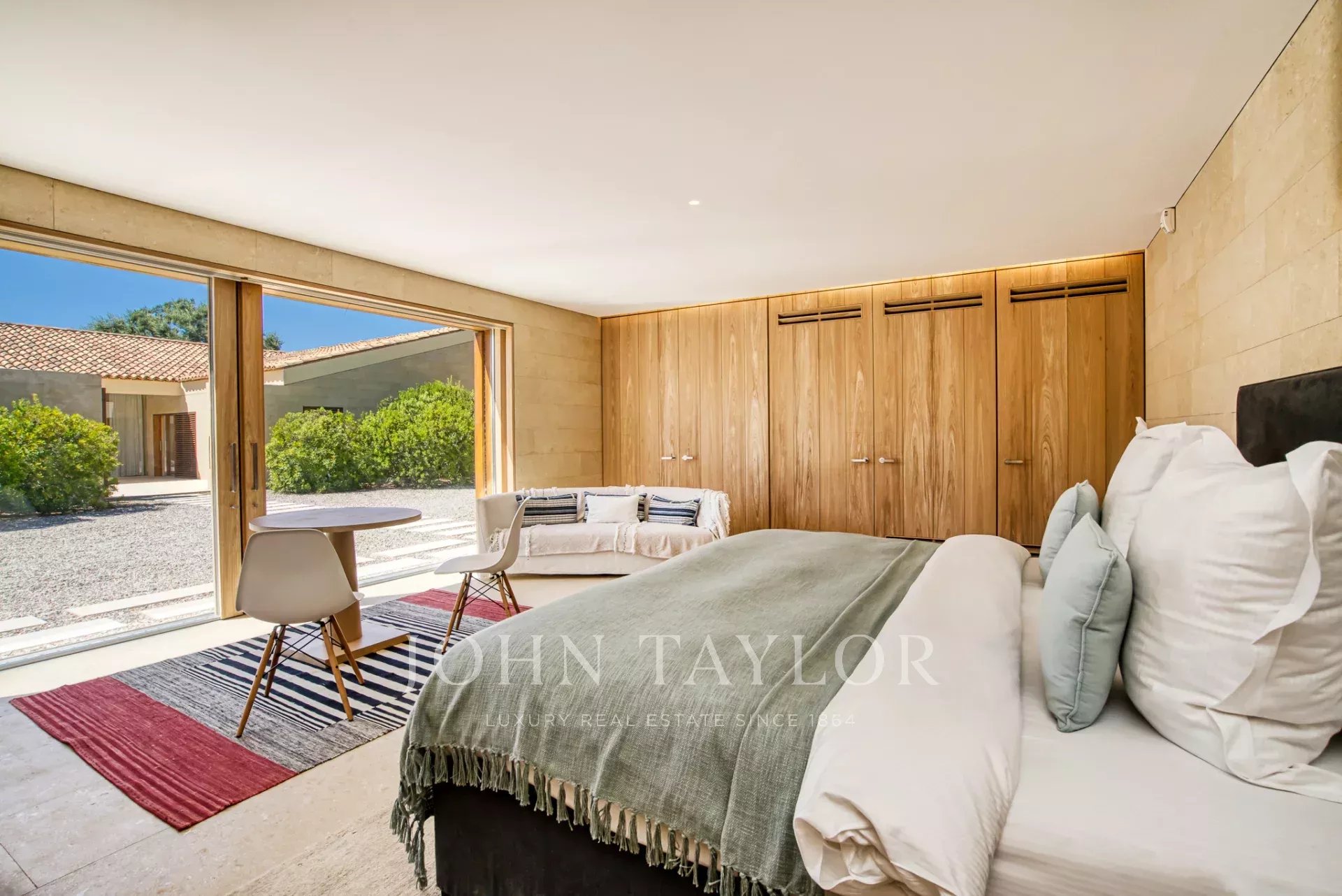 Эксклюзивное поместье, расположенное в парке Сен-Тропе, которое можно арендовать целиком (8 спален), спроектированное британским архитектором Джоном Поусоном и состоящее из следующих помещений: