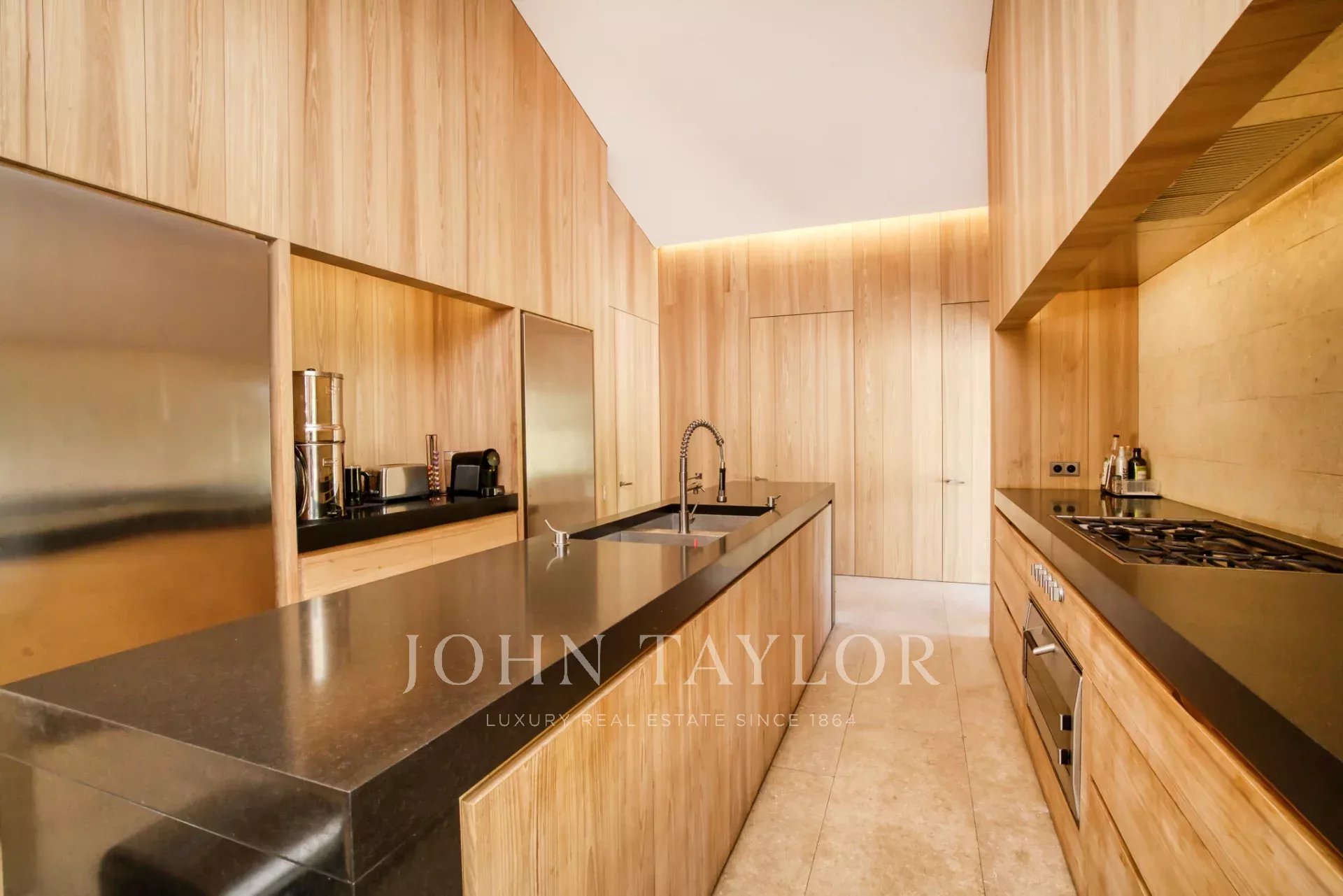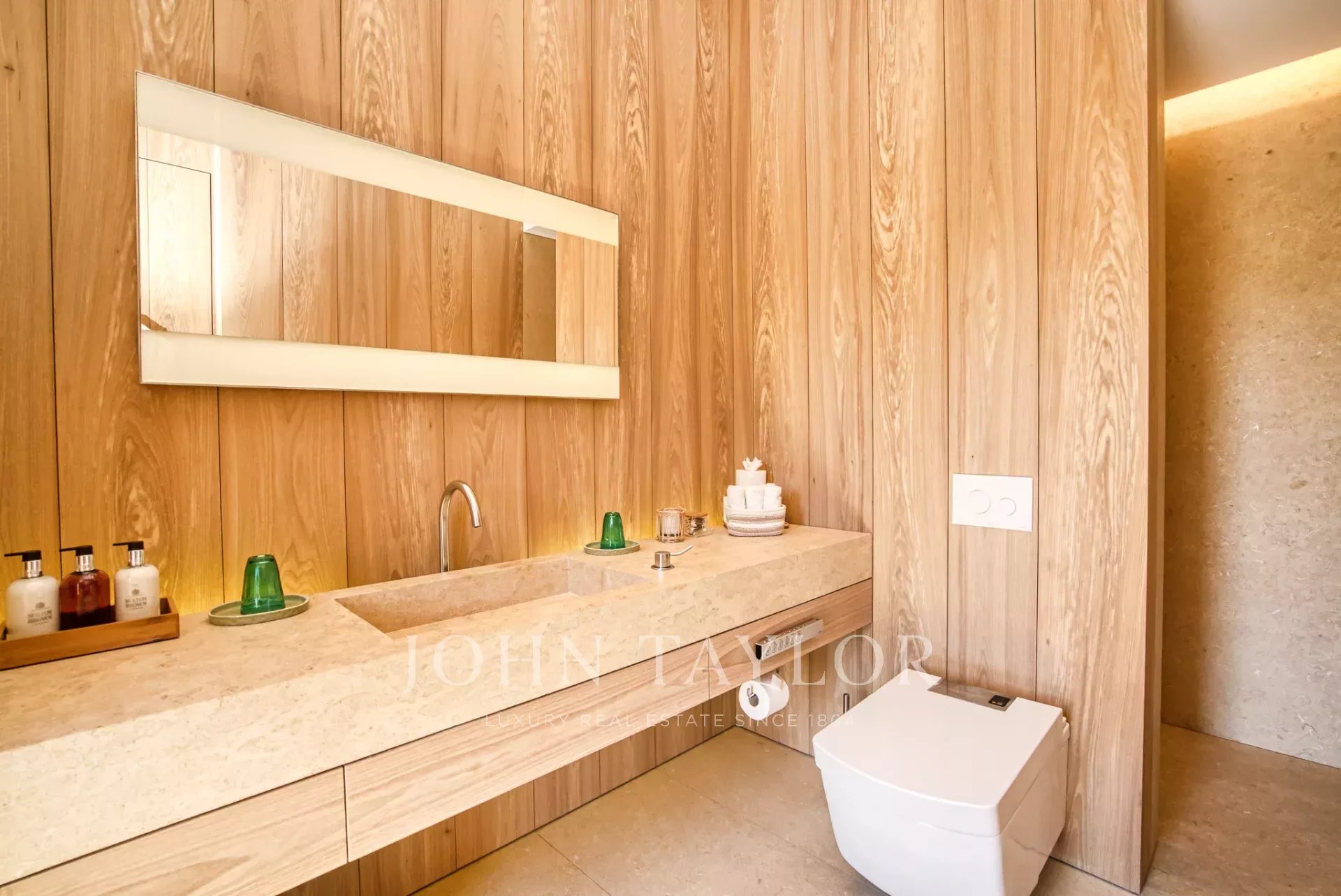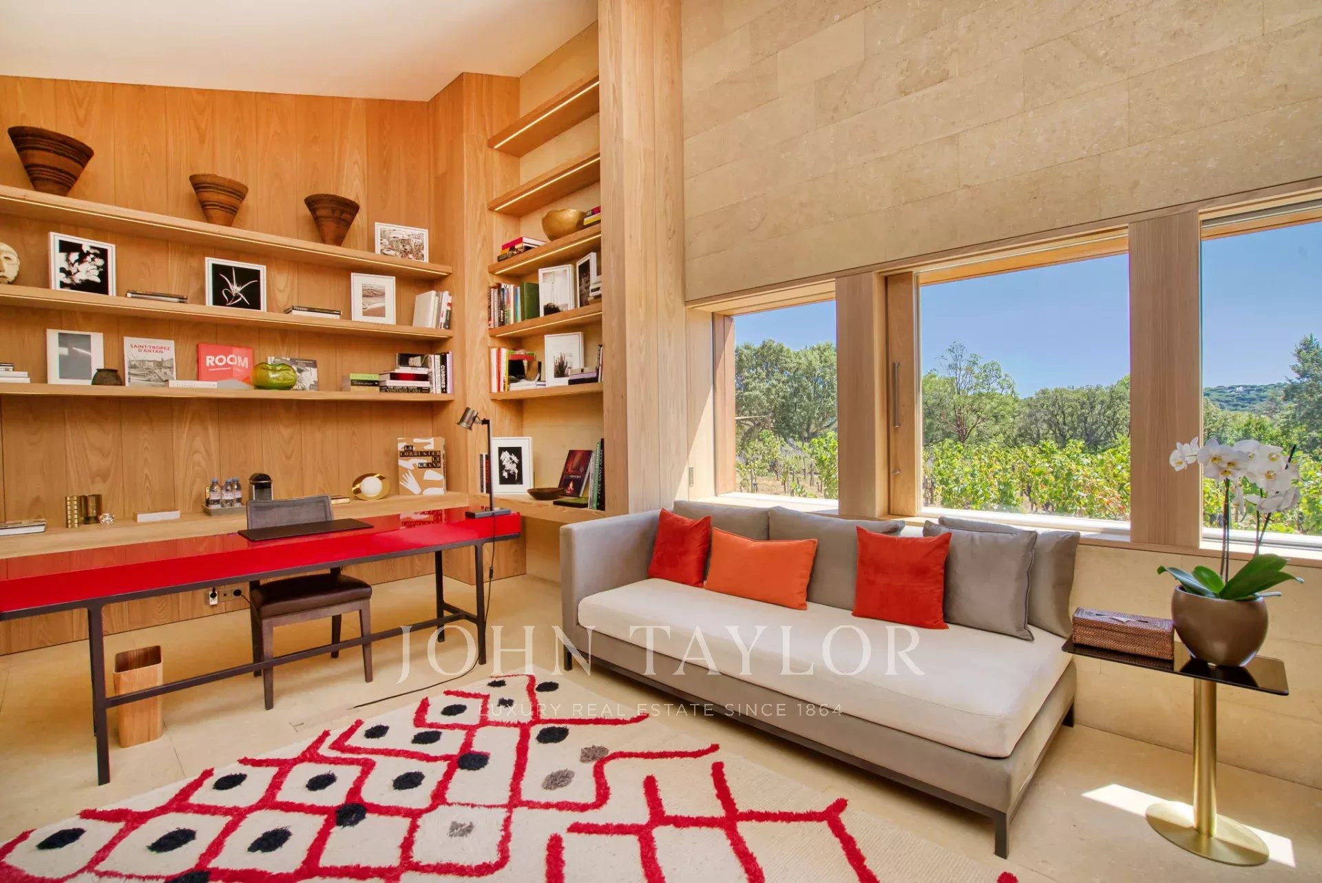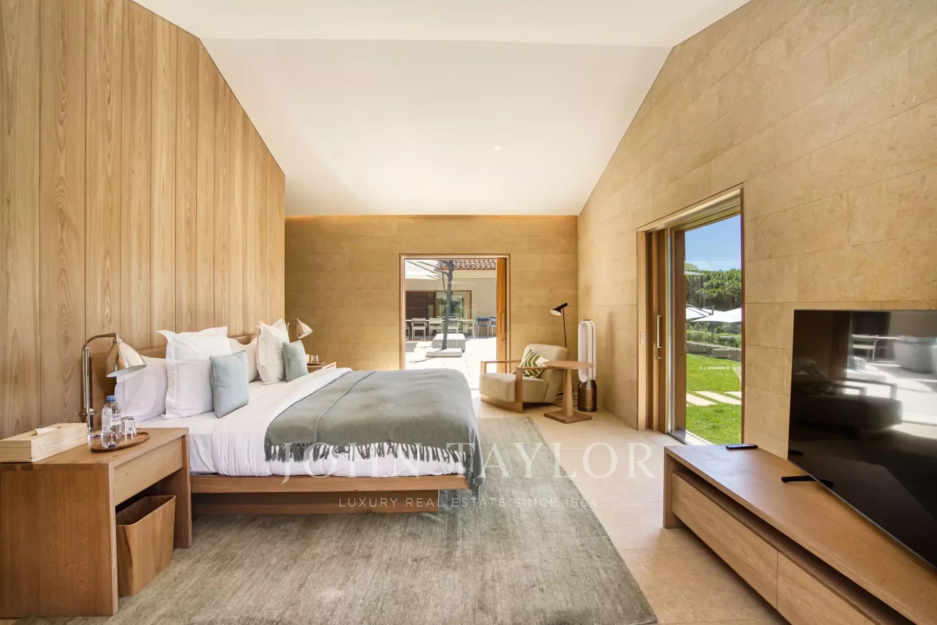 Эксклюзивное поместье, расположенное в парке Сен-Тропе, которое можно арендовать целиком (8 спален), спроектированное британским архитектором Джоном Поусоном и состоящее из следующих помещений: