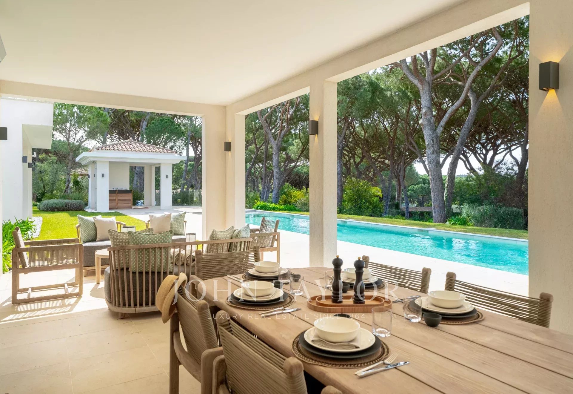 Превосходный новый дом, расположенный в тихом переулке в Парке Сен-Тропе, предлагает идиллическую семейную жизнь, состоящую из :