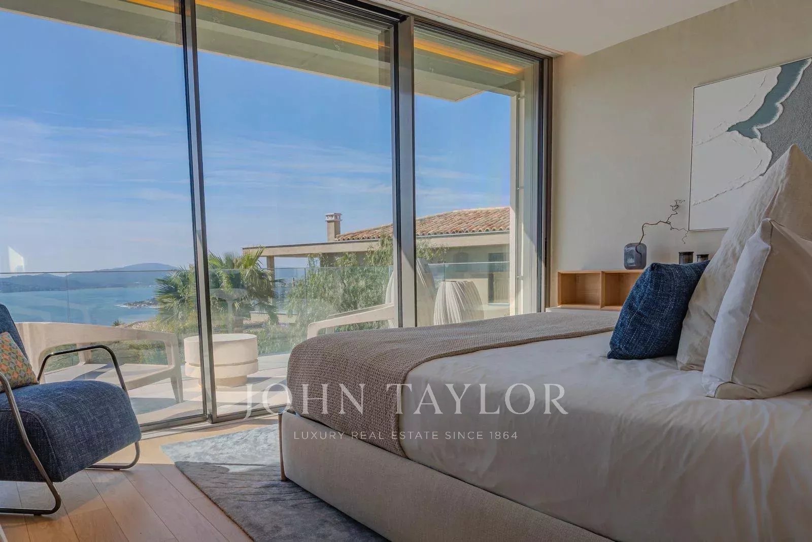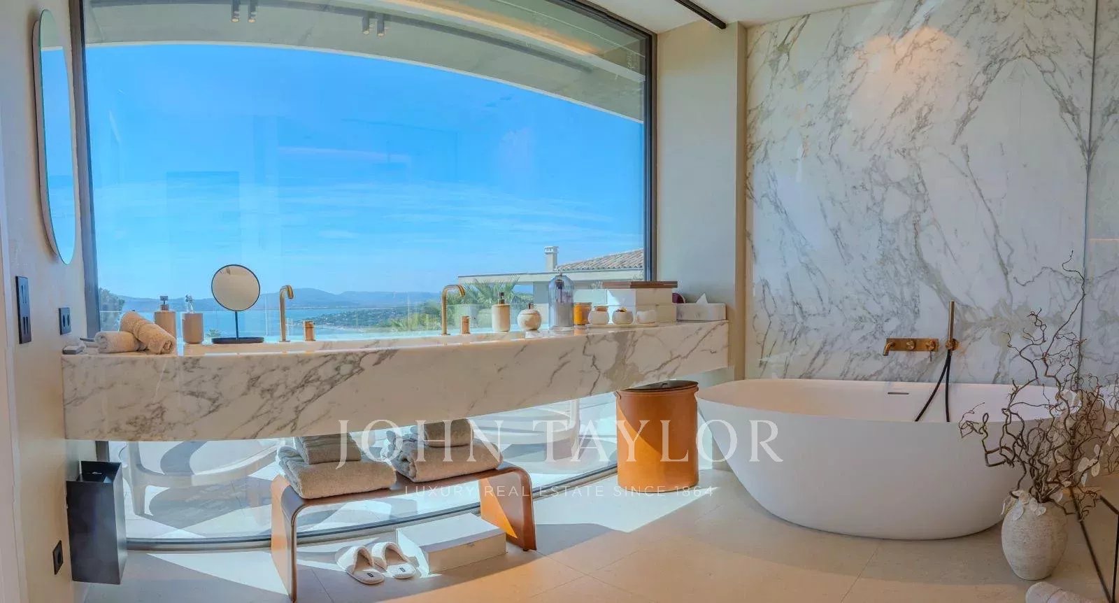 Расположенная на возвышенности Сент-Максим в жилом районе недалеко от центра города, эта вилла в калифорнийском стиле была полностью перепроектирована архитектором и может похвастаться потрясающим видом на залив Сен-Тропе. Она включает в себя