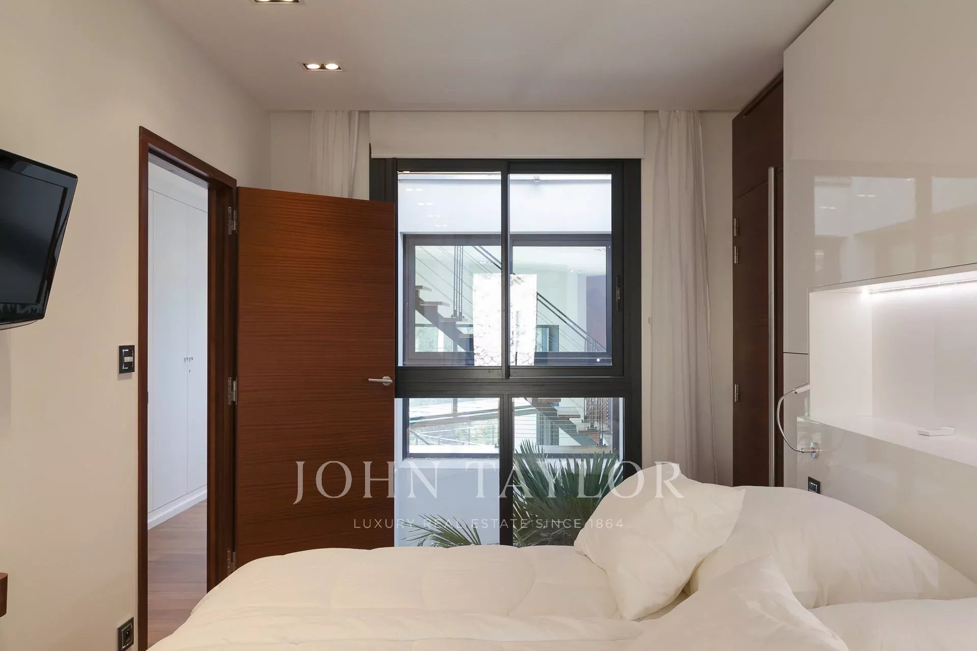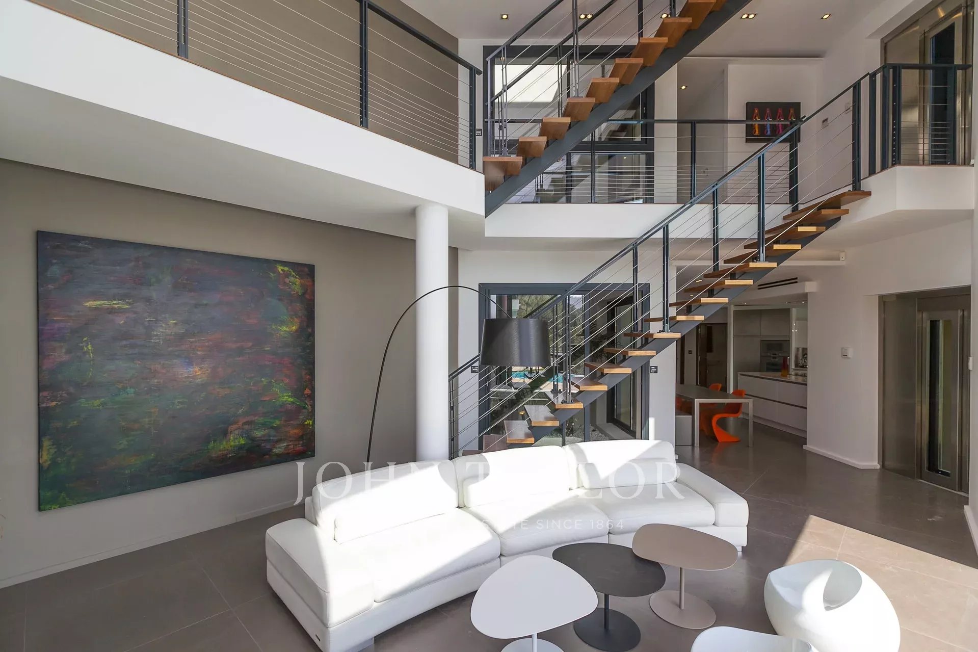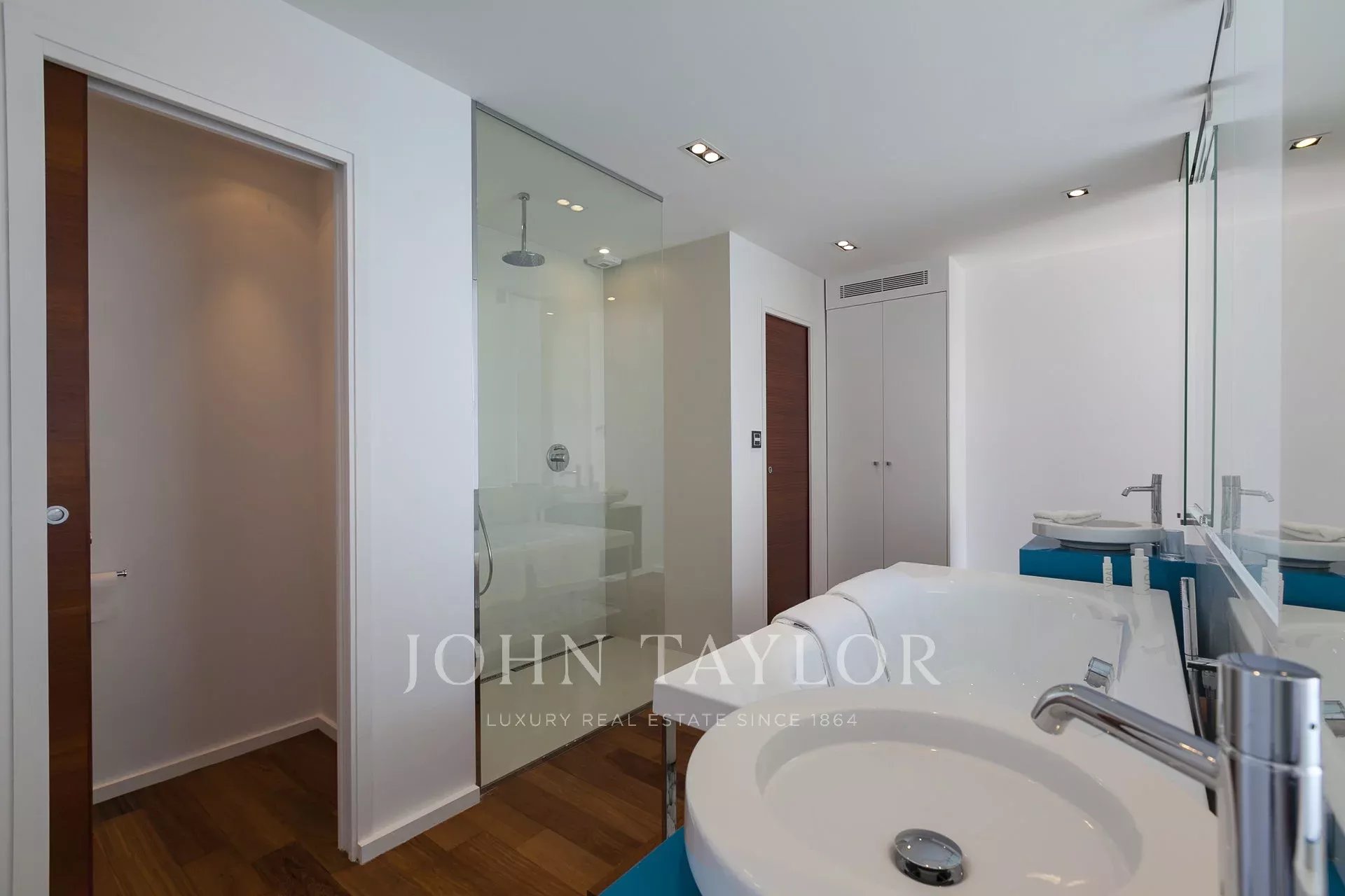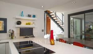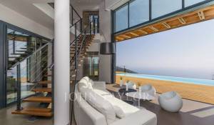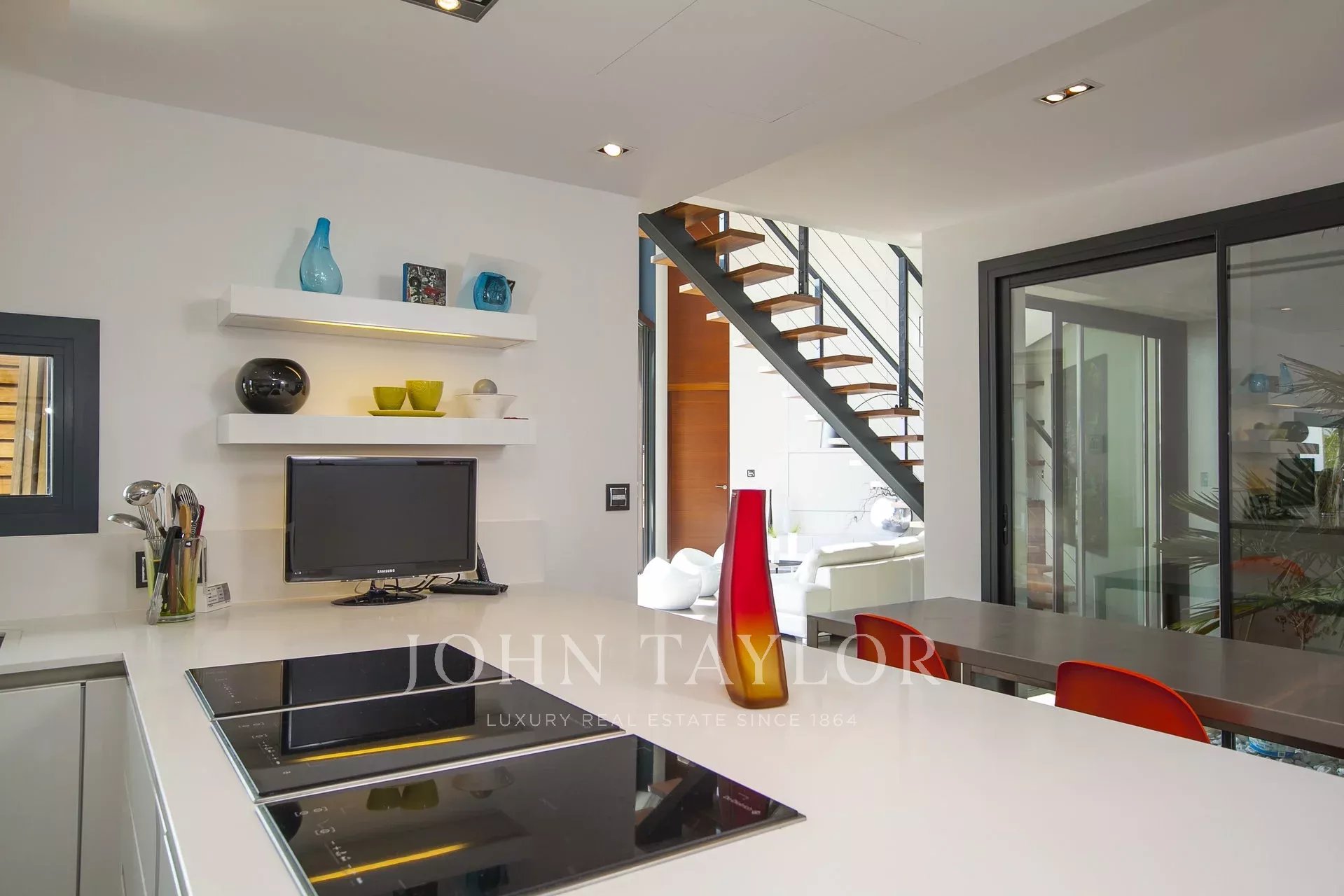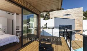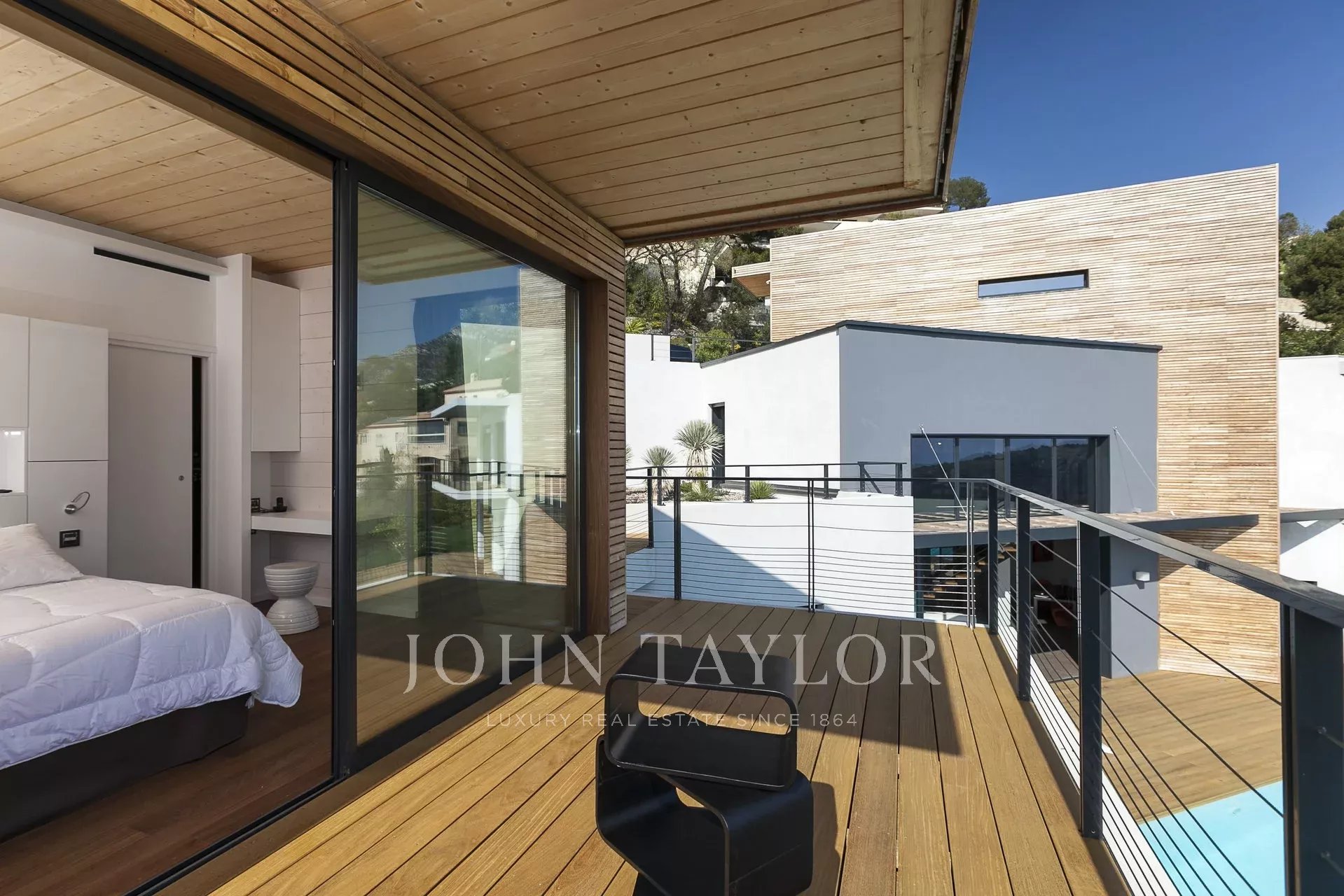 Великолепная вилла в современном стиле, площадью 350 кв м жилой площади на участке площадью около 2 200 м2, расположена на холмах Эз в жилом районе, с прекрасным видом на море и холмы. Вилла состоит из 5 спален (каждая со своей ванной комнатой или душем, гостиная с выходом на просторную террасу и бассейном с подогревом, столовая, полностью оборудованная кухня с полу-профессиональной кладовой. Павильон для гостей с одной спальней, ванной и душ.