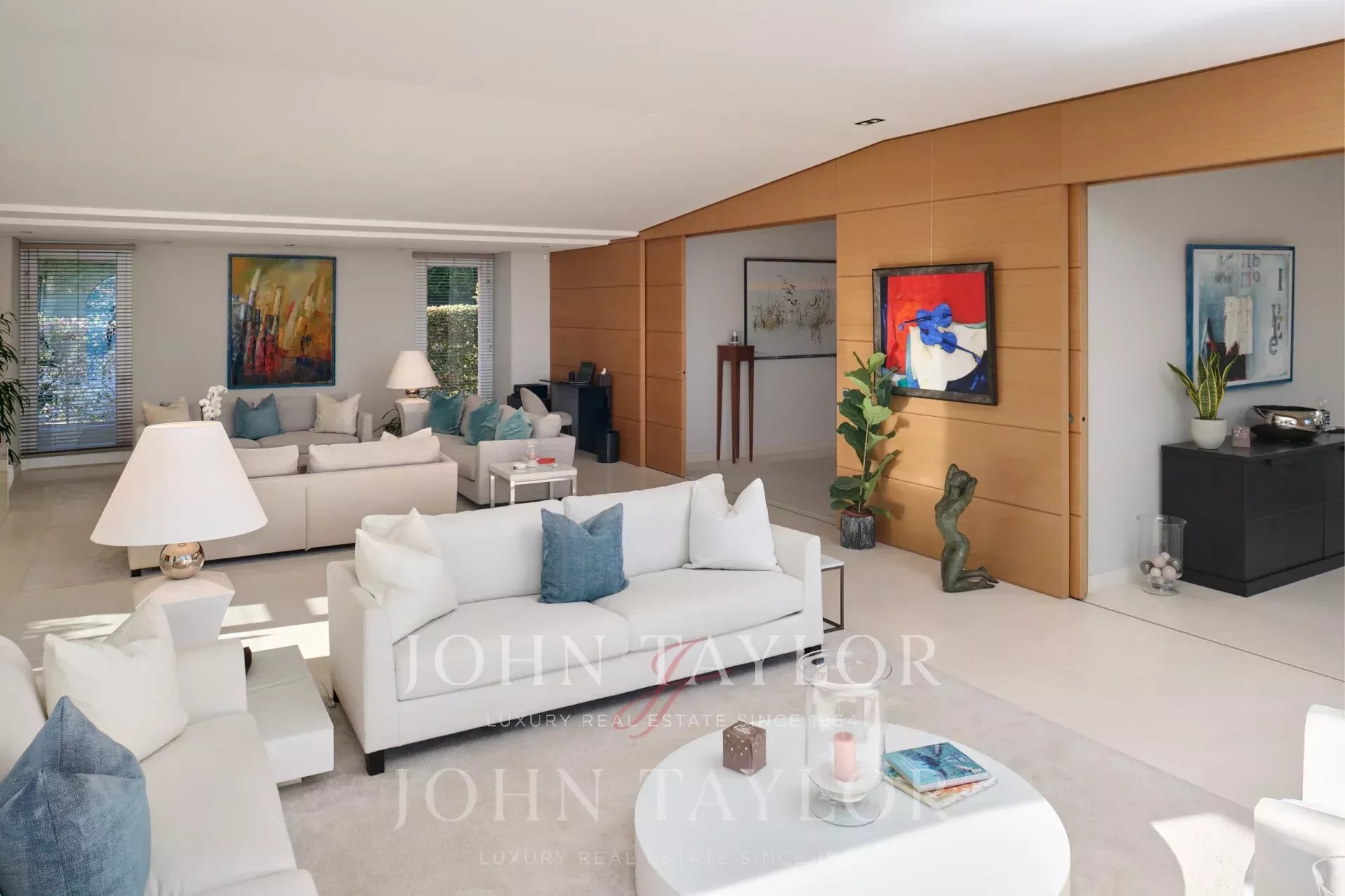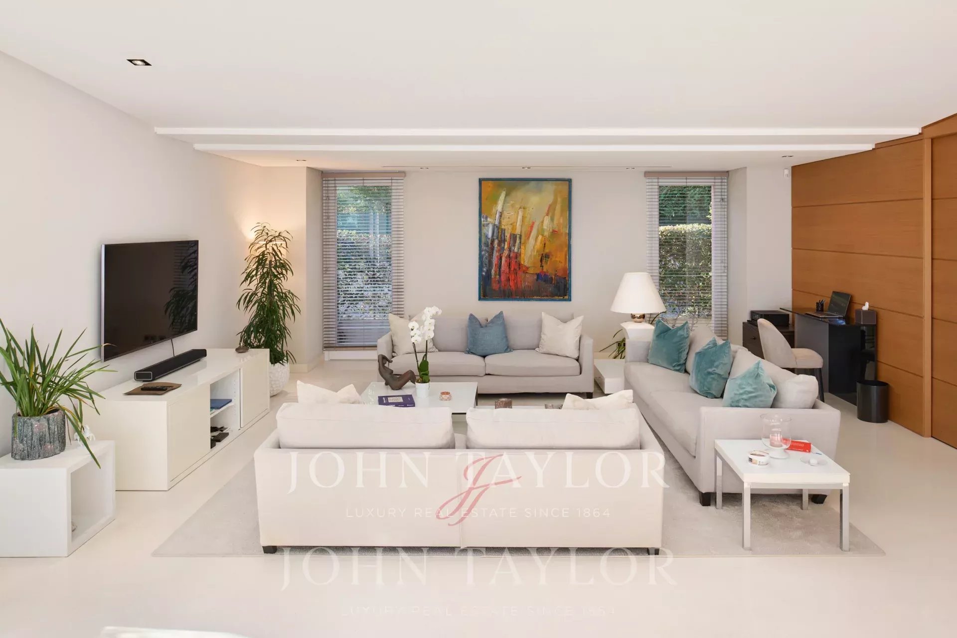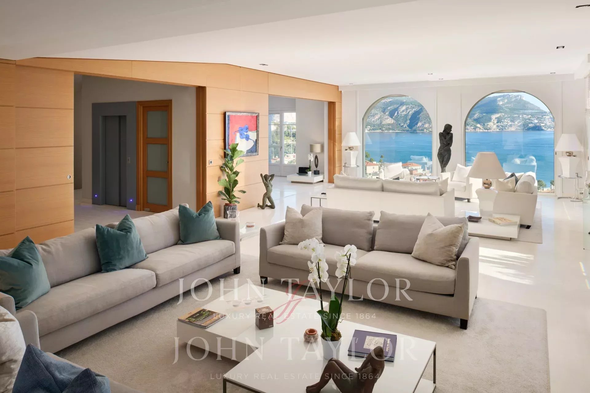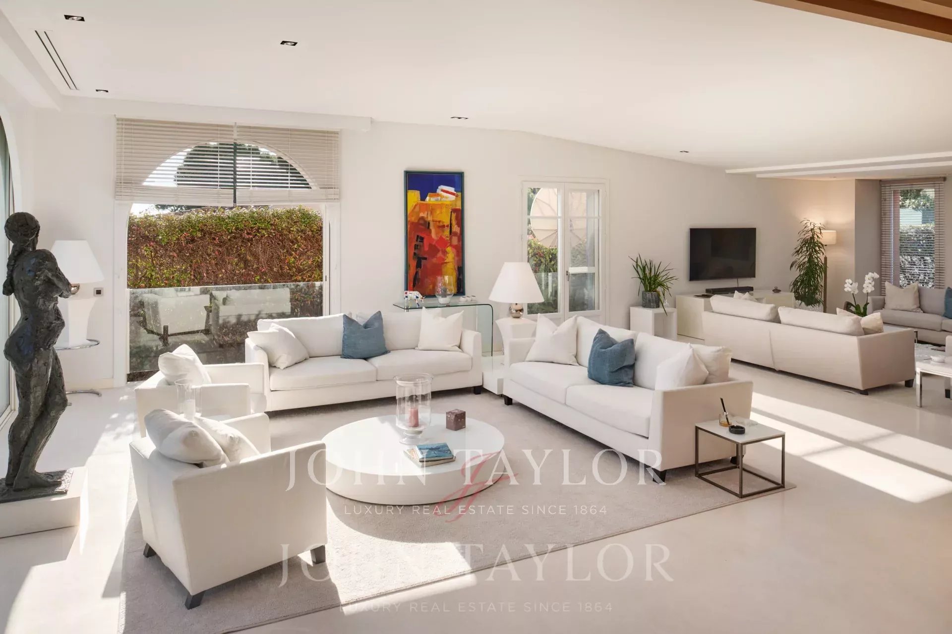 Очень светлая двойная гостиная с видом на порт Сен-Жан-Кап-Ферра с телевизионной зоной.