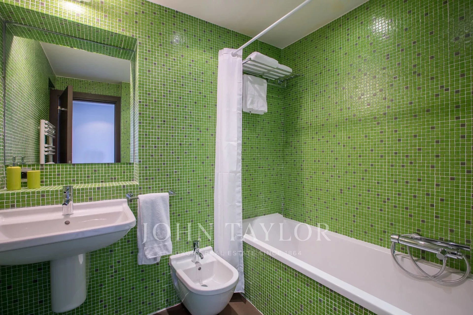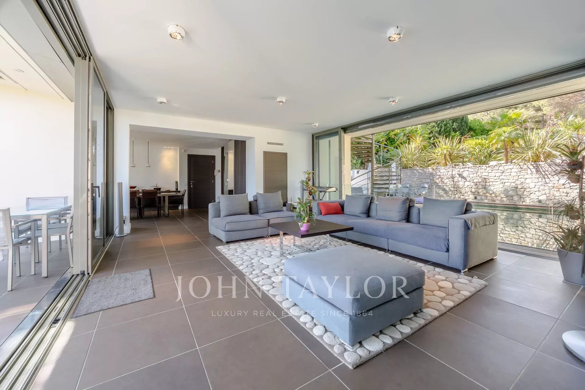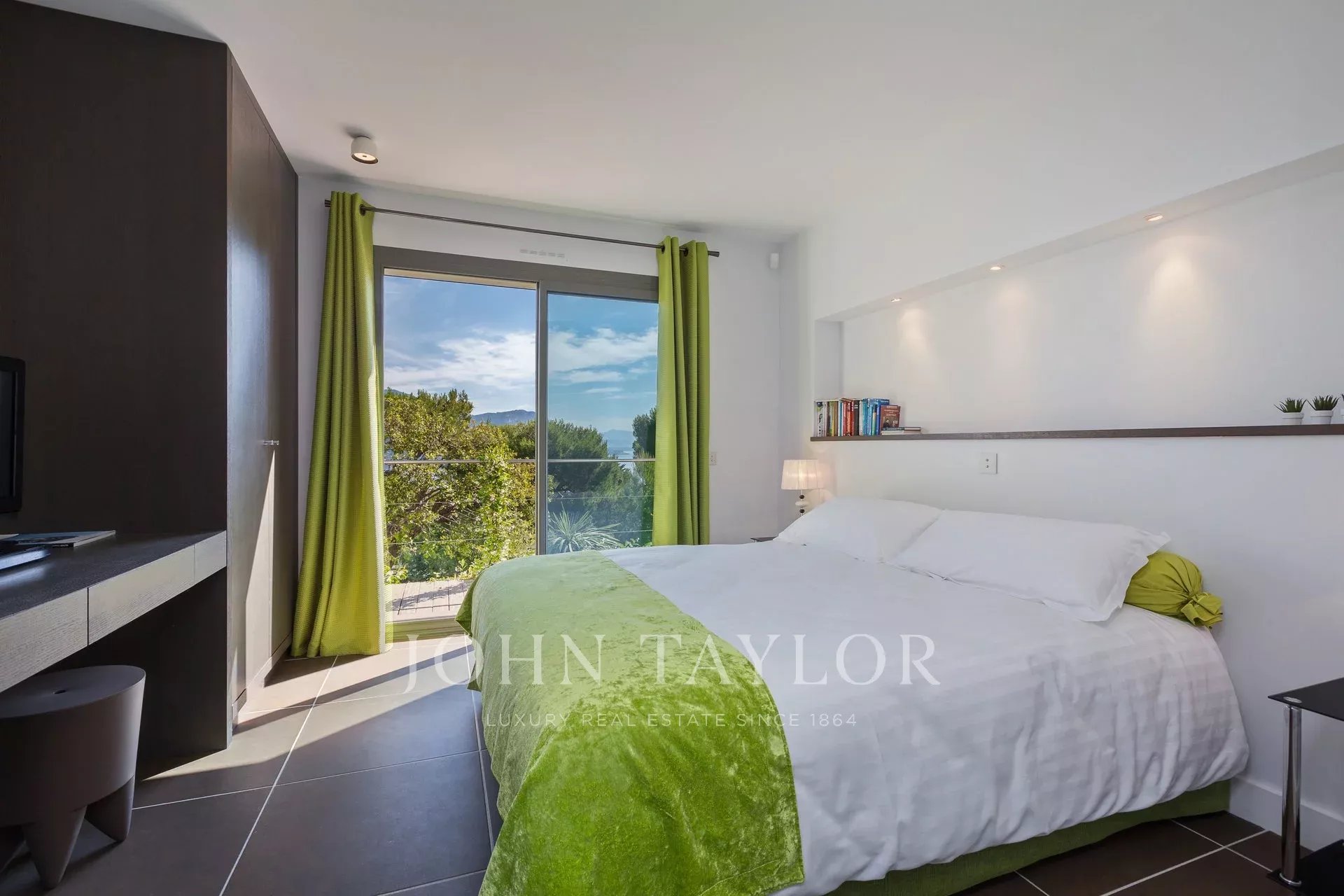 гостиной, столовой, полностью оборудованной кухни, пяти спален и пяти ванных комнат. Вилла полностью оснащена кондиционером. Бассейн с подогревом, сигнализация, парковка на 5-6 автомобилей.