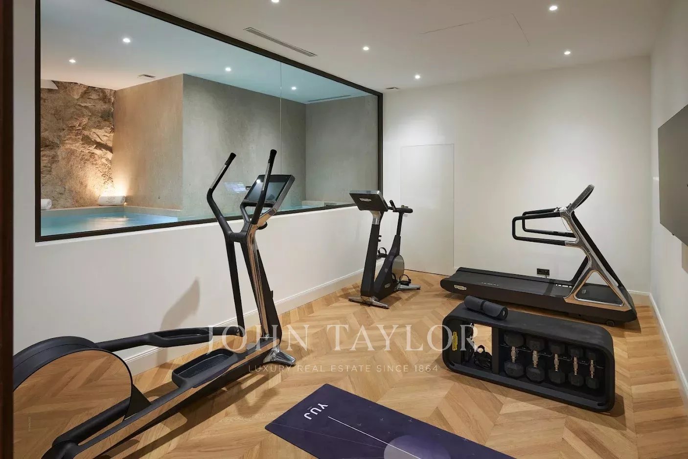 Спа-салон с крытым бассейном из натурального камня, сауна, тренажерный зал, полностью оснащенный новейшим оборудованием (Technogym), оборудованный кинотеатр, открытый бассейн с подогревом, бильярдная и кухня на открытом воздухе дополняют этот исключительный особняк.
