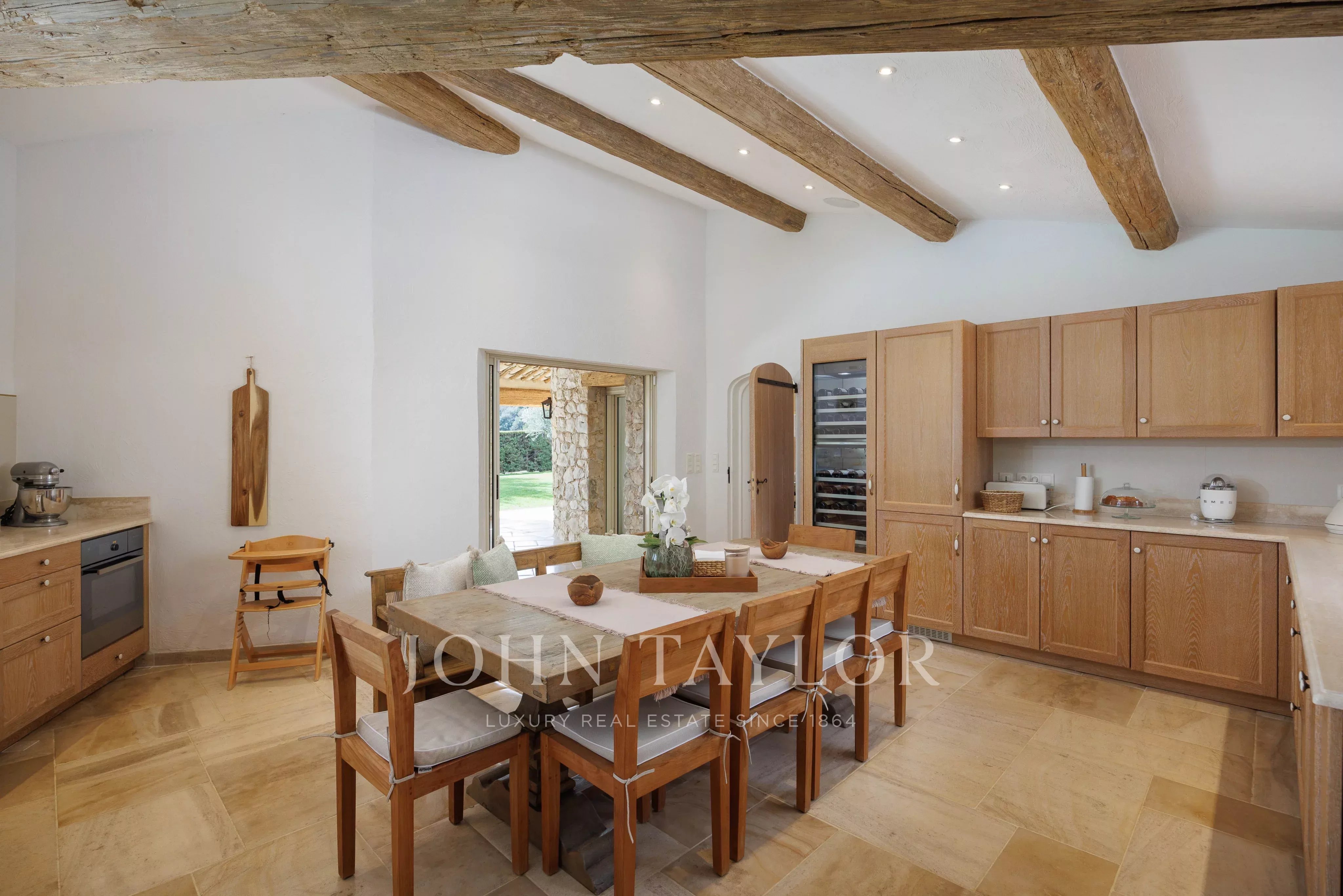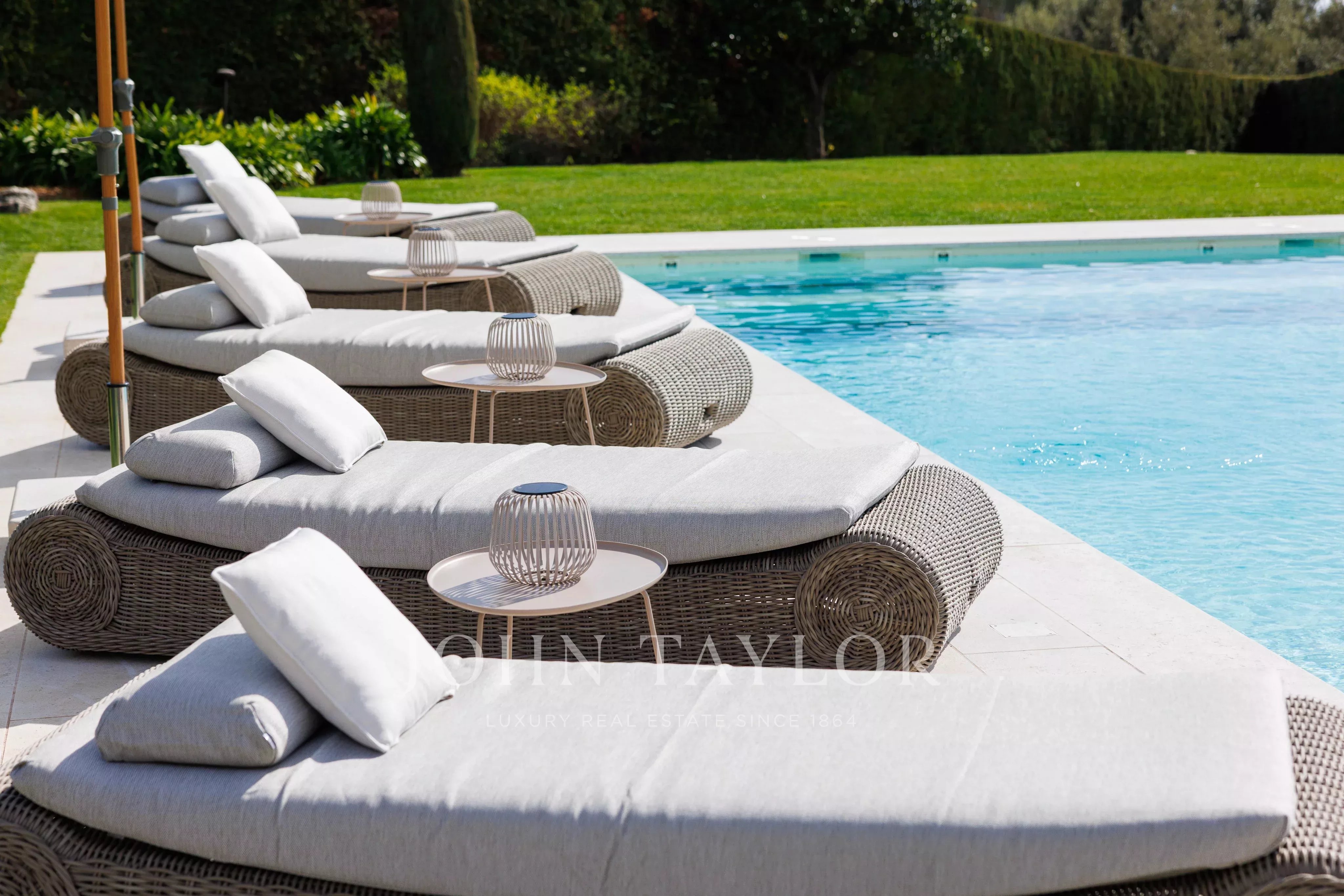 Снаружи, в великолепном ландшафтном саду, находится бассейн с подогреваемой соленой водой и летняя кухня с угольным и газовым барбекю, приглашающая вас провести долгие минуты в кругу друзей.