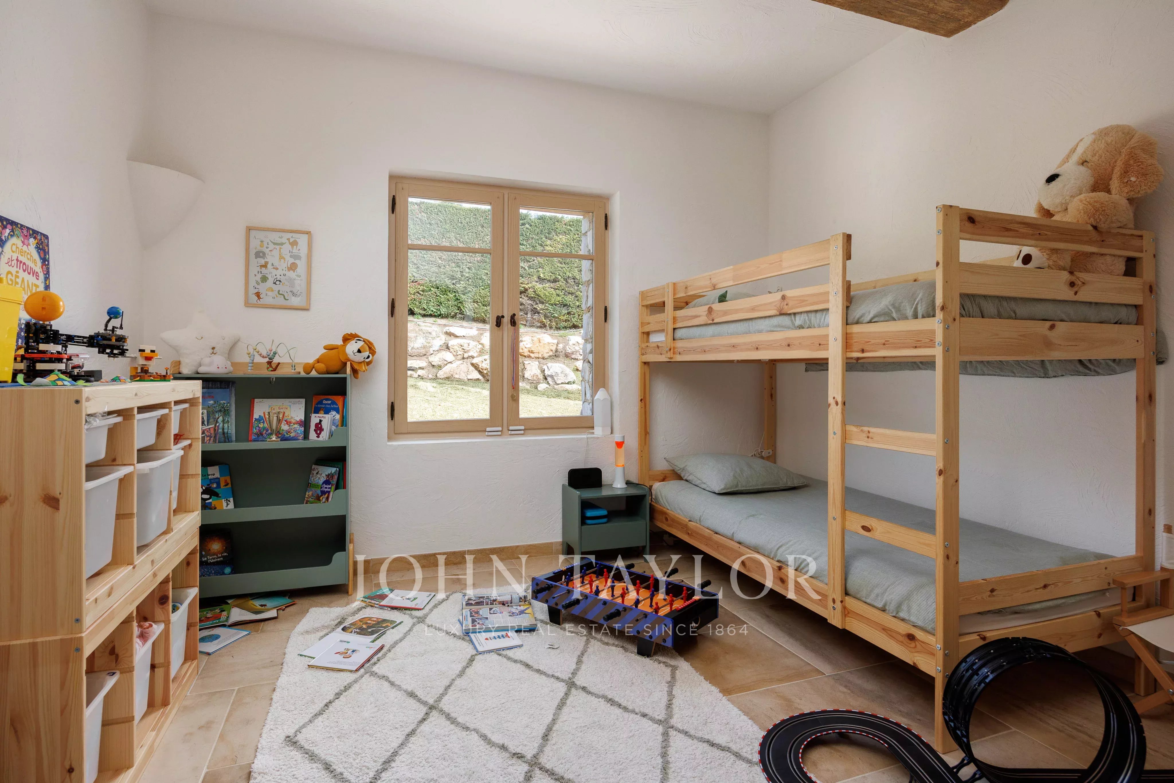 Главная спальня, расположенная в левом крыле на том же уровне, предлагает уединение благодаря гардеробной, полной ванной комнате и прямому выходу в сад. Детская спальня, которую также можно использовать в качестве кабинета, и полностью оборудованная кухня, выходящая на террасу, завершают этот уровень.