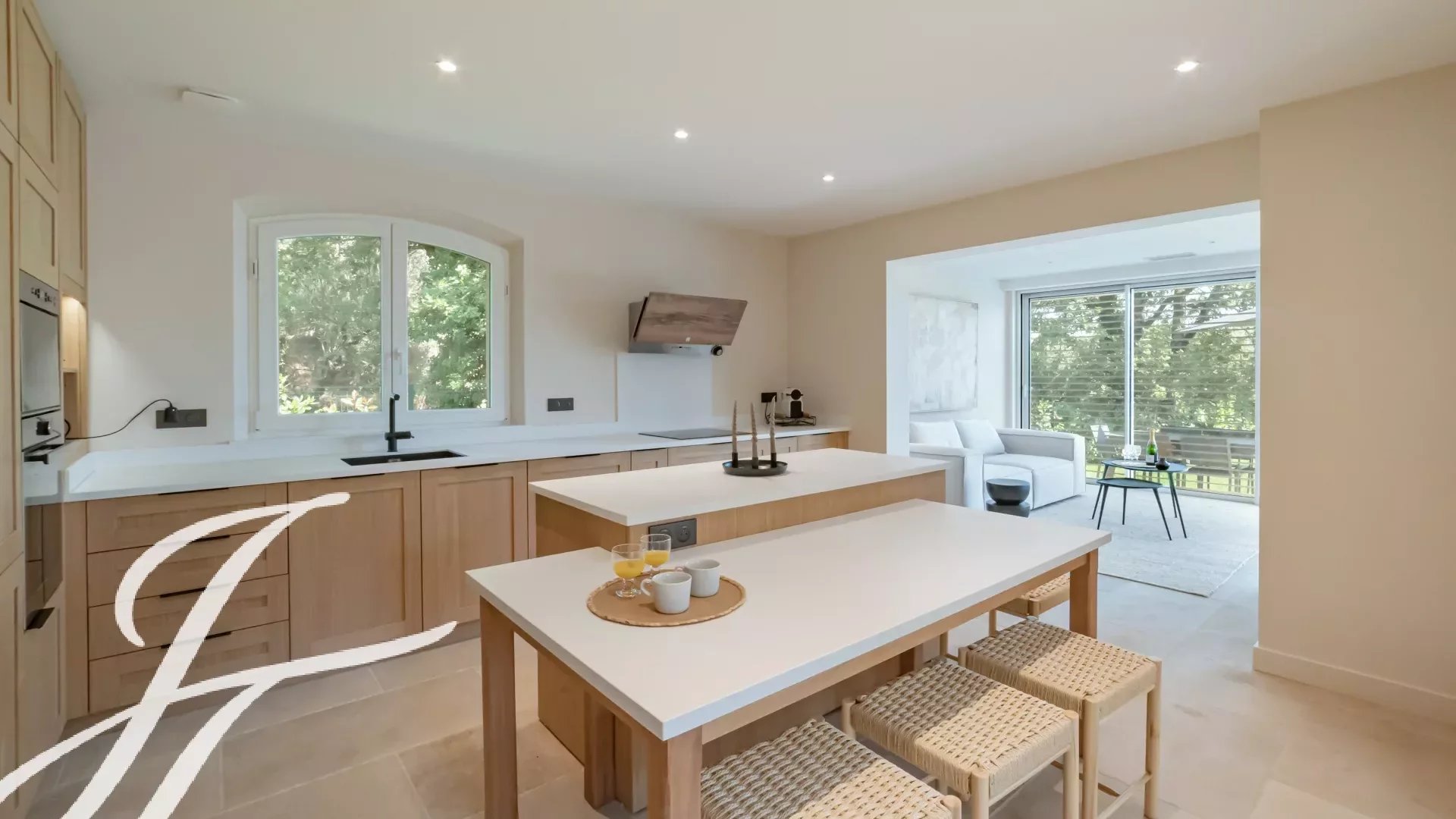 Душа этого дома заключается в выборе благородных, неподвластных времени материалов: бургундский камень, массивный паркетный пол и выбеленные известняком стены. Каждая деталь продумана до мелочей, чтобы создать гармоничную среду обитания, где комфорт и эстетика сочетаются в элегантности.