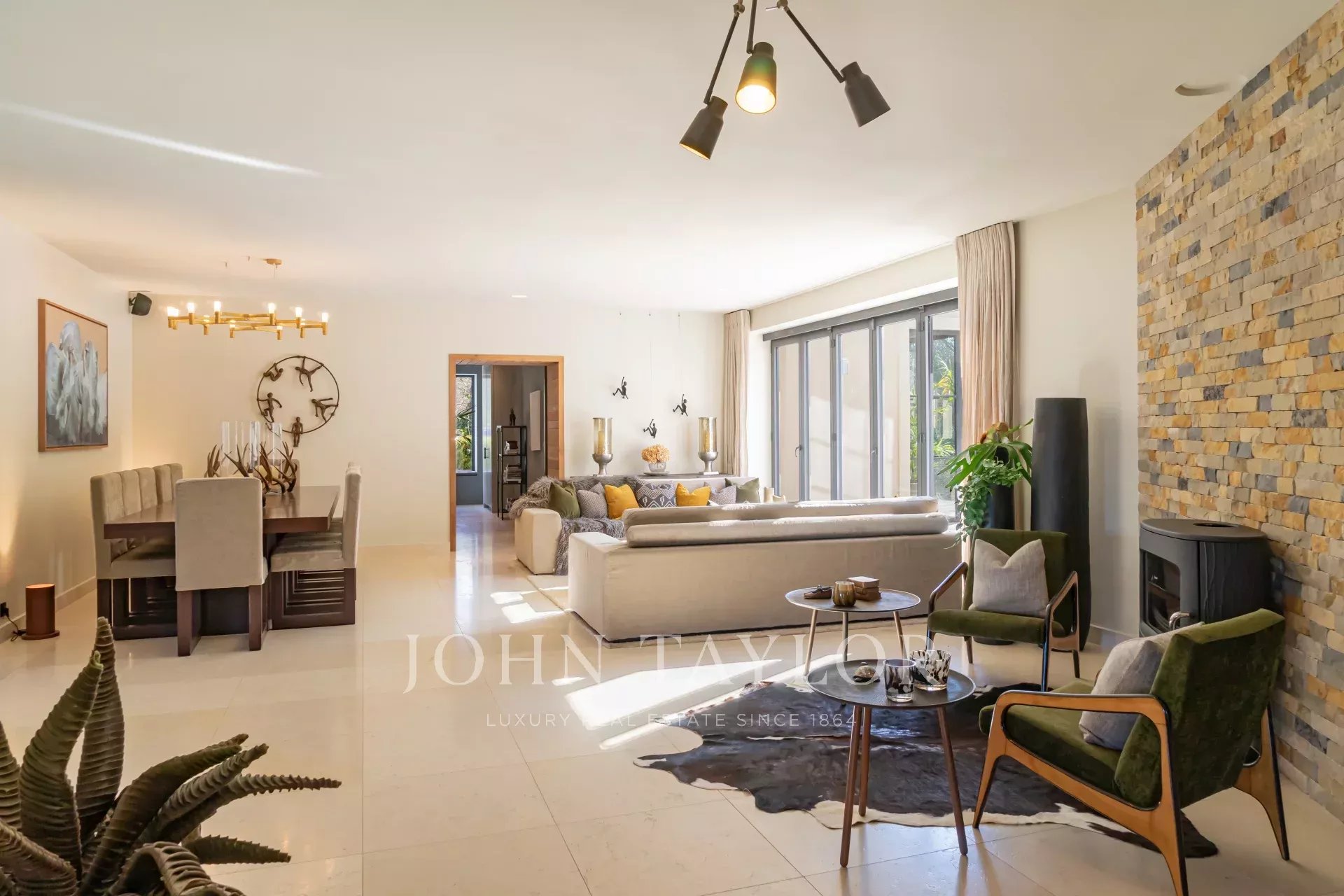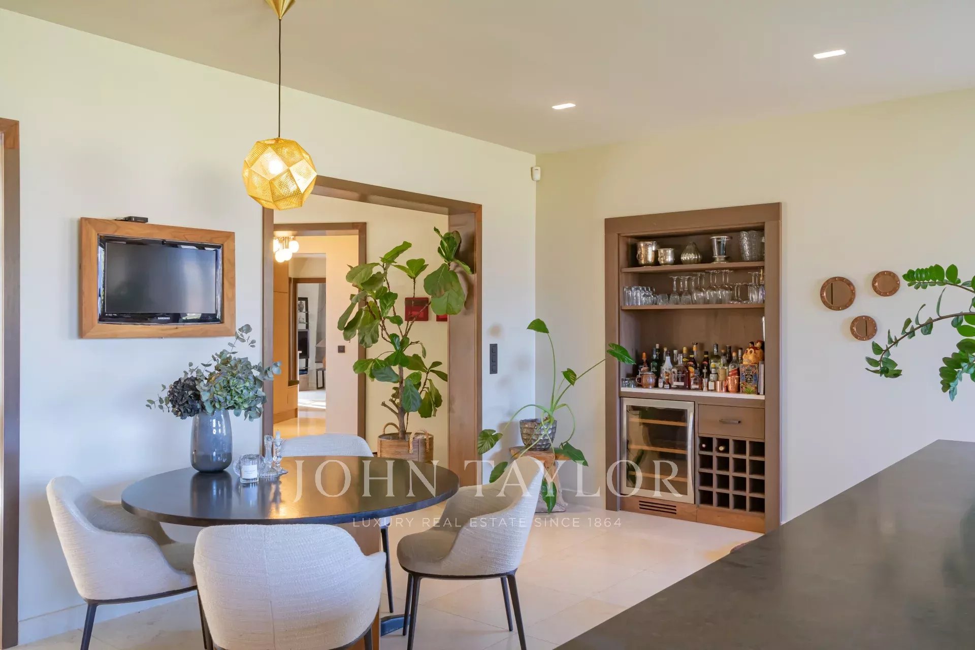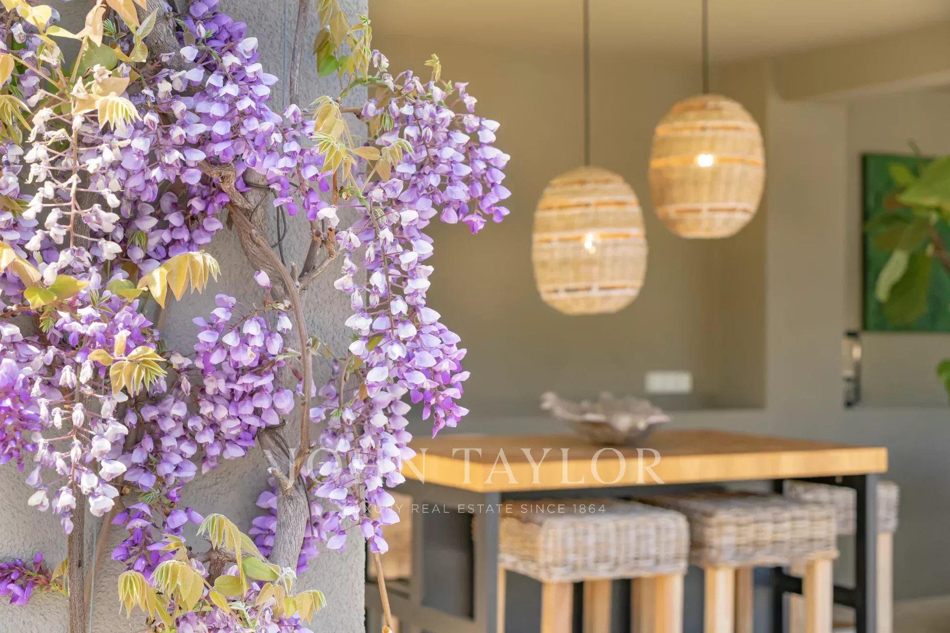 Вилла отремонтирована с использованием качественных материалов и с изысканным вкусом. Здесь есть современная, полностью оборудованная кухня с обеденной зоной, выходящая в сад и на открытое пространство, просторная гостиная/столовая, домашний кинотеатр и отдельная спальня/студия на первом этаже, идеально подходящая для приема друзей или сотрудников.