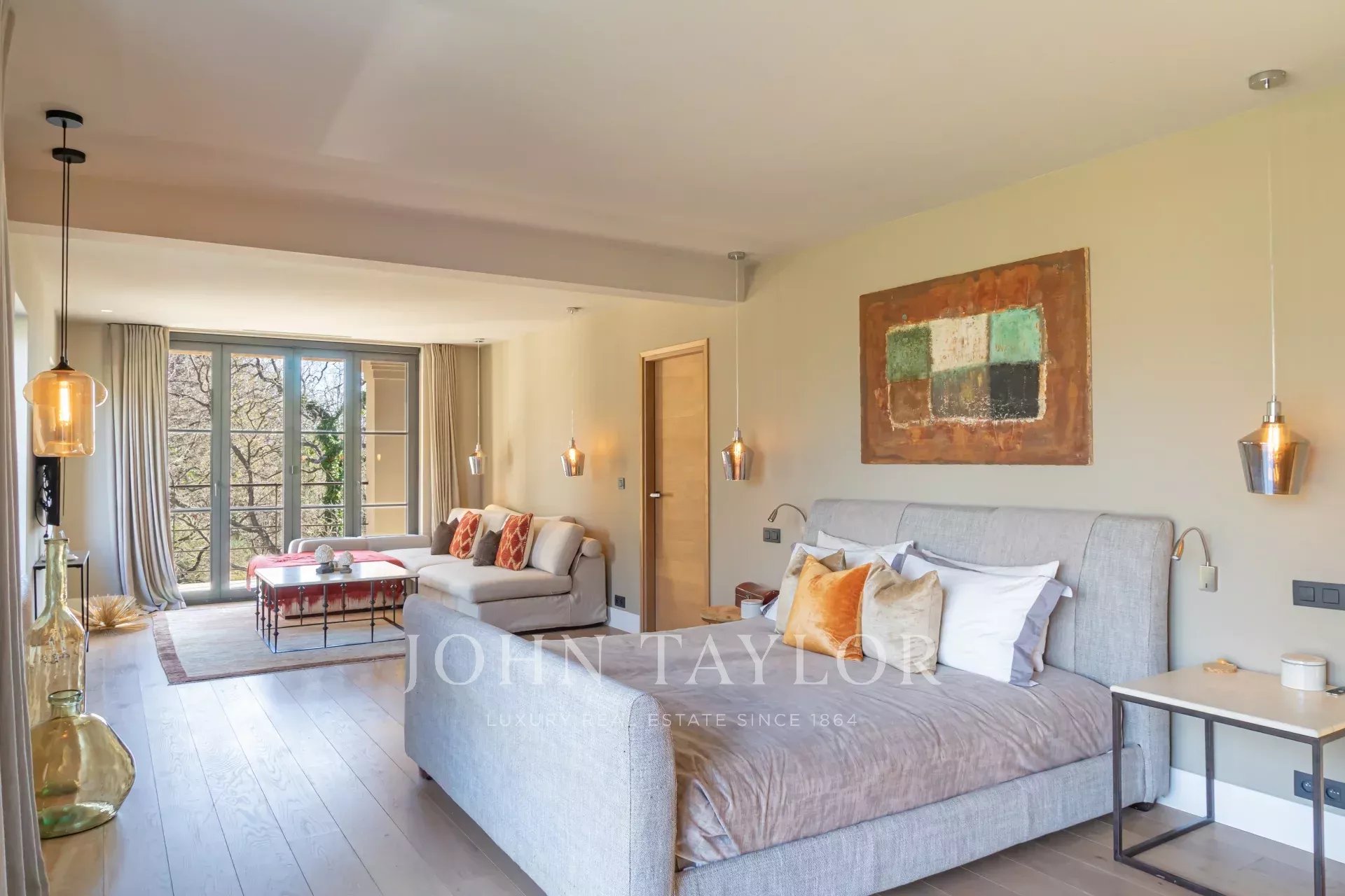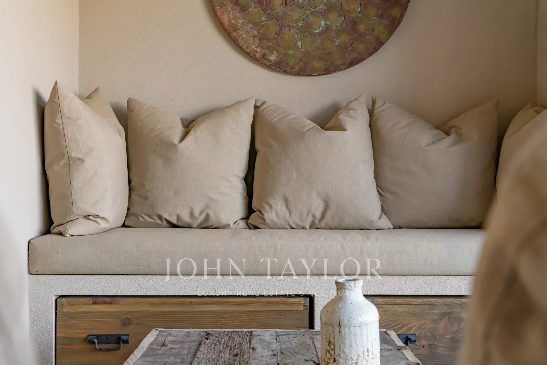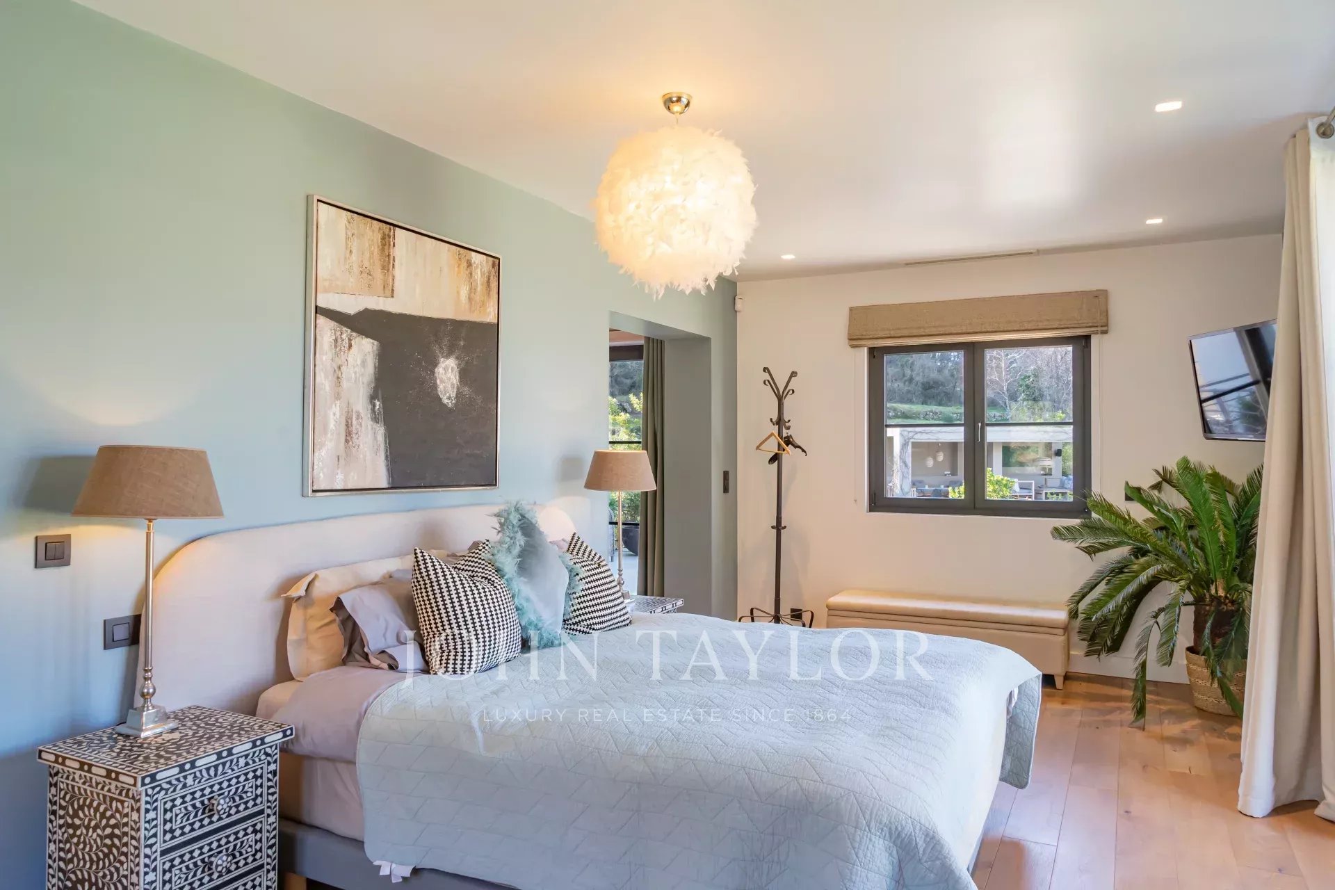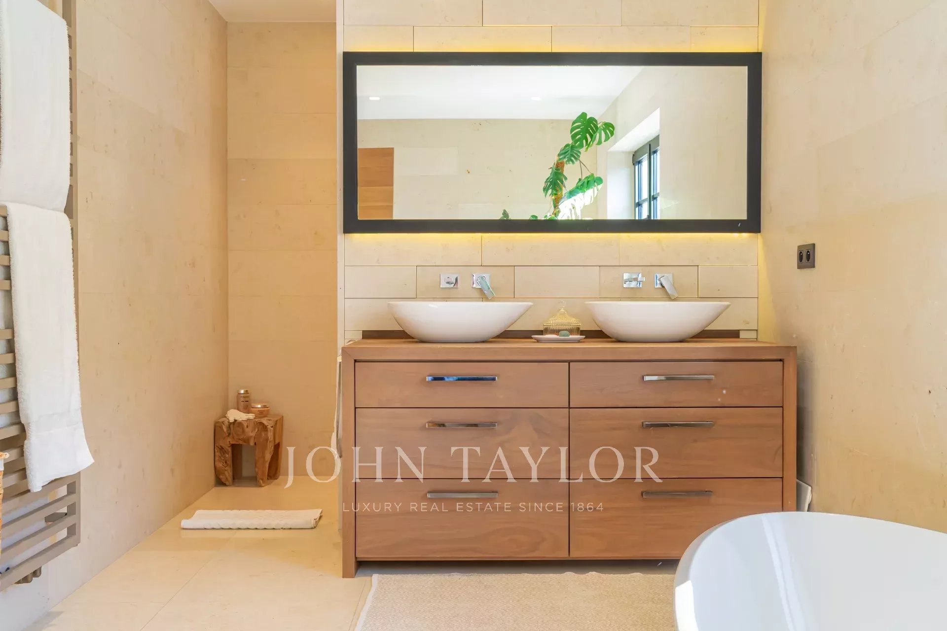 Вилла отремонтирована с использованием качественных материалов и с изысканным вкусом. Здесь есть современная, полностью оборудованная кухня с обеденной зоной, выходящая в сад и на открытое пространство, просторная гостиная/столовая, домашний кинотеатр и отдельная спальня/студия на первом этаже, идеально подходящая для приема друзей или сотрудников.