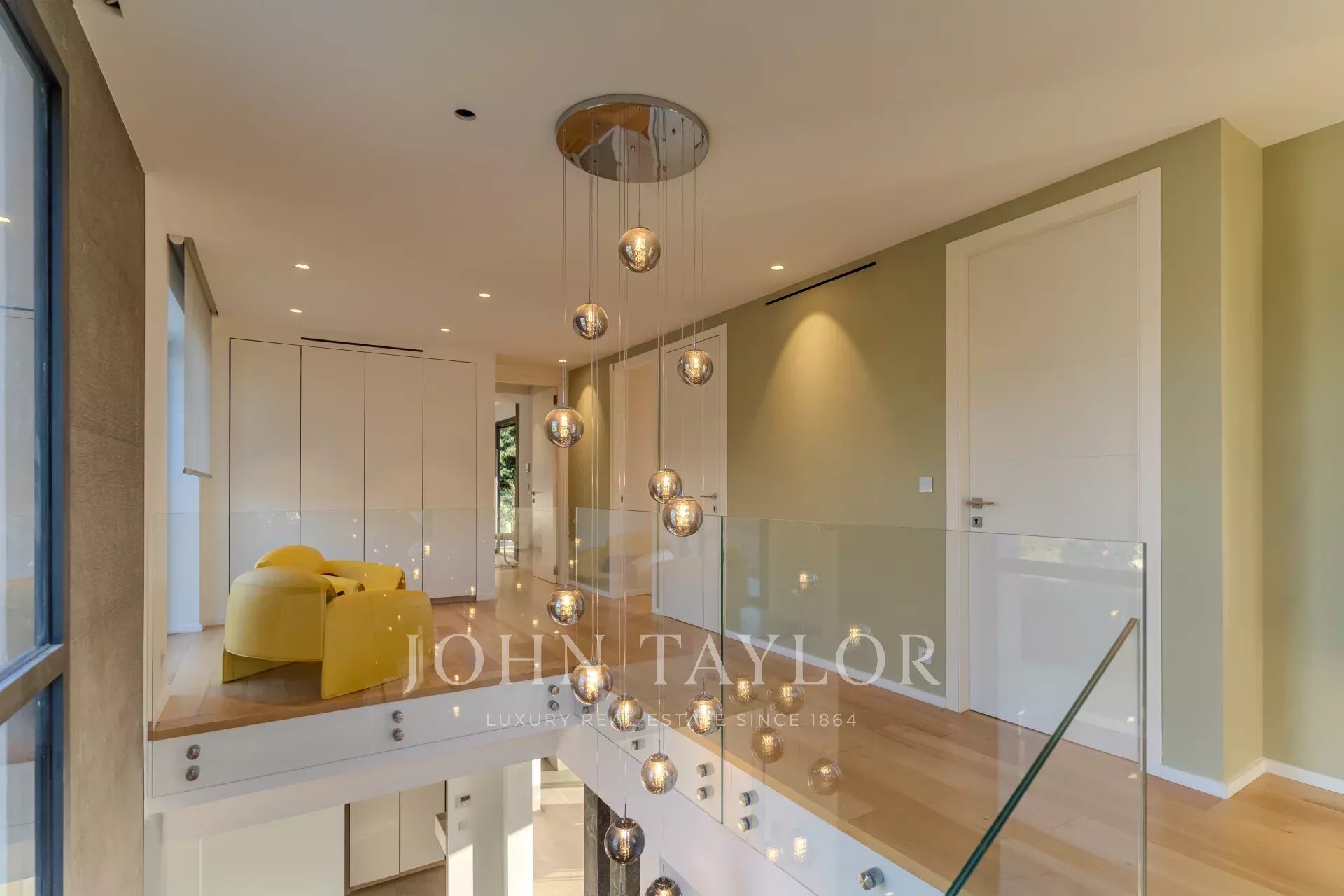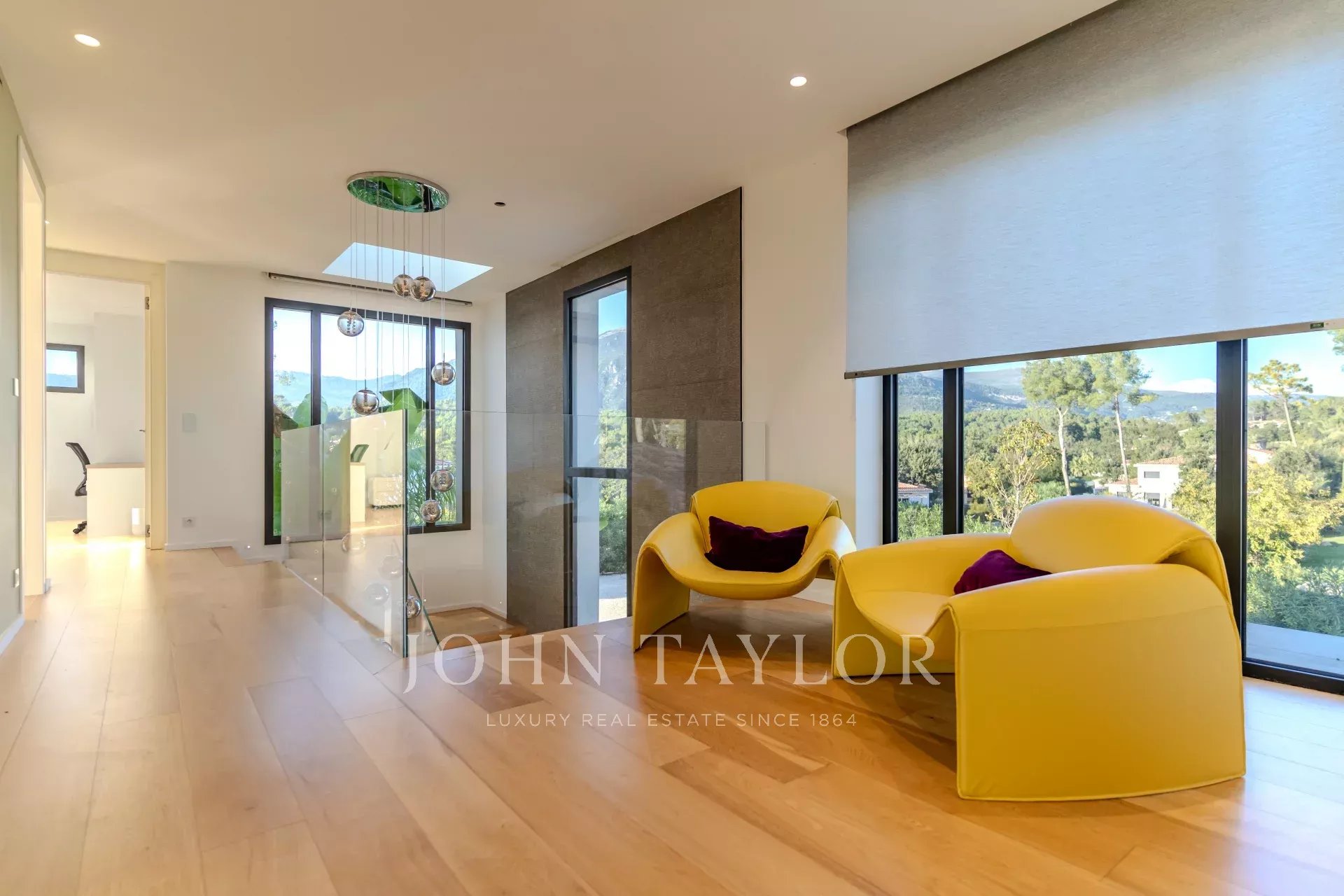 Наверху расположены 4 светлые и элегантные спальни, каждая с собственной душевой комнатой и выходом на две большие террасы с великолепными видами.