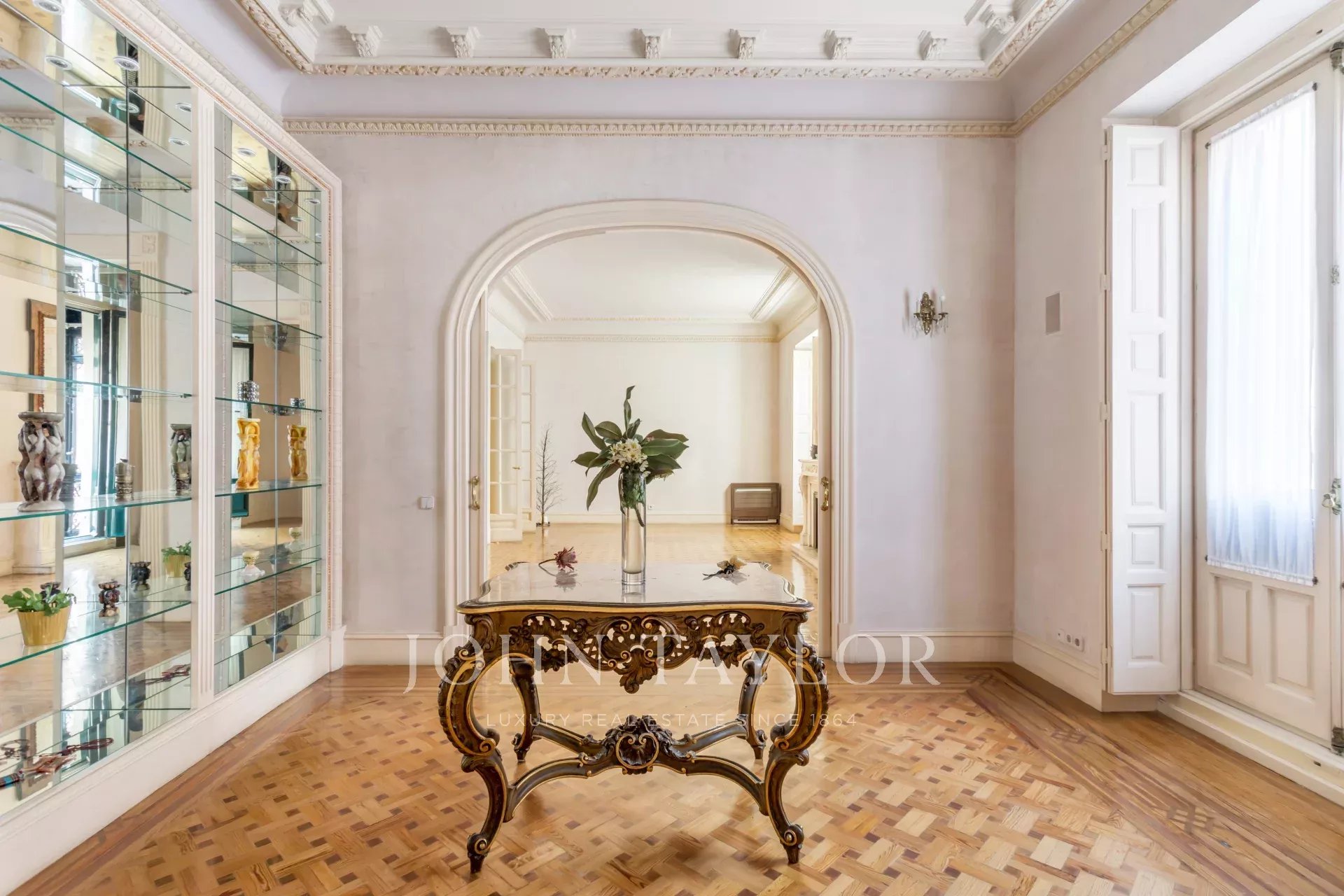На одной из самых символичных и неприметных улиц в центре Мадрида, Сан-Маркос, находится эта уникальная резиденция площадью 543 м², сочетающая в себе классическое очарование мадридских дворцов с комфортом и простором, которые требуются для самых изысканных стилей жизни.